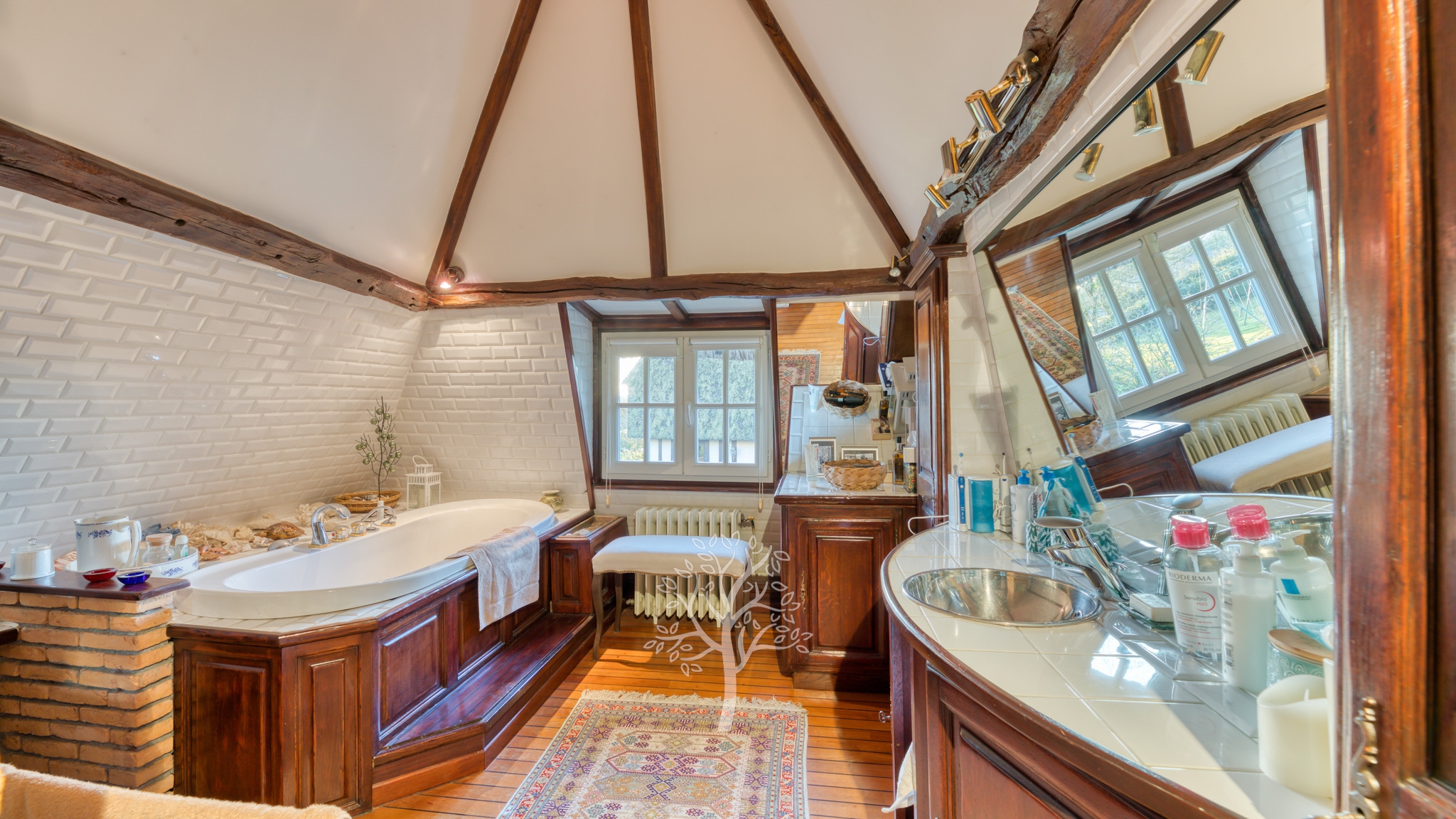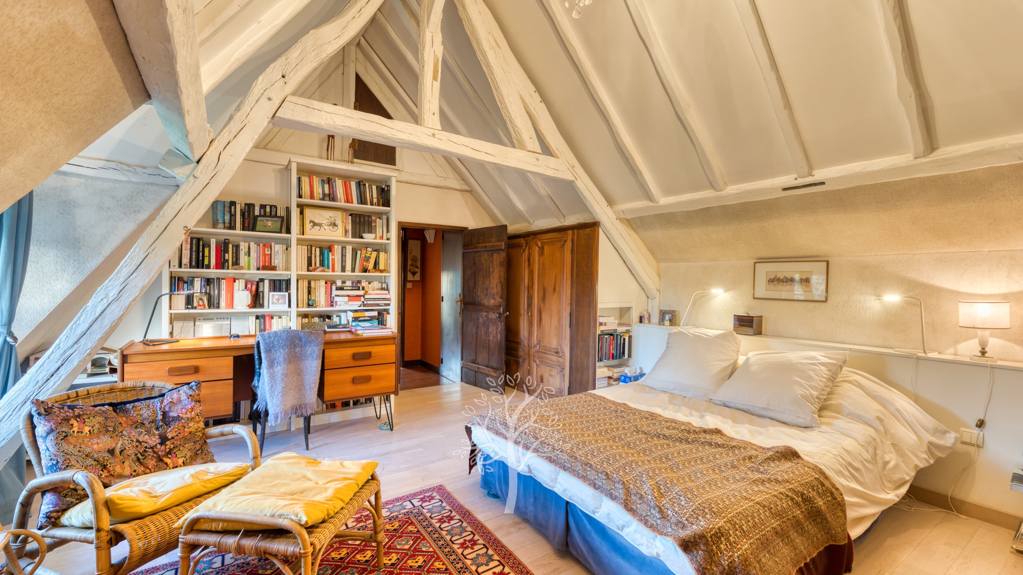 Une grande suite parentale et sa magnifique salle de bains et dressing sont à l’étage ainsi qu’une autre chambre et une salle d’eau.