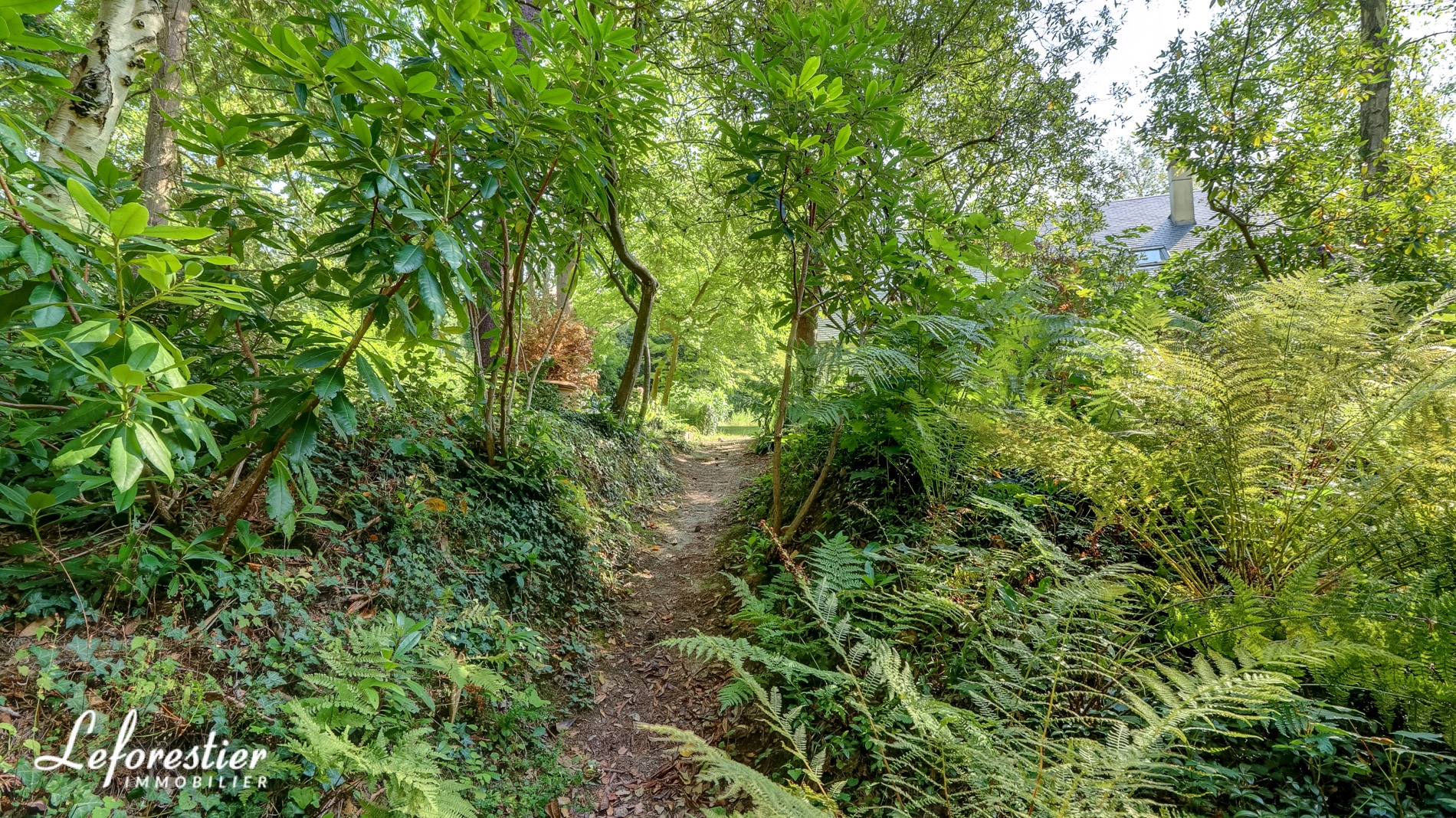 Sur plus de 3500 m2 de terrain, vous trouverez, en contrebas de la maison, une petite mare permettant à la faune de s'abreuver. Un sentier permet de faire le tour de la surface arborée, un espace pelouse a été conservé pour y poser chaises longues ou autre mobilier d'extérieur.