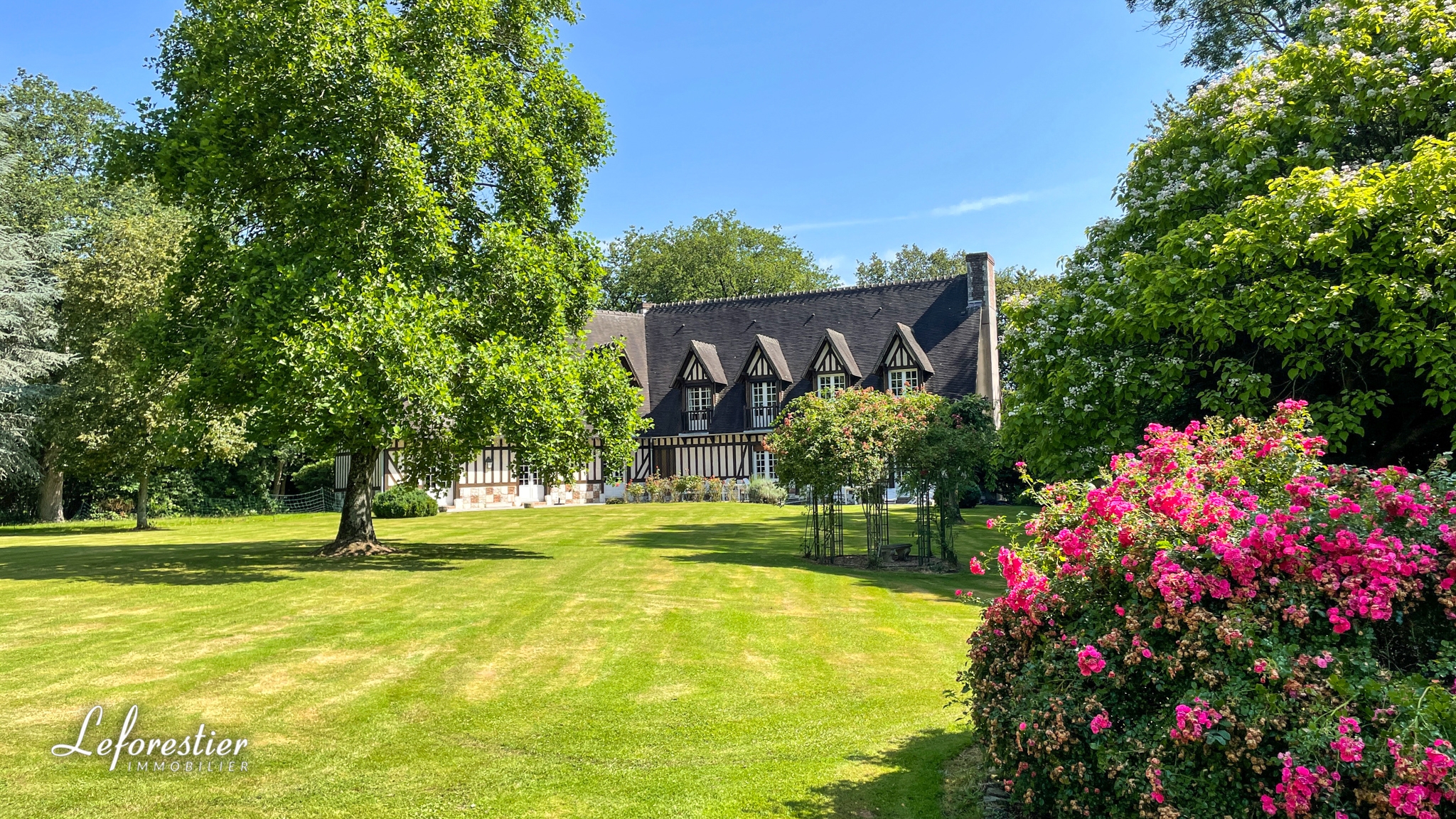 Une maison pour les gardiens-jardiniers, le bûcher et un hangar avec box pour chevaux complètent le caractère fonctionnel de cette belle propriété normande à vendre.