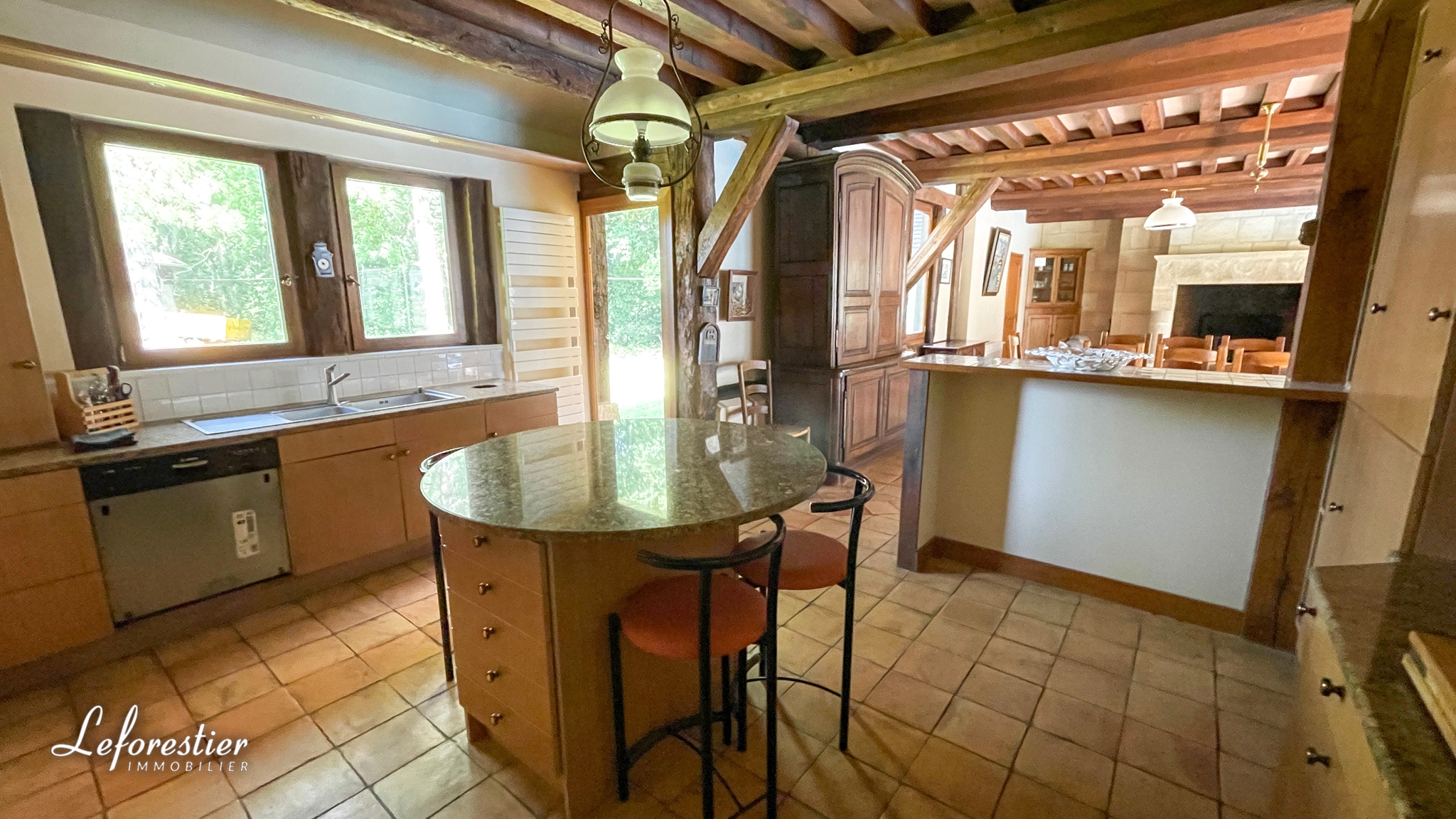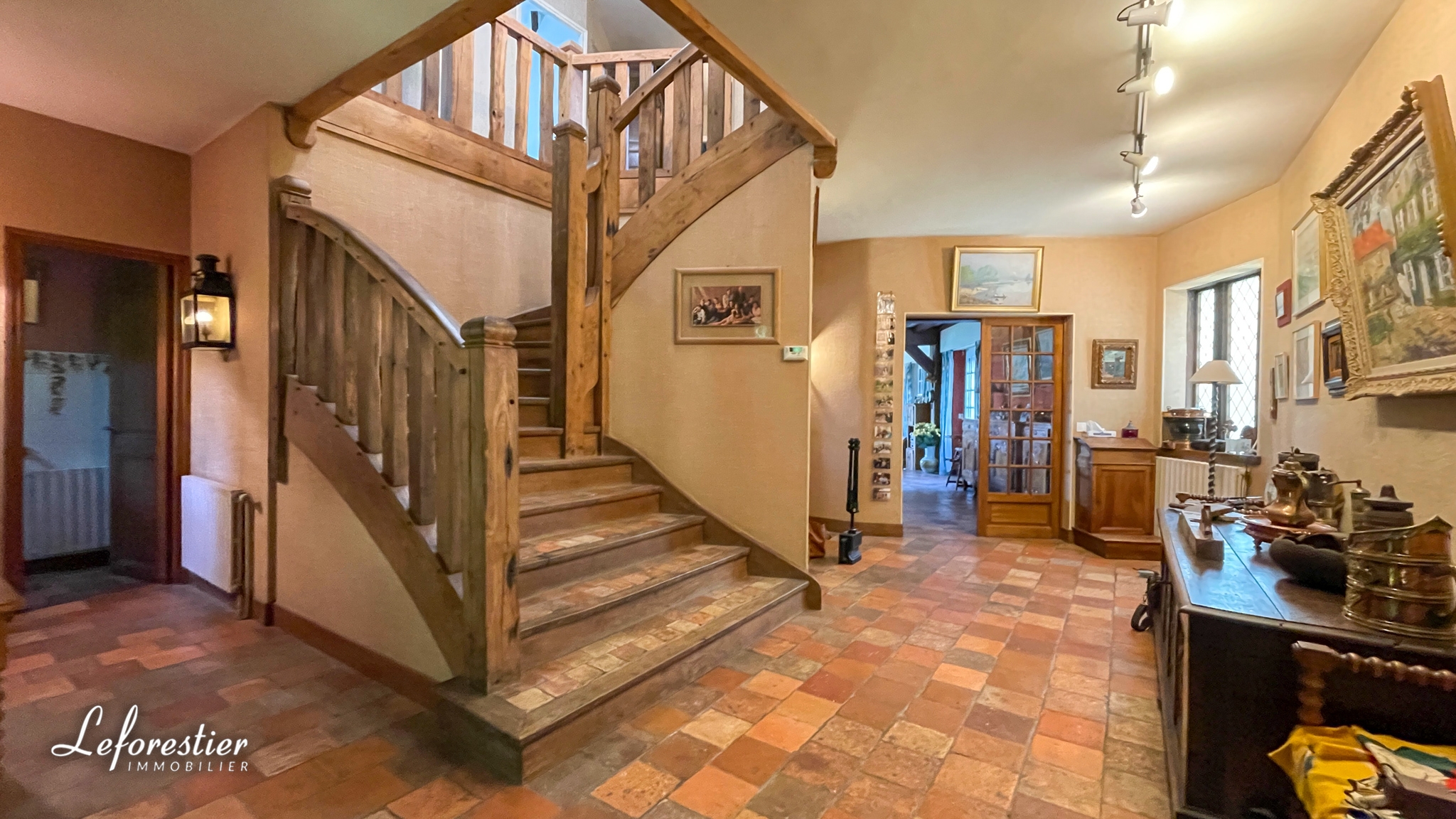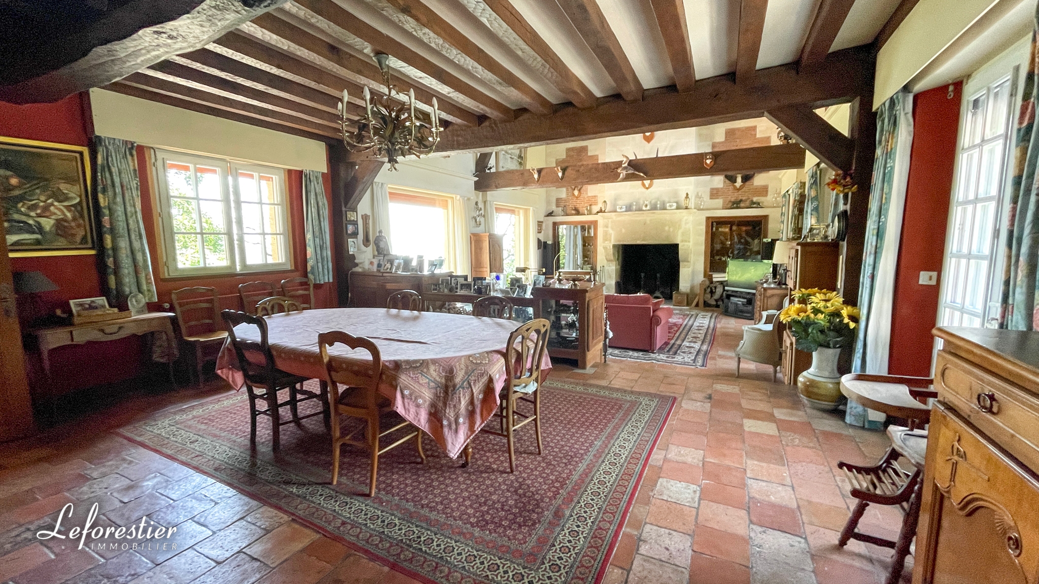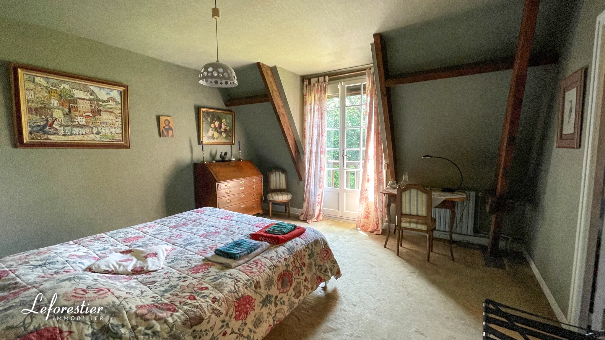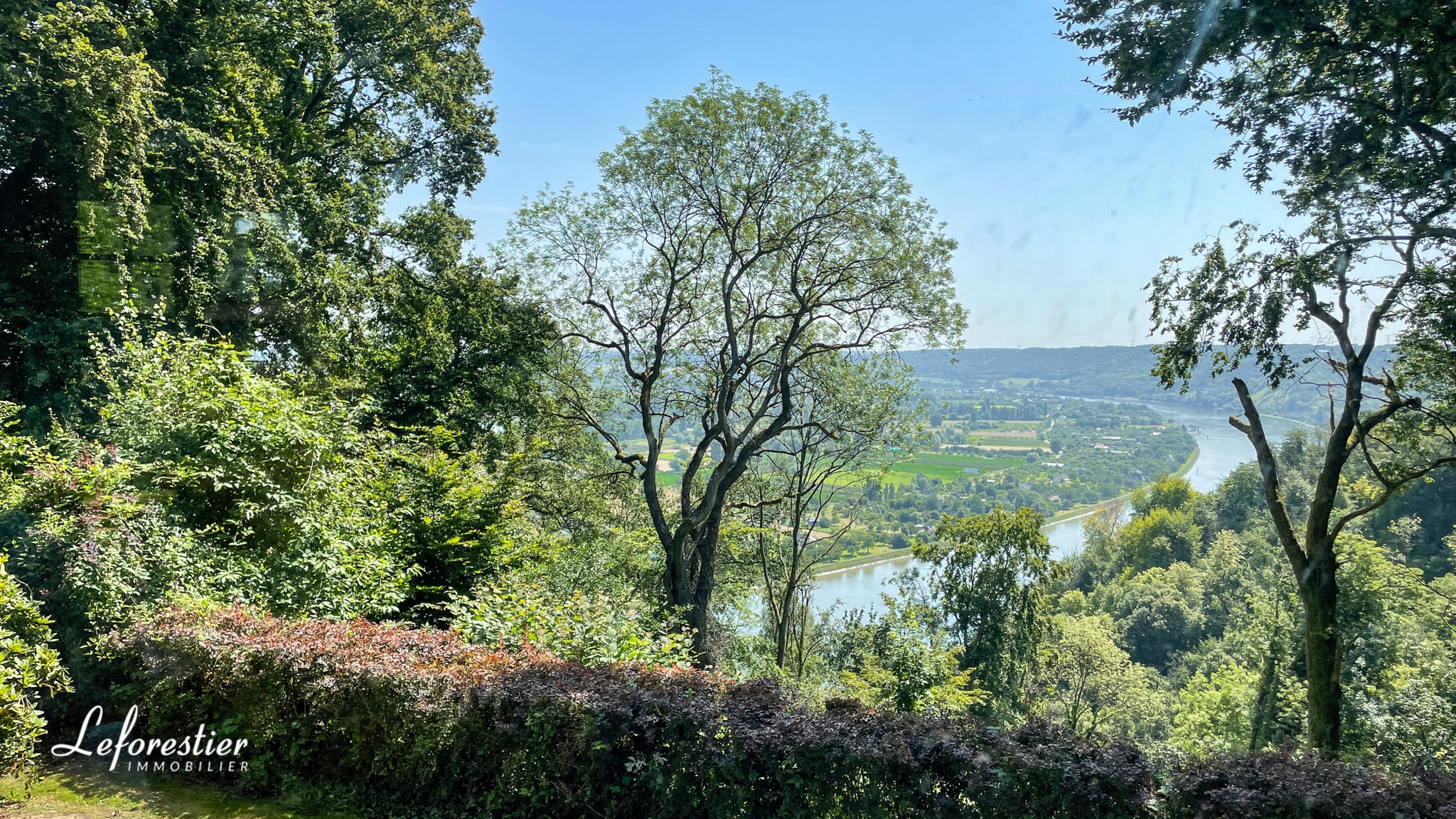 Cette grande maison a été construite par des propriétaires amoureux des propriétés de caractère, privilégiant un environnement exceptionnel. A leur image, ils se sont offert une solide bâtisse de standing, confortable et fonctionnelle. Le grand salon avec son toit cathédrale et ses grandes baies vitrées offre une vue imprenable et dominante sur une boucle de la Seine. Il s’agit d’un espace de réception remarquable avec une grande cheminée à l’âtre du plus bel effet. Le hall d’entrée est spacieux et où s’impose un magnifique escalier massif en bois. Éloignée des pièces de vie principales, une suite de plain-pied comprenant un bureau, une chambre double, une salle de bain et un dressing permet de s’isoler. Un salon en mezzanine, cinq chambres avec salles de bains occupent l’étage pour la famille et les amis. Le sous-sol complet est divisé en un double garage, un atelier, une chaufferie, une lingerie, une cave à vin.
