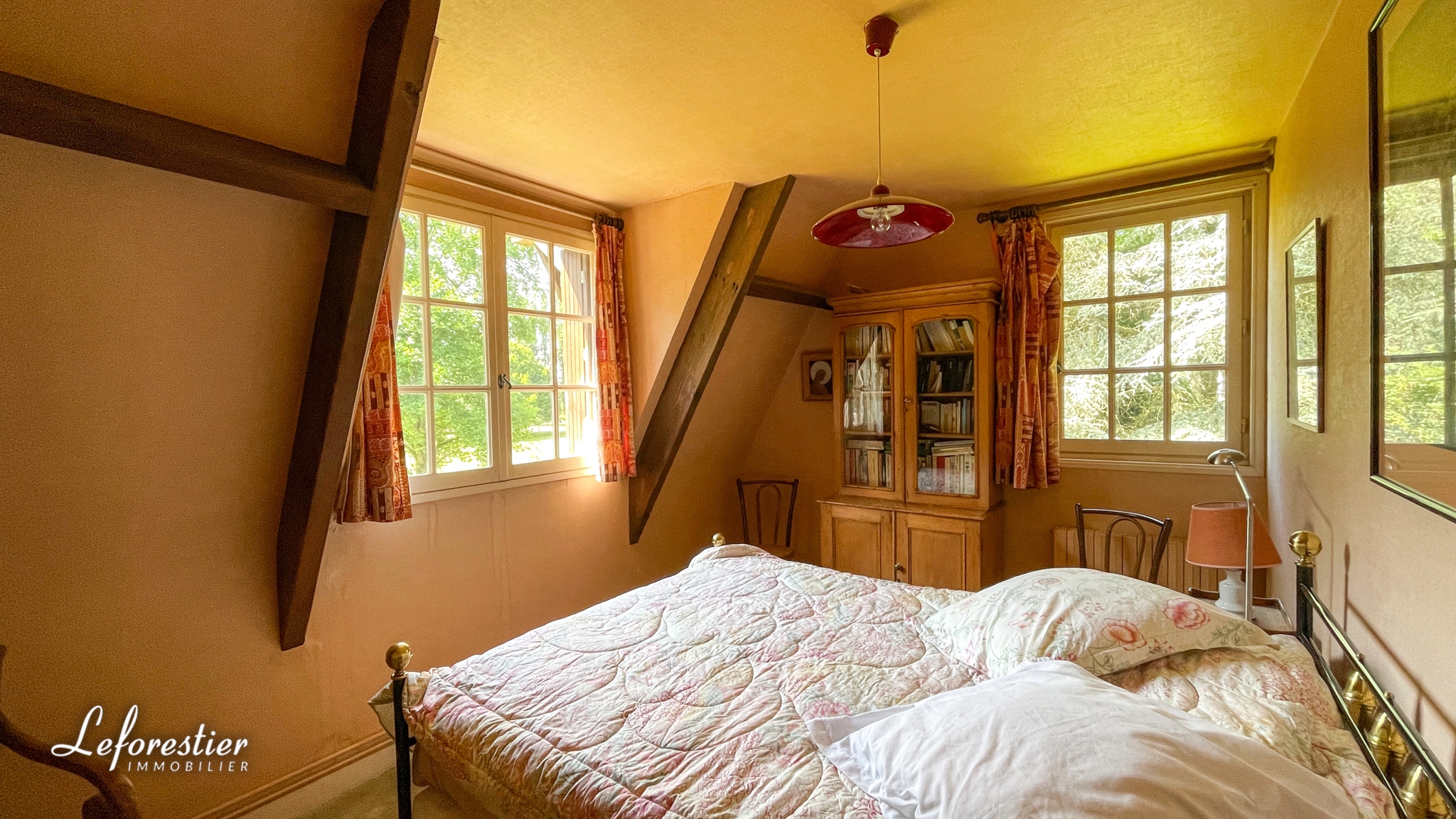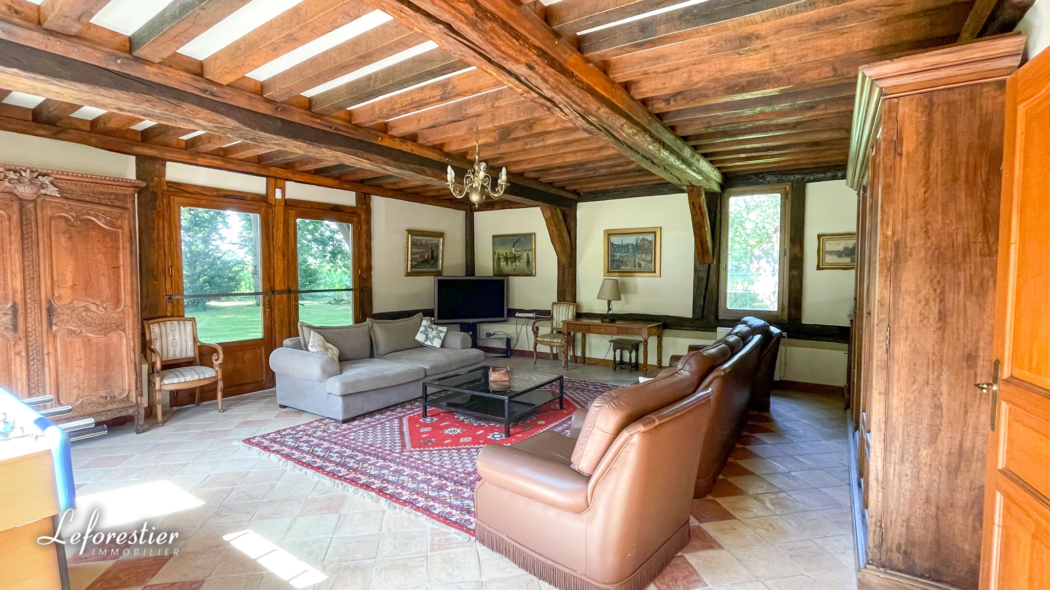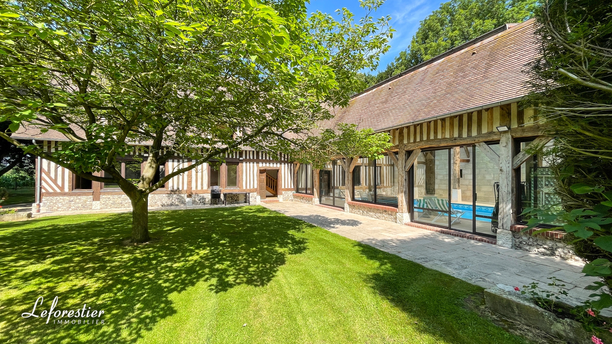 Voilà un grand domaine au très fort potentiel ! Un grand parc d’agrément d’environ 3 hectares, 12 hectares de bois, une magnifique bâtisse néo- normande, un ancien pressoir avec un accès direct sur la vaste piscine chauffée intérieure, un grand bûcher aménageable en gîte, un court de tennis Quick en excellent état, une maison de gardien : tout cela dans un environnement calme et préservé.