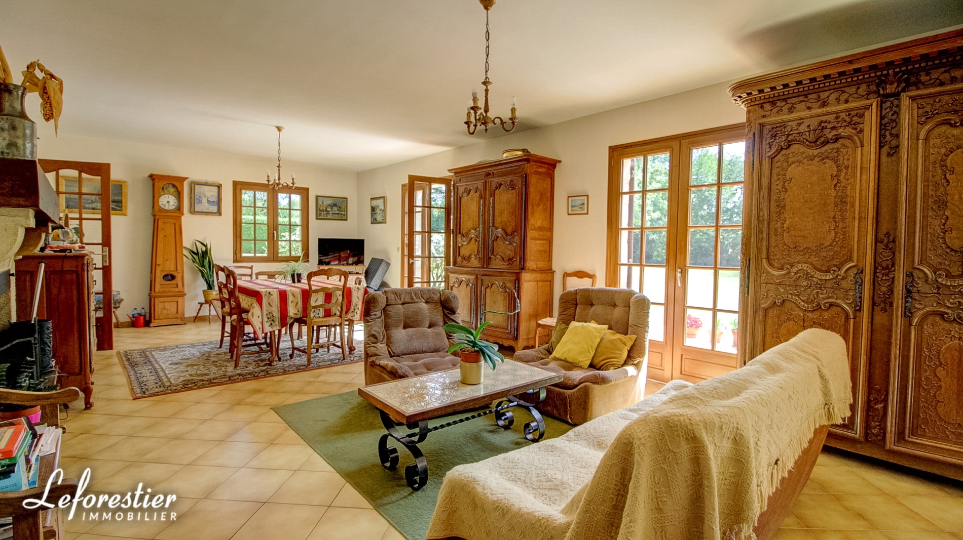 Au rez-de-chaussée, le vaste séjour s’ouvre par trois portes fenêtres vers la terrasse souvent ensoleillée. Une chambre de plain-pied avec son cabinet de toilette vient compléter les 3 vastes chambres de l’étage. La cuisine s’ouvre également sur une seconde terrasse au sud-est. Les petits déjeuners familiaux du dimanche matin sont souvent extérieurs.