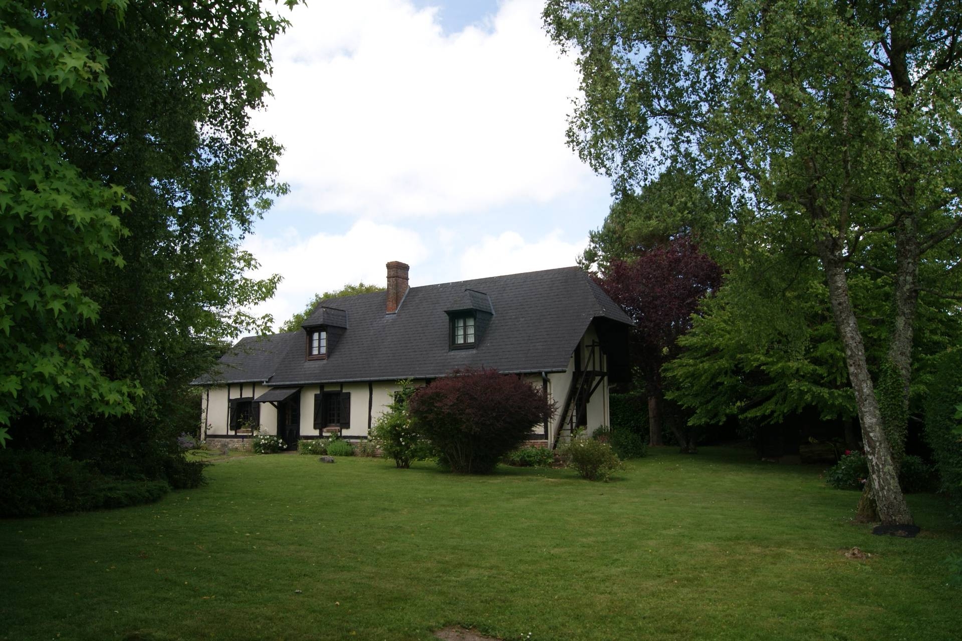 Au milieu d’une petite ruelle d’un petit village du Pays de Bray peuplé de vaches normandes et de chevaux, notre maison de campagne apparait difficilement, bien cachée par de nombreux arbres assurant une réelle confidentialité. Le jardin est clos pour sécuriser les jeux des jeunes enfants. Rénovée dans les années 80, les propriétaires ont respecté l’authenticité de cette longère construite en colombages, poutres et torchis. La grande cheminée normande en brique attire immédiatement l’œil du visiteur. L’âtre offre une douce chaleur. La pièce principale est suffisamment grande pour organiser de conviviales soirées au coin du feu. Dotée de 4 chambres et d’un bureau, une grande famille peut se réunir pour construire de nombreux souvenirs communs.