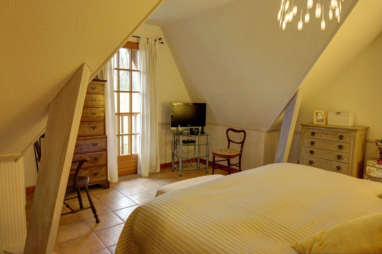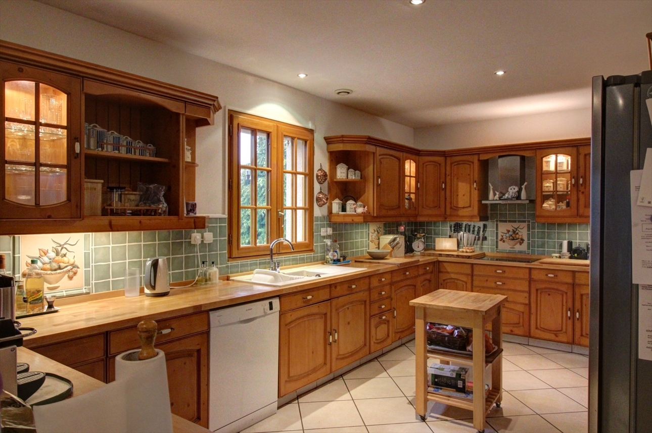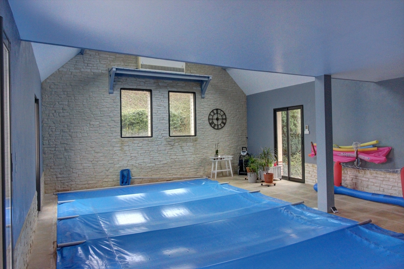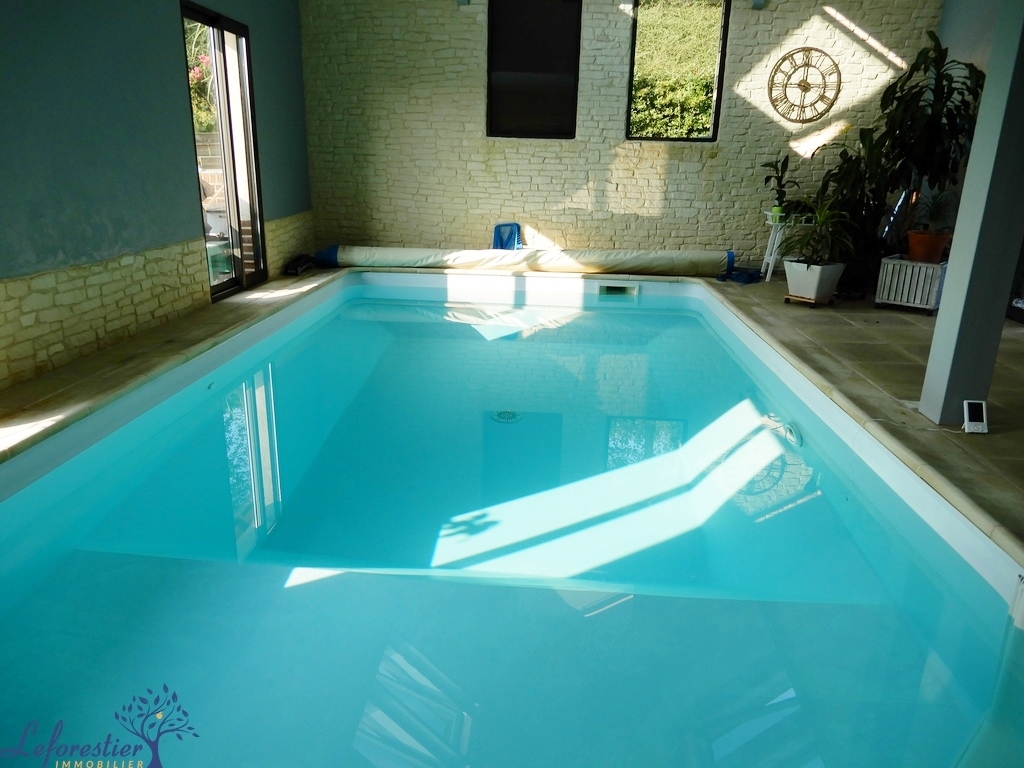 Cette maison de campagne à vendre très confortable dispose d’une lumineuse salle de sport avec piscine chauffée intérieure. Accessible par une porte vitrée coulissante, la piscine peut s’apprécier toute l’année. Le chauffage, par le poêle à pellets et radiateurs caloporteurs est économique et efficace. Le séjour est ouvert sur une belle cuisine aménagée et équipée. Une grande salle de bains familiale est installée au rez-de-chaussée. Les quatre chambres dont l’une avec dressing sont réparties autour du palier de l’étage. Dans le sous-sol entièrement peint et carrelé, l’espace de rangement est optimisé. On y retrouve une buanderie et un double garage avec porte à télécommande couplée au portail électrique.