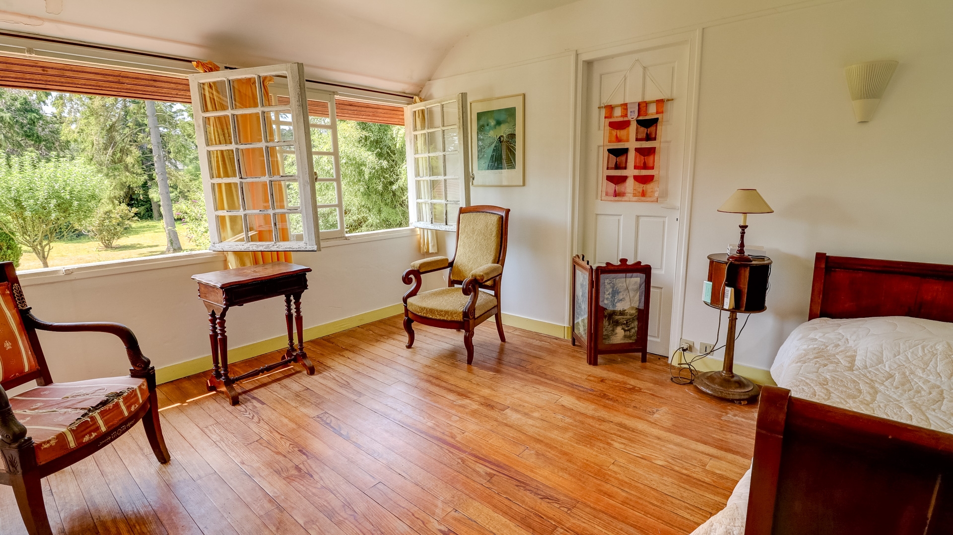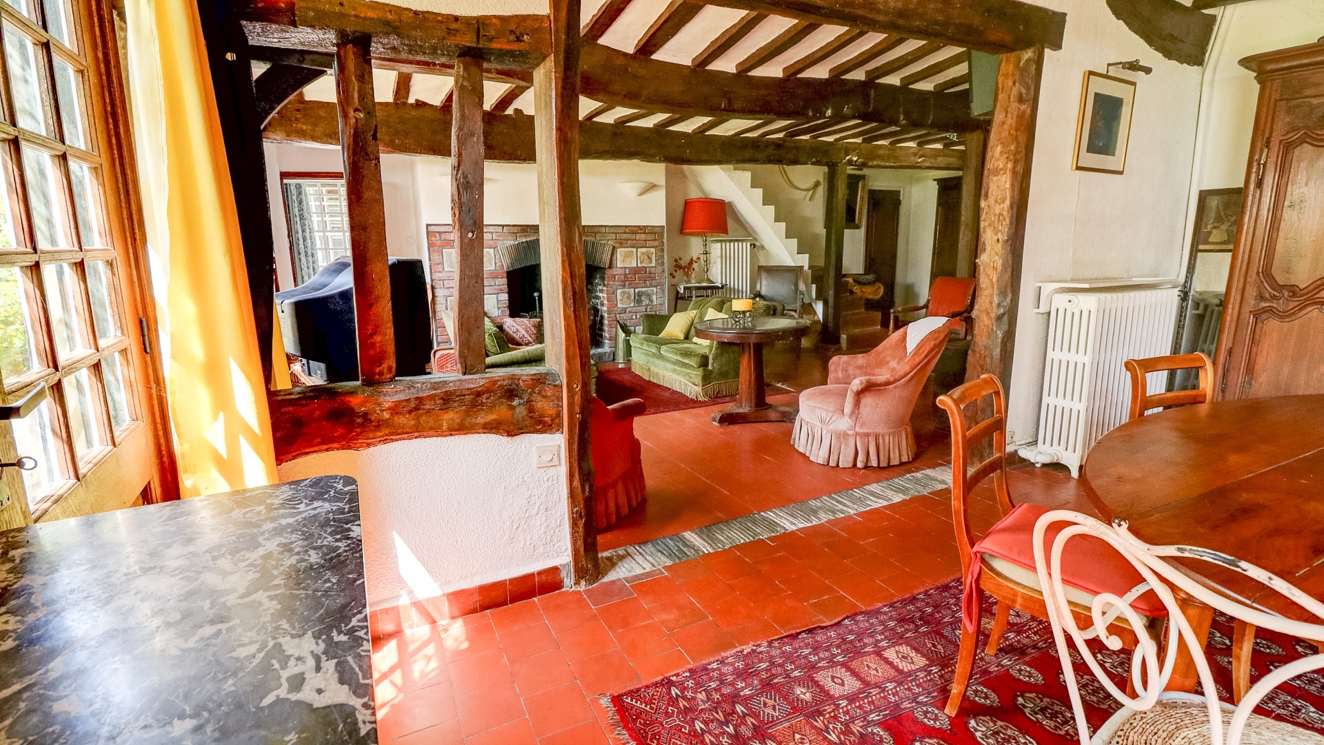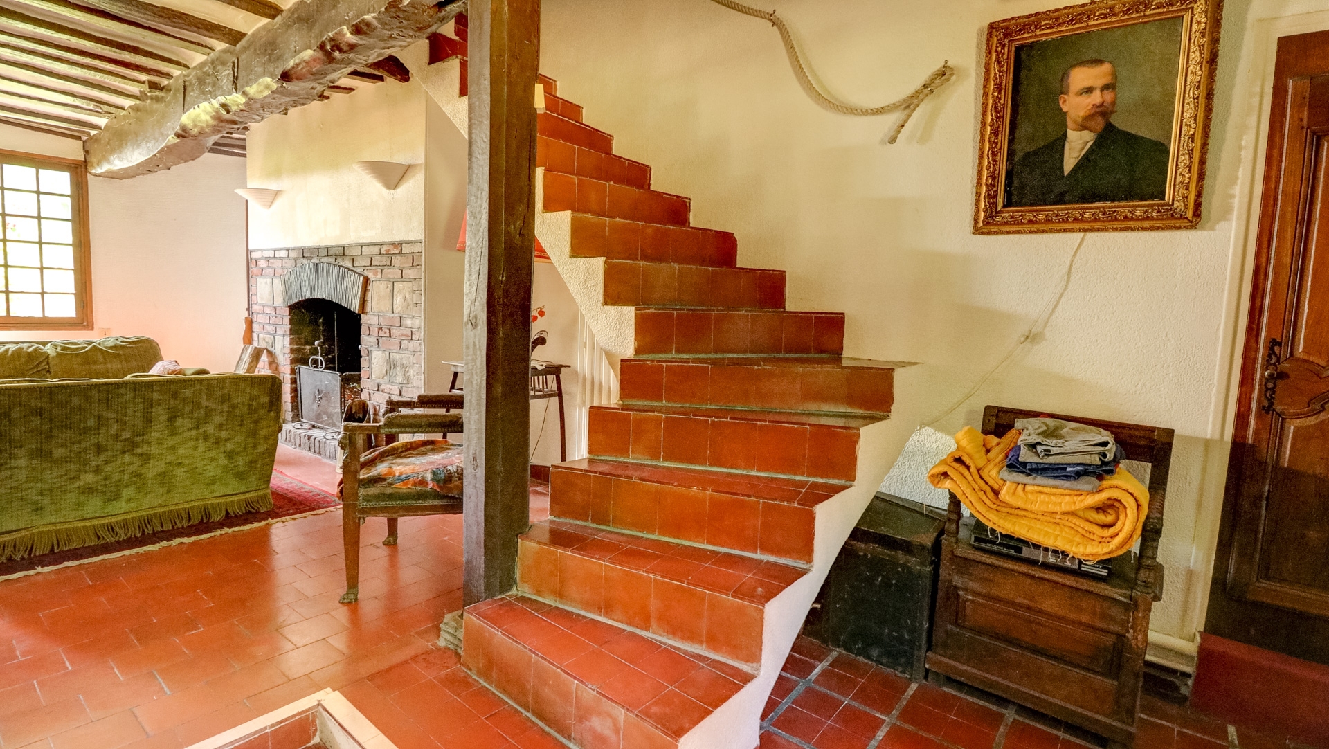 La grande cheminée de briques du salon est typique de la région. Une partie du rez-de-chaussée a été transformé en gîte indépendant pour être loué et obtenir des revenus complémentaires, où bien encore recevoir ses amis de façon indépendante.