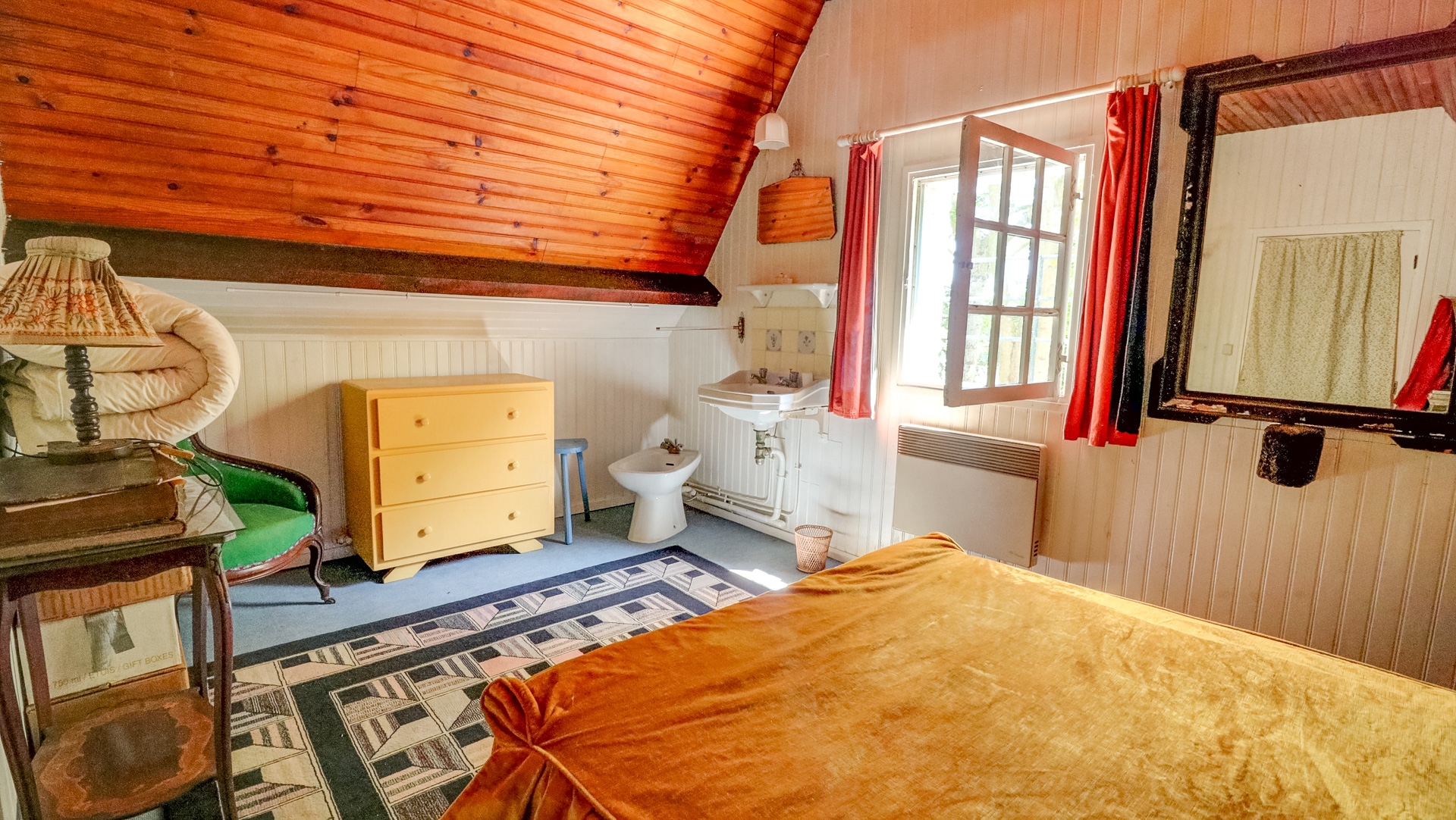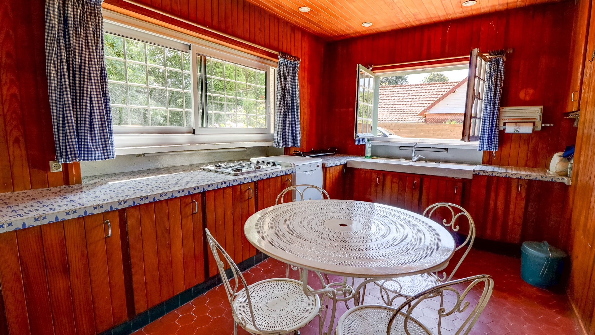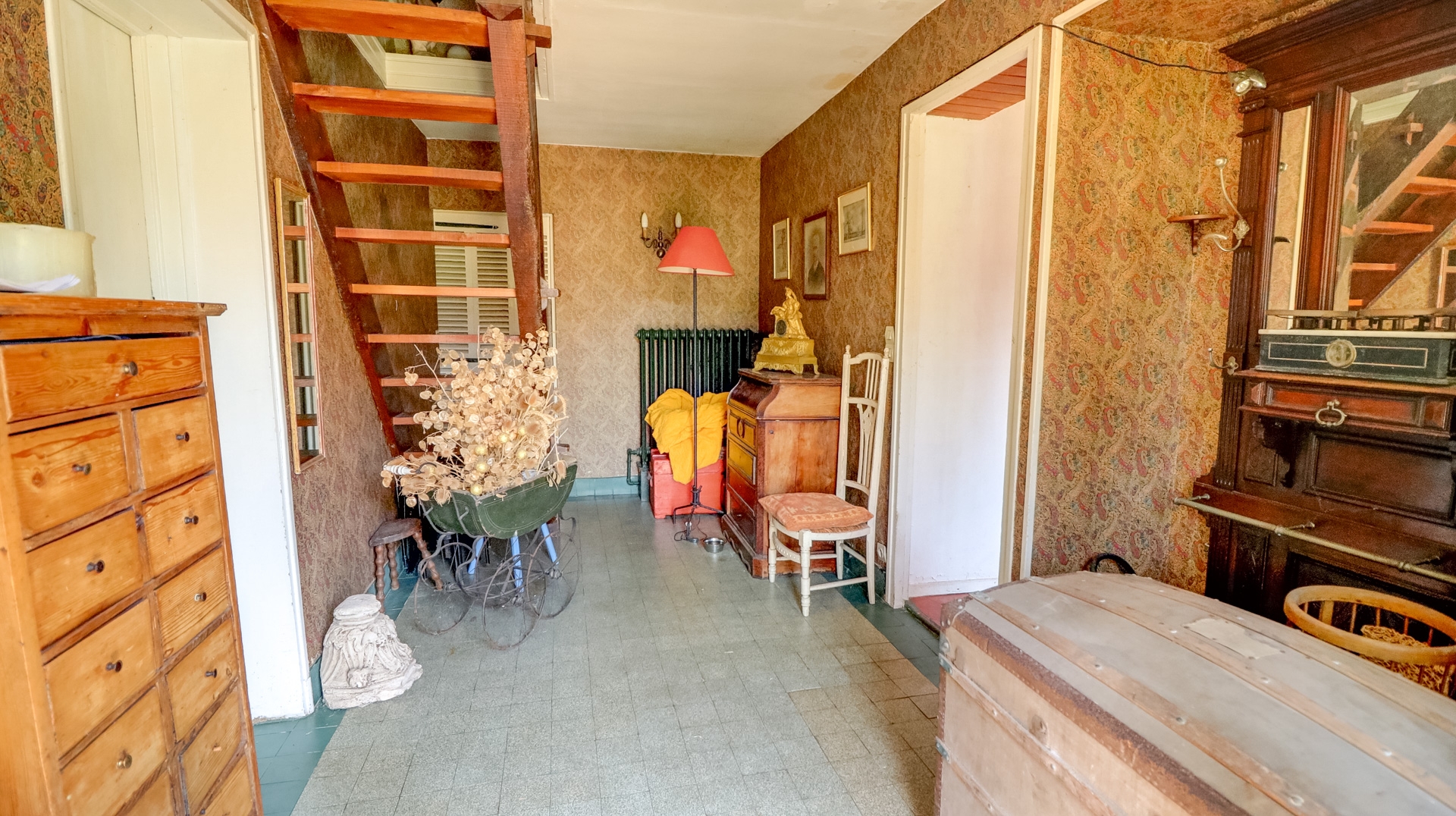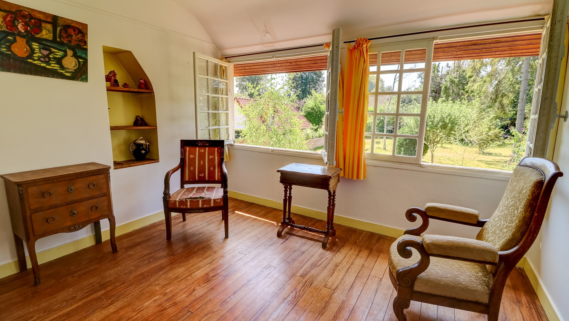 La grande cheminée de briques du salon est typique de la région. Une partie du rez-de-chaussée a été transformé en gîte indépendant pour être loué et obtenir des revenus complémentaires, où bien encore recevoir ses amis de façon indépendante.