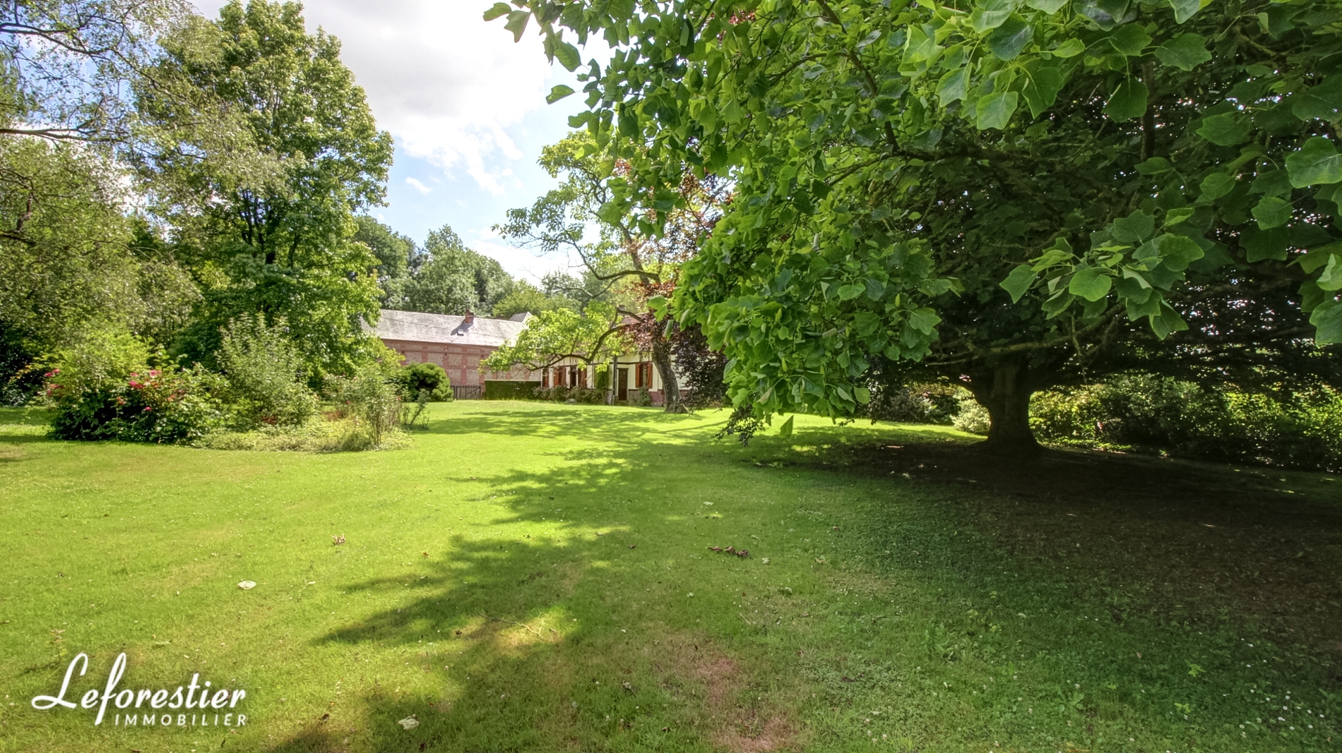 Située entre Neufchâtel-en-Bray et Aumale, cette maison normande à rénover bénéficie d’un beau jardin planté de grands arbres