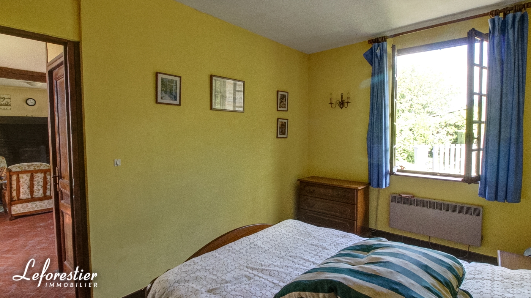 Notre maison de campagne à vendre est une habitation de plain-pied avec un grenier et une cave. Elle est construite sur un jardin planté d’arbres aux essences et couleurs variées et d’un verger. Ce jardin fait face, de l’autre côté de la rue, aux murs anciens en silex de la dépendance du château du village où une kinésithérapeute a installé son cabinet. Le lieu est paisible et verdoyant mais pas complètement isolé !