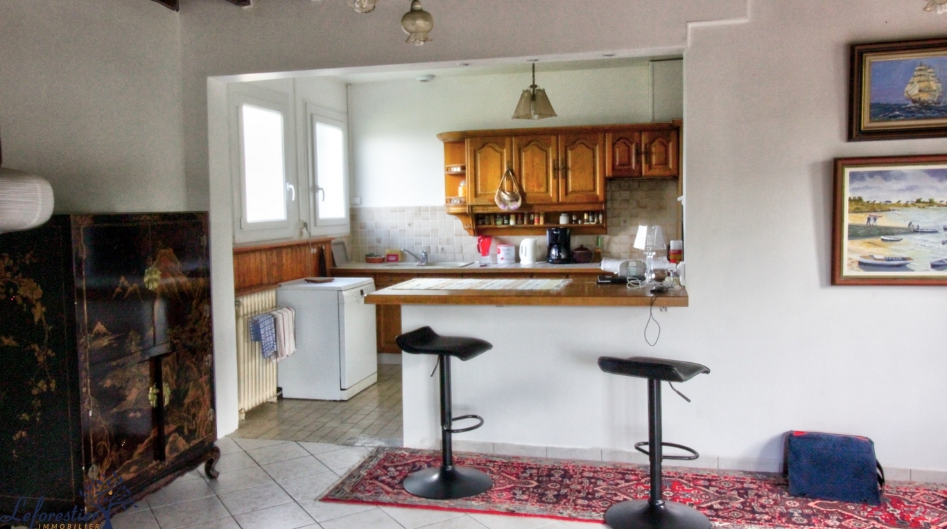 Située dans le village de Millebosc, près de la forêt d’Eu, cette maison de village séduira les amoureux de nature. La porte-fenêtre du séjour ouvre sur une terrasse qui surplombe un grand jardin arboré. Une grande cheminée invite aux feux de bois. Un bar sépare la cuisine équipée du salon. Le rez-de-chaussée comporte également deux belles chambres, une salle d’eau et un cabinet de toilette. L’escalier mène au premier étage vers deux autres chambres, un bureau et un petit grenier.