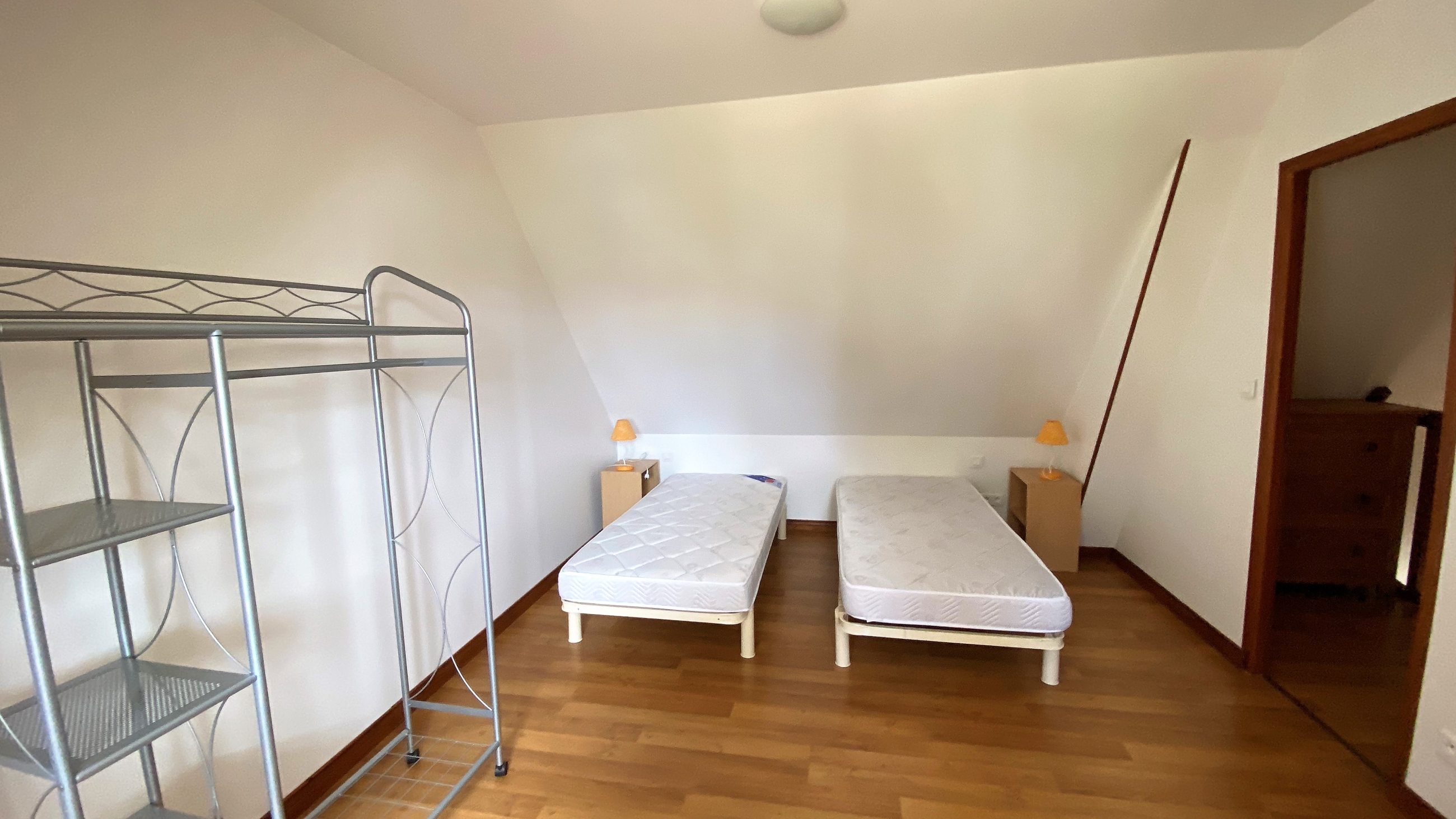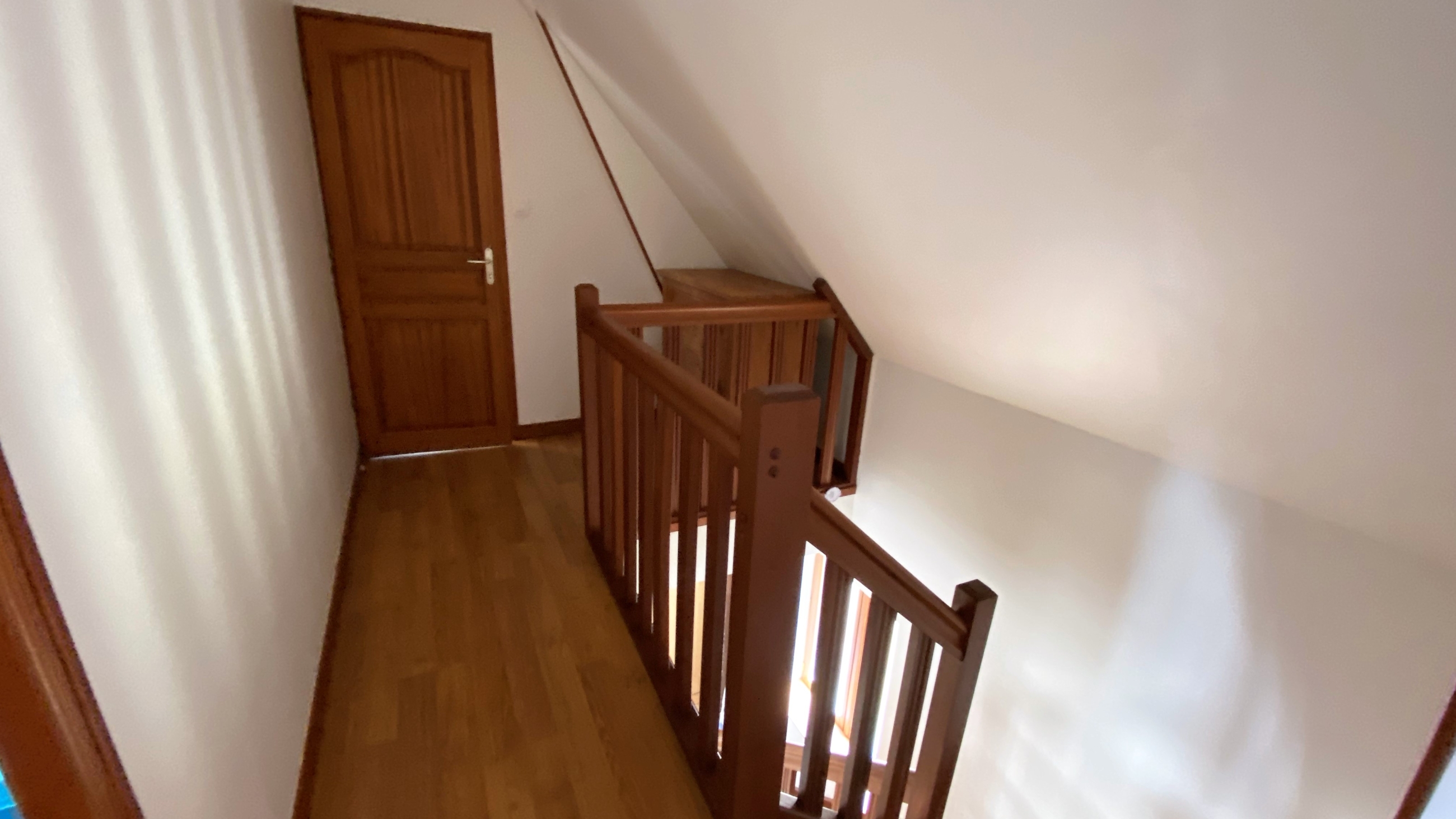 A l’étage, le palier avec placards dessert 2 chambres confortables avec salle de bains, toilettes et lave mains.