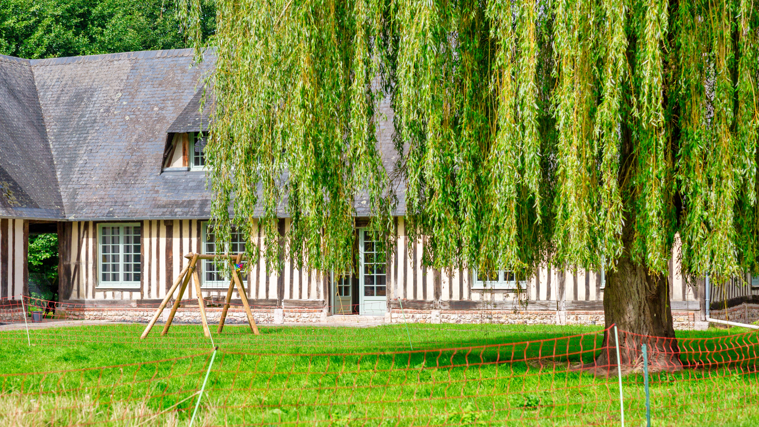 Cette propriété borde le Dun, charmante rivière Normande se jetant sur la plage de Saint-Aubin-sur-Mer 6 km plus loin. Le terrain est arboré de belles essences, un saule pleureur occupe une place majestueuse et puise parfaitement l’énergie du sol de qualité de fond vallée. La propriété est à l’abri des vis-à-vis et propose un cadre idéal pour profiter en famille tant en résidence principale que secondaire.
