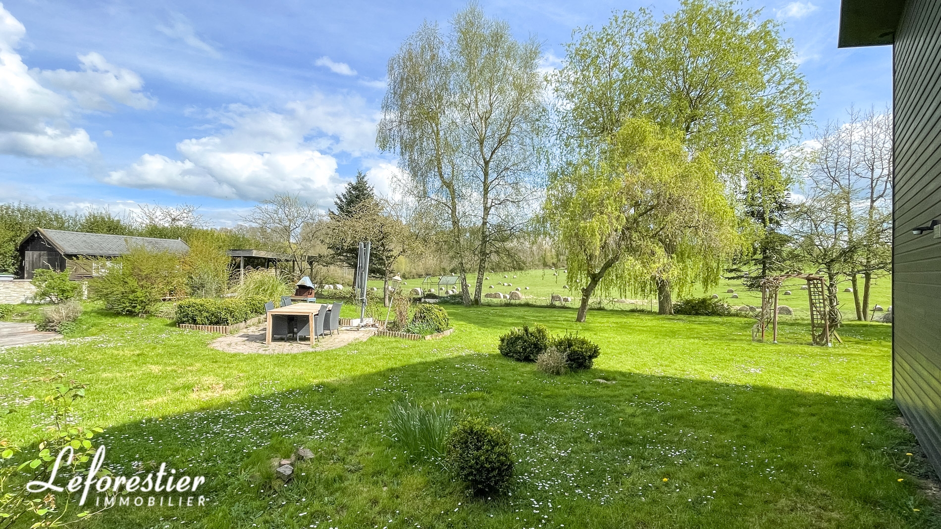 A l’abri des regards et sans vis à vis, le jardin de 1 434 m², facile à entretenir bénéficie d’une exposition ensoleillée avec une vue magnifique sur un bocage typiquement normand.