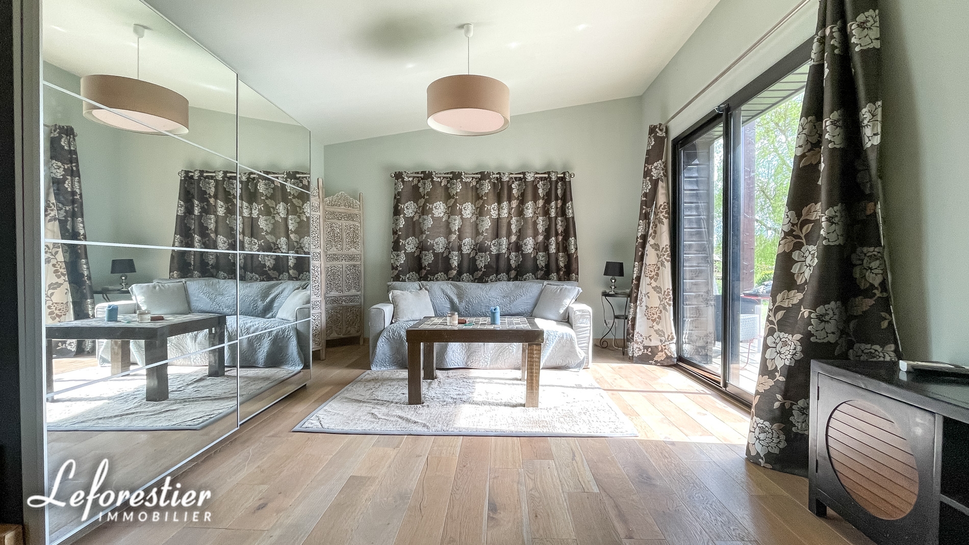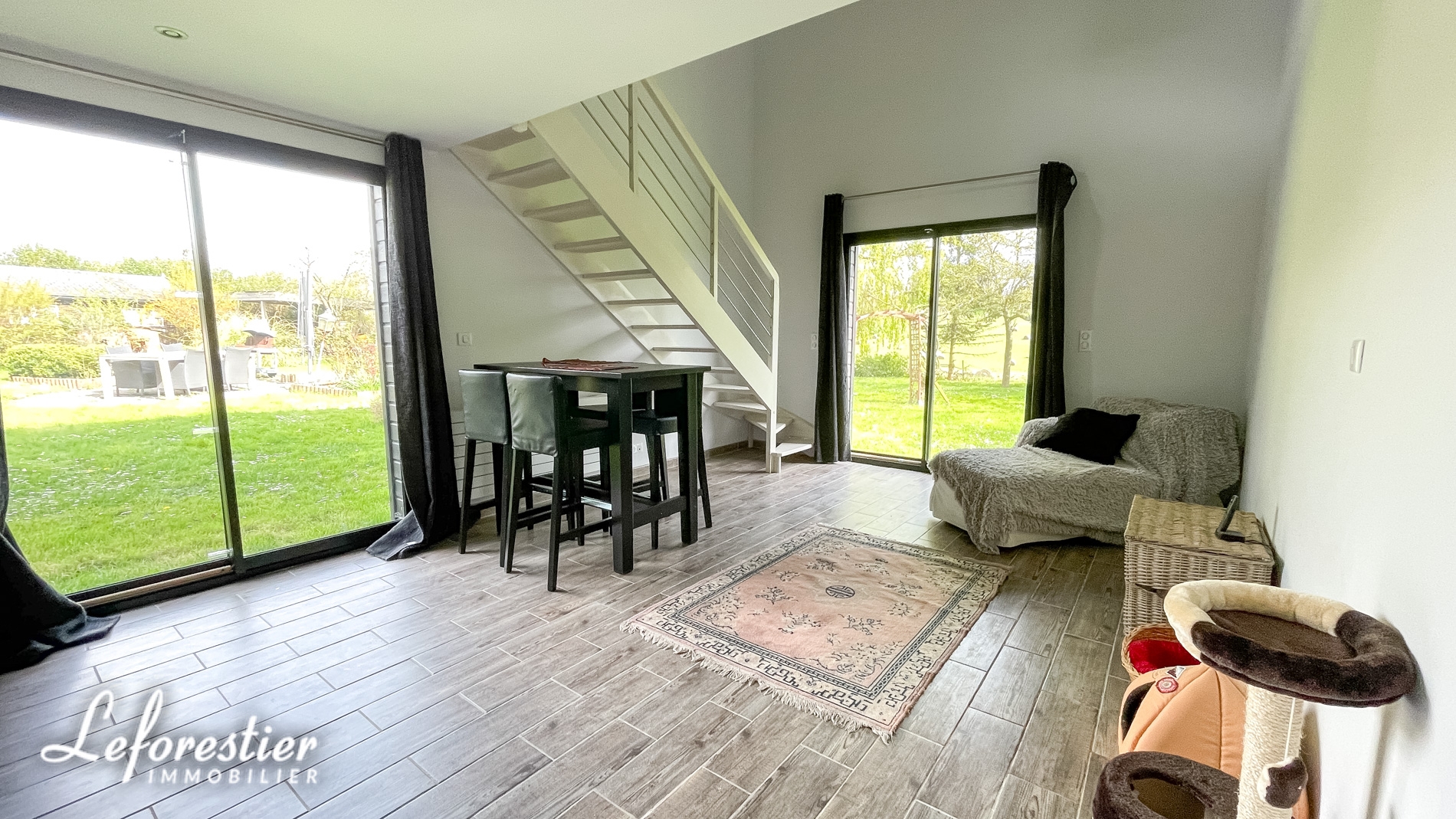 Au centre, la maison ancienne vous accueille dans une belle pièce à vivre avec coin cuisine, salle à manger et une belle cheminée avec poêle à bois. Une chambre, une salle de bains, une buanderie et des toilettes complètent le rez-de-chaussée. L’escalier mène sur une chambre en mezzanine, un dressing et une chambre. Une première extension contemporaine relie la salle à manger à un beau salon dont les grandes baies vitrées ouvrent sur une terrasse. La seconde extension relie la chambre du rez-de-chaussée à un beau bureau lumineux puis un appartement indépendant avec cuisine, salle d’eau et chambre en mezzanine.