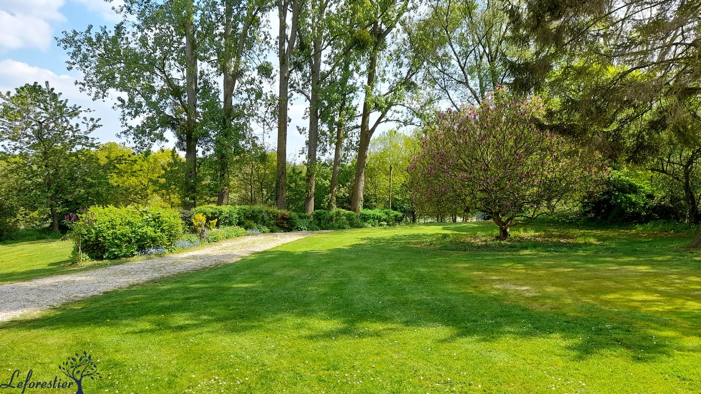 Le parc de plus d’un hectare est entièrement clos et à l’abri des regards. De nombreux massifs fleuris et un bassin agrémentent le jardin. Une charmante prairie plantée d’arbres fruitiers est inclue dans le domaine.
