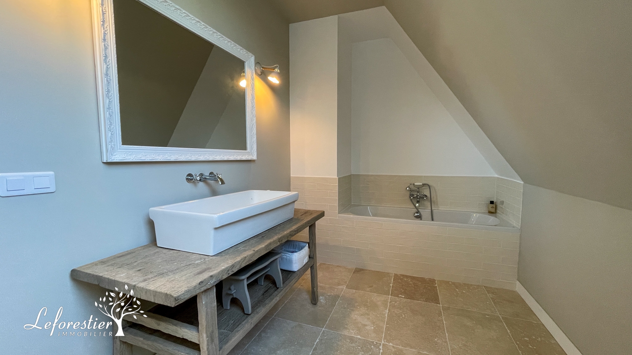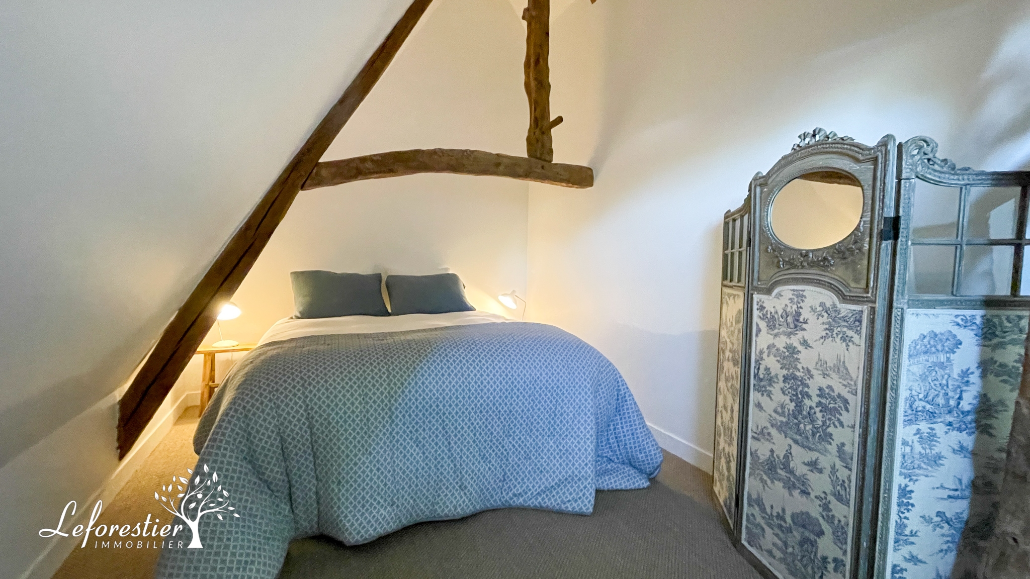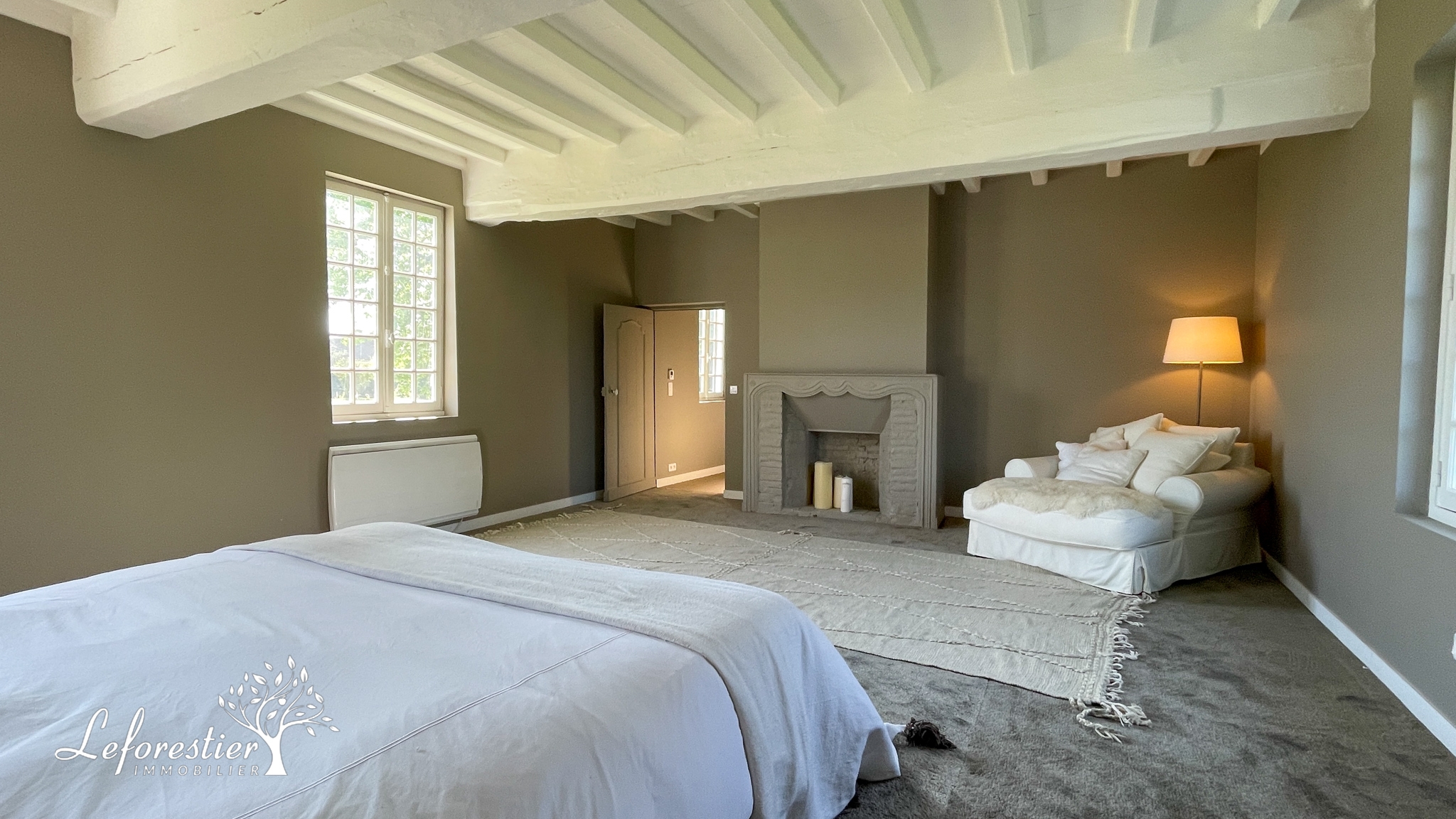 Dès l’entrée, la restauration réalisée conserve le style ancien de la maison avec des colombages apparents en excellent état. La grande cuisine ouverte est la pièce maitresse de cette demeure. La circulation autour du grand ilot central est parfaite. Les matériaux utilisés sont de qualité avec notamment une crédence en zellige et une grande ouverture donnant sur la terrasse.