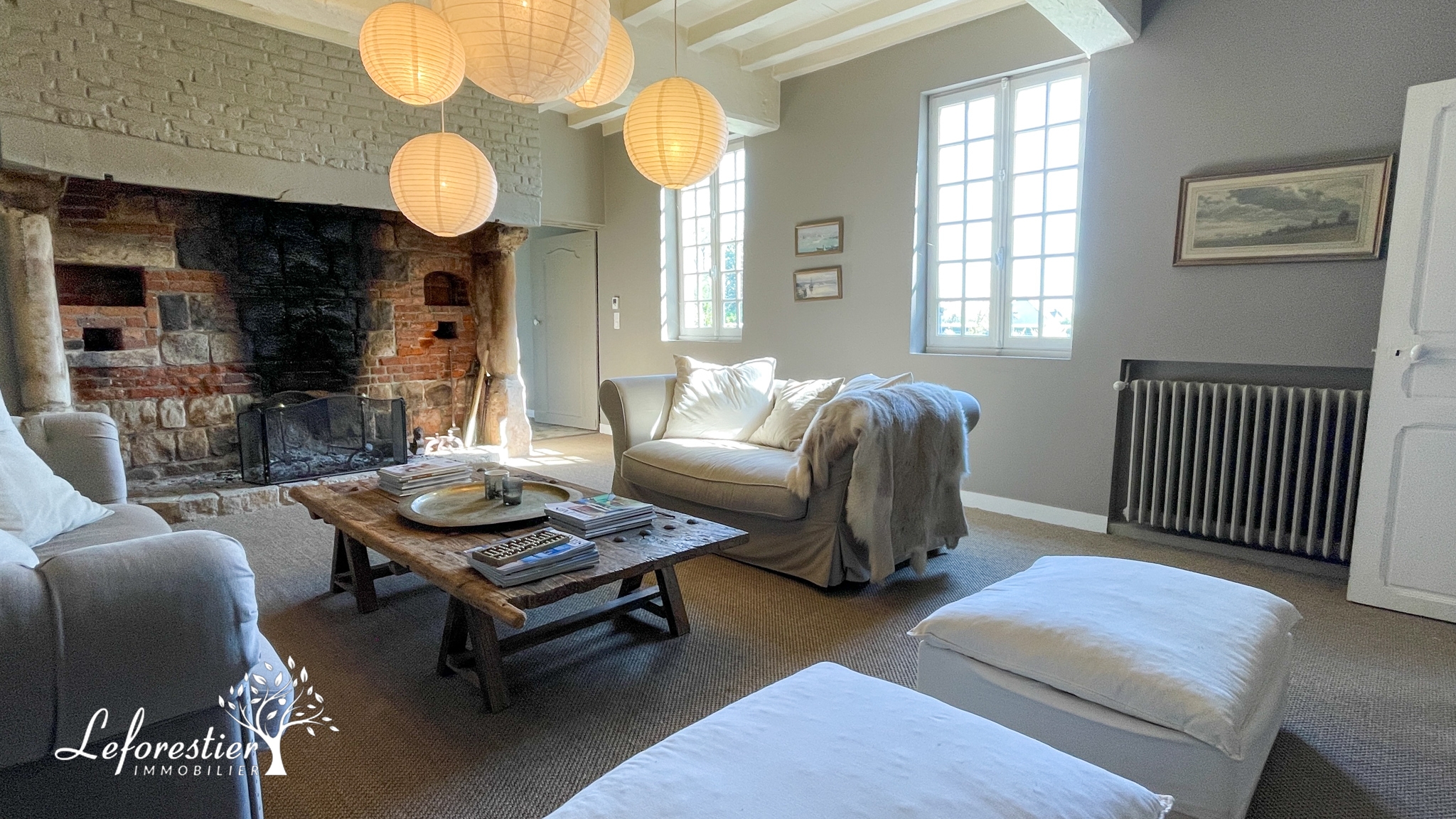 Le salon est cosy et sa grande et imposante cheminée de ferme permet de profiter de feux ouverts lors des soirées d’hiver.