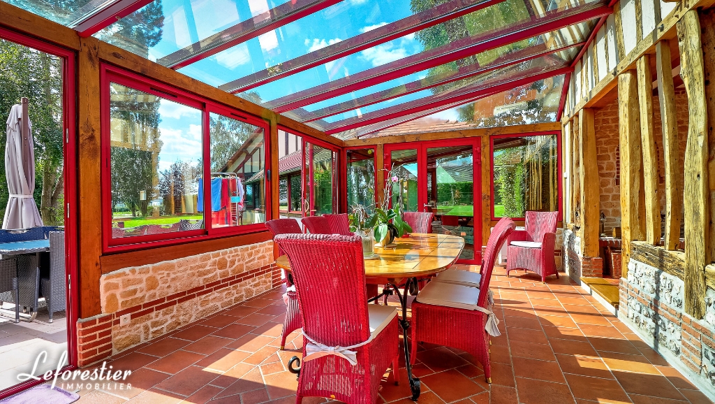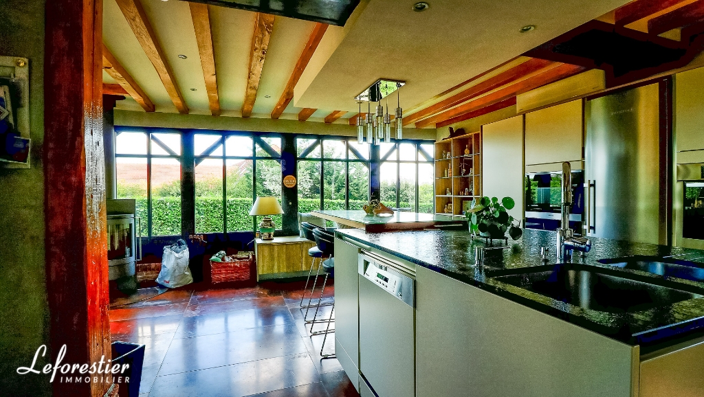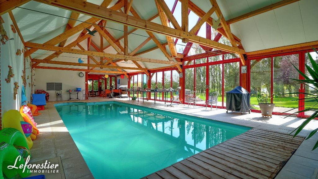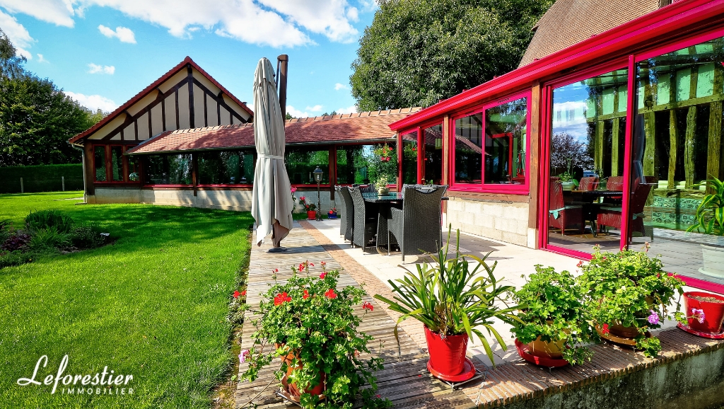 A 15 minutes au nord de Rouen, capitale historique de la Normandie, cette propriété normande a été construite dans un parc de 5000 mètres carrés ; parc clos, arboré et fleuri avec soin. A 5 minutes en voiture de la gare, des commerces, des services et du collège de la petite ville de Montville, l'accès rapide à l'autoroute A186 permet de rejoindre les quais de Rouen en moins de 15 minutes en voiture. Les lycées de la vallée du Cailly et la faculté de Mont-Saint-Aignan sont pour les adolescents et jeunes adultes d'excellentes opportunités pour se former. Pour les parents, l'activité économique dense et prospère de la région nord de Rouen est une sécurité pour trouver du travail ou de nouveaux marchés. Dans la grande dépendance à usage de garage, d'atelier et de cave, un autoentrepreneur peut aisément aménager un bureau indépendant pour y travailler ou recevoir ses clients. La maison de famille compte quatre chambres et une salle de bains à l'étage. Au rez-de-chaussée, le salon avec sa belle cheminée à l'âtre est parfait pour recevoir ses amis. La grande véranda construite est venue augmenter généreusement la surface de réception. Mais mieux encore, une magnifique cuisine contemporaine a été récemment créée pour profiter du décor et de la lumière extérieurs. En effet, les larges et élégantes baies vitrées métalliques apportent une touche décorative très tendance, comme dans un loft urbain. Mais le point de cette propriété set sa piscine couverte et chauffée par une pompe à chaleur. Dans une bâtisse en ossature bois de 120 m2, cette piscine est le royaume des enfants et des petits enfants. Un corridor de style normand lie cette piscine à la véranda de la maison sans passer par le jardin. Exceptionnel !Proche de Rouen, sur la route de la Côte d'Albâtre et de la ville portuaire de Dieppe, cette propriété normande à vendre attend la famille active et connectée au monde moderne, tout en profitant pleinement du confort contemporain !