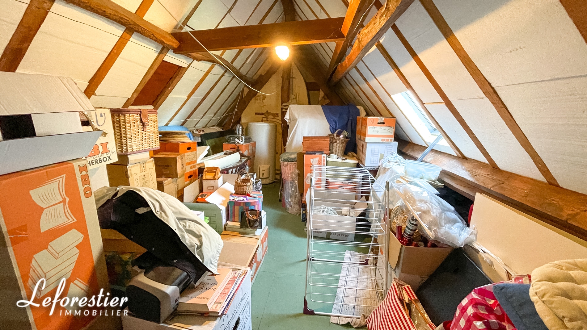 Au rez-de-chaussée on y trouve la cuisine, un salon/séjour, une chambre et une salle de douche. A l’étage, un palier, une chambre, un bureau et un grenier aménageable.