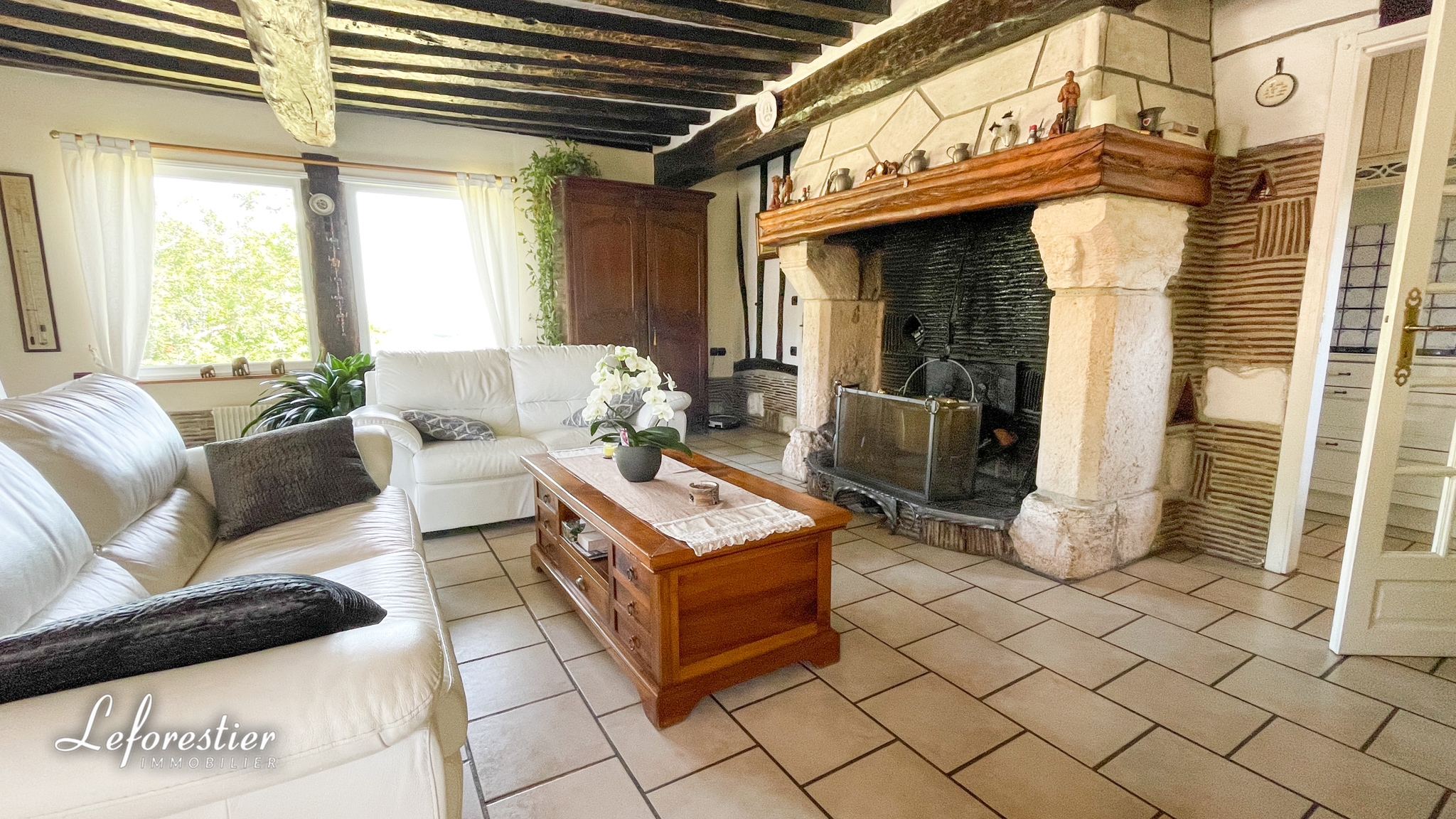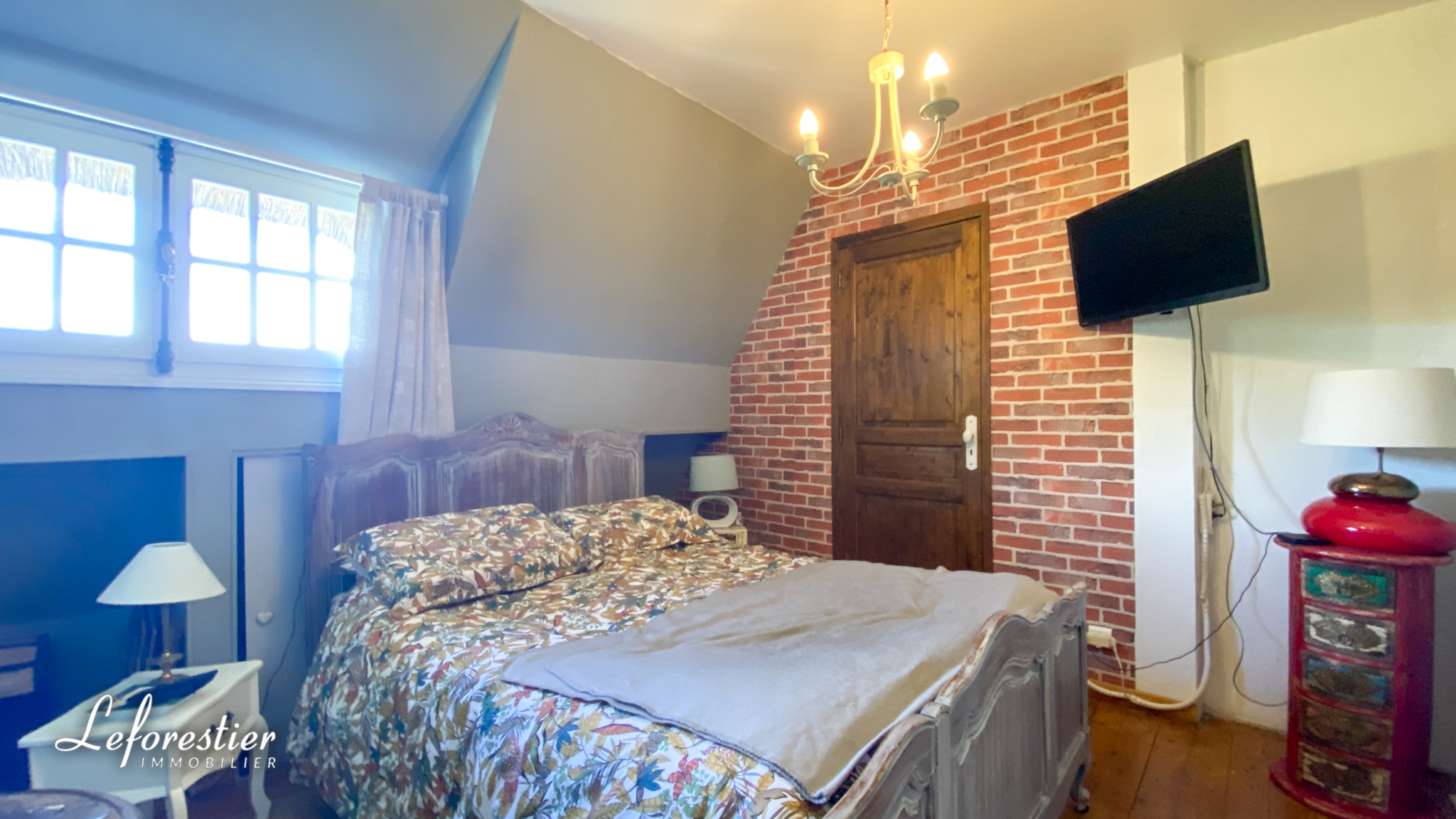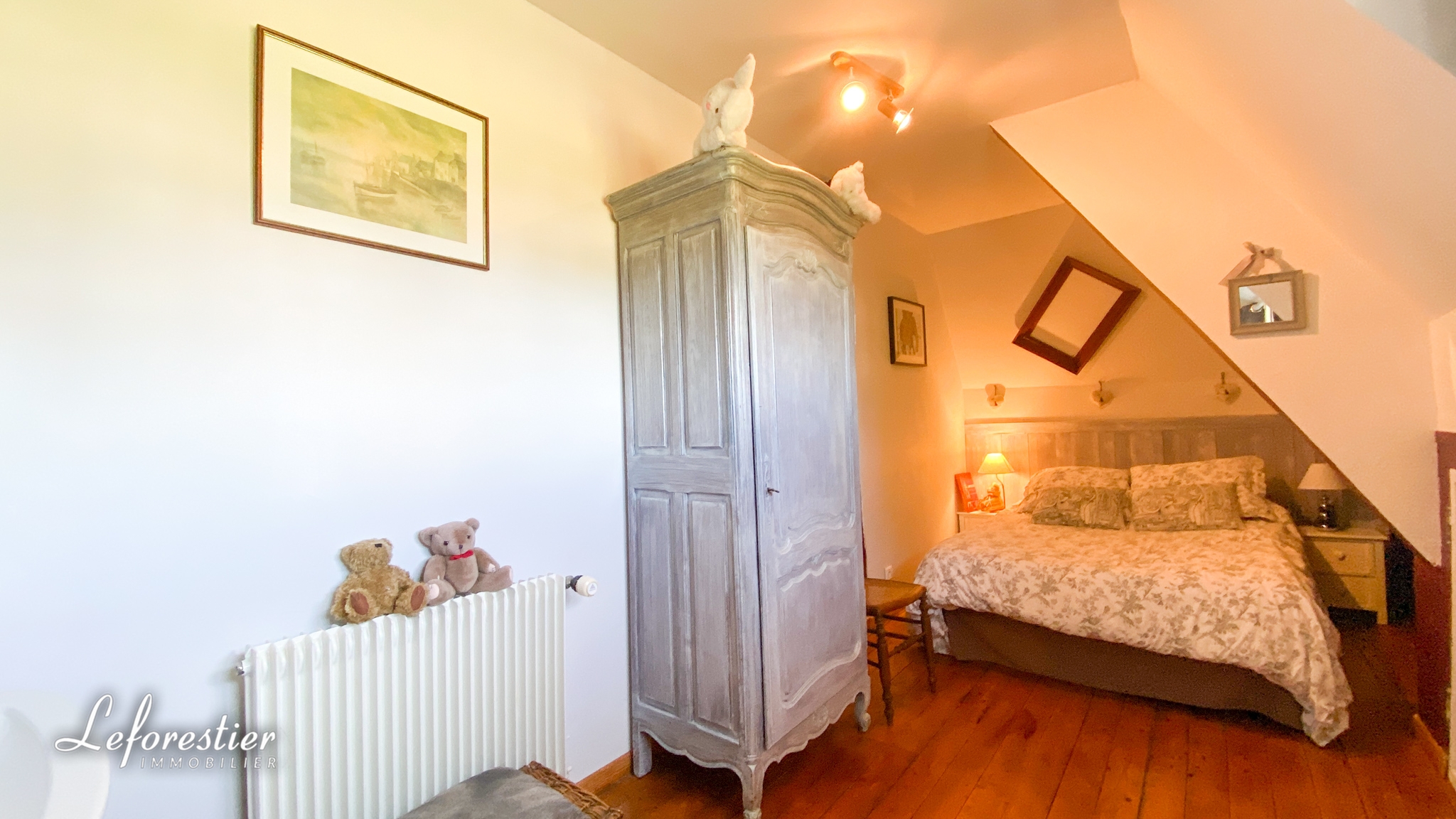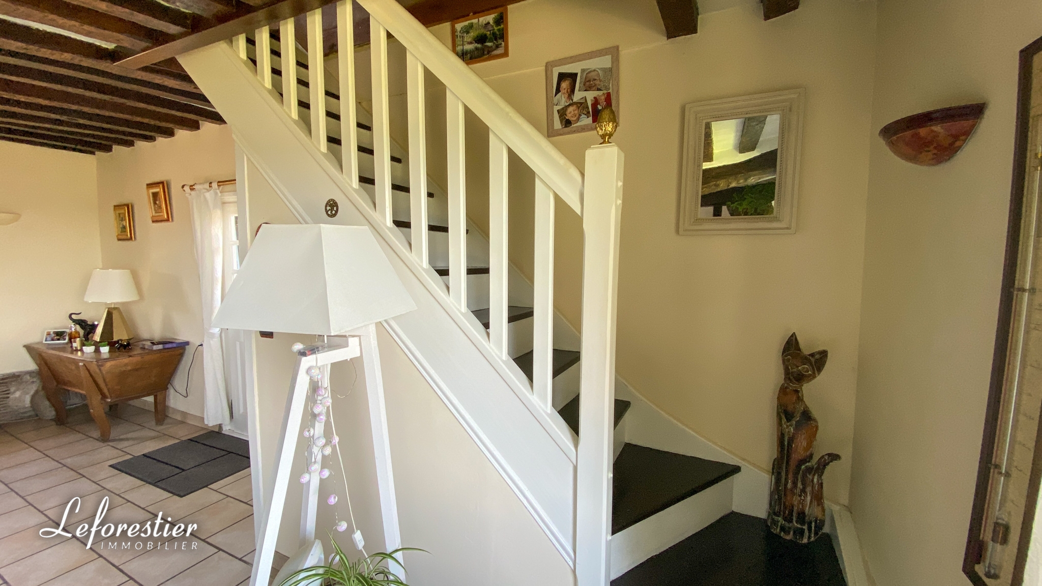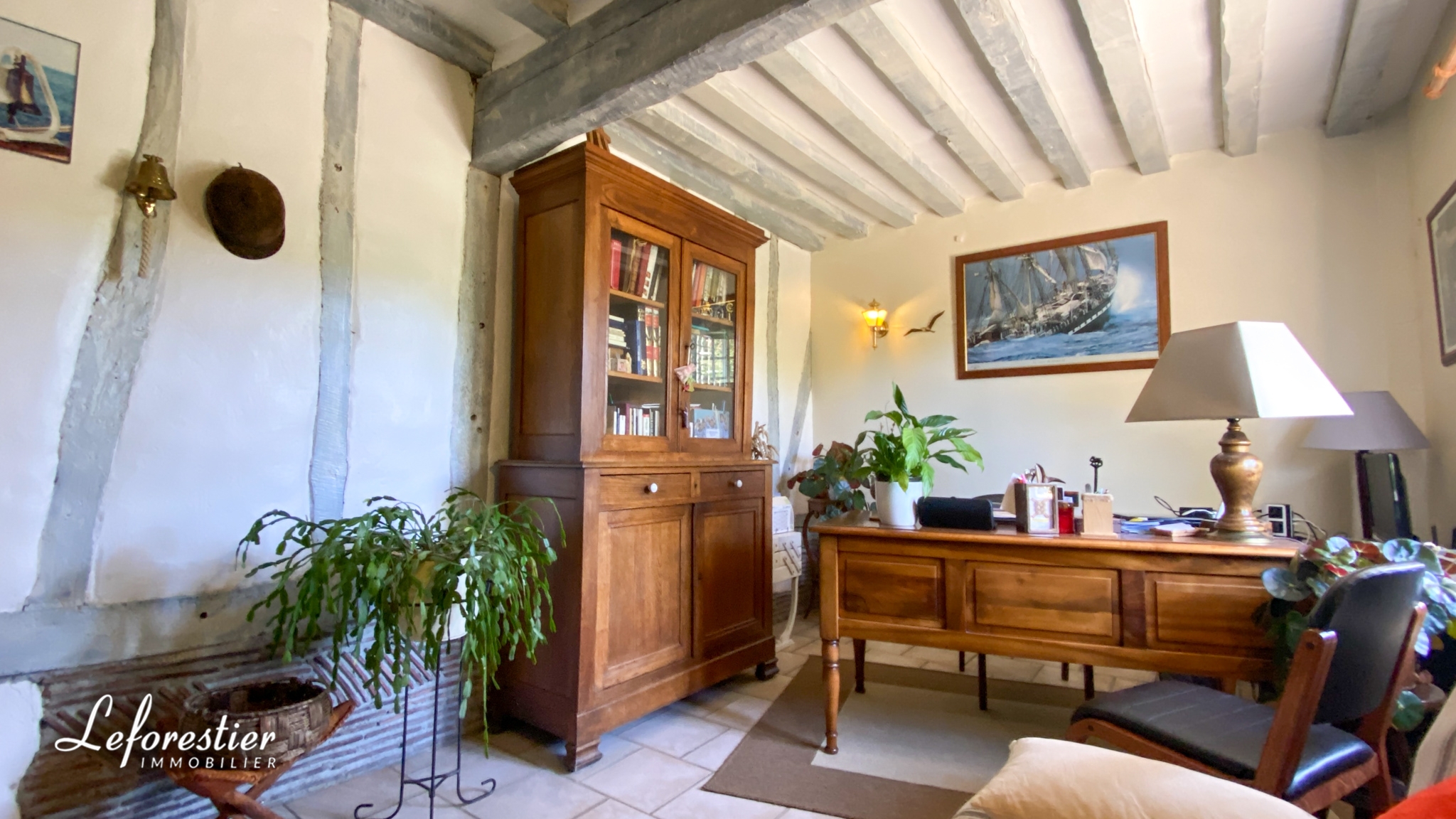 A l’étage, se trouvent une chambre, une salle de bain, une cuisine et un grand salon séjour avec balcon offrant une vue superbe sur les boucles de la seine. Idéal pour recevoir des convives ou faire une activité de gîte.