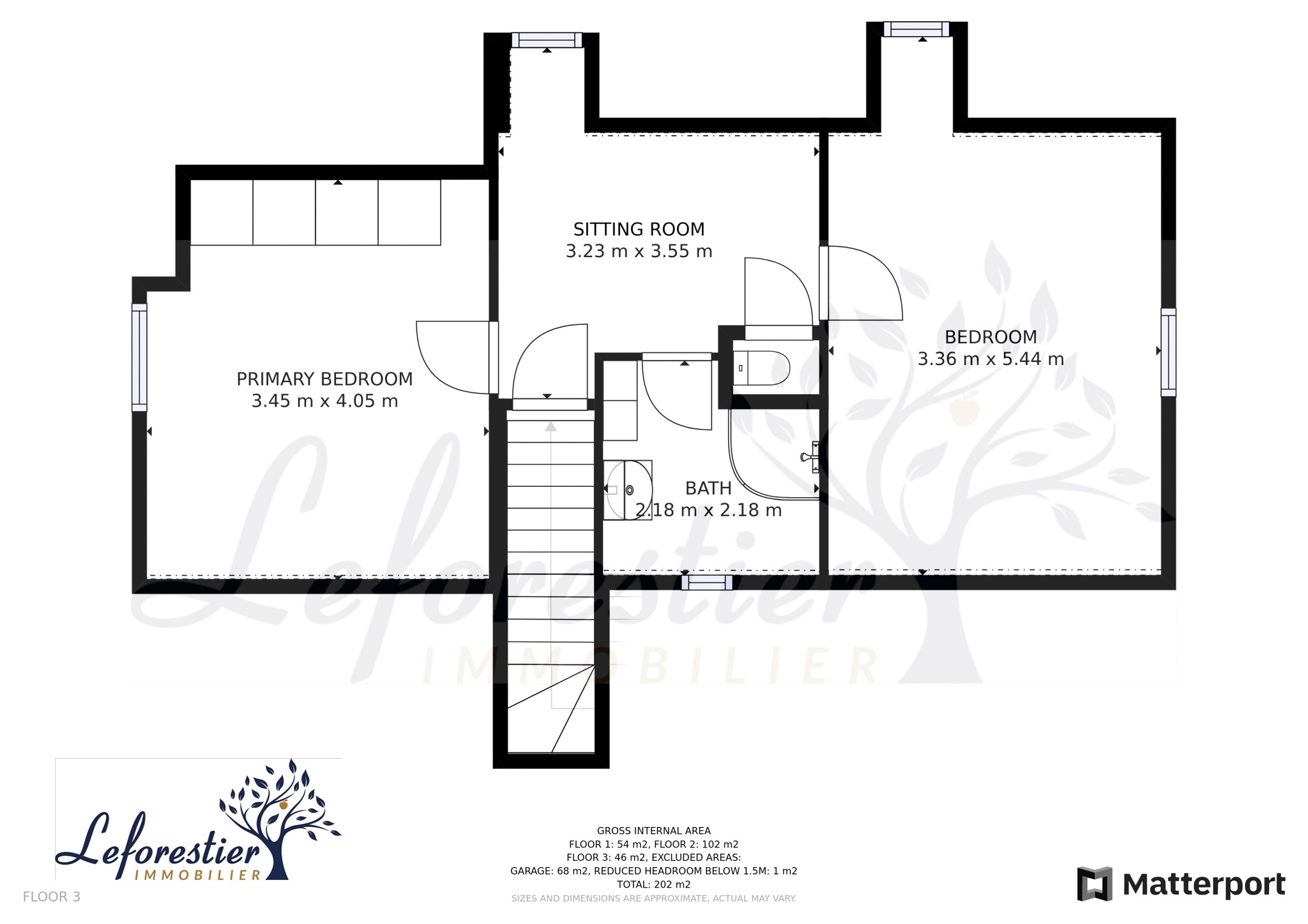 A l'étage, un palier spacieux, toilettes, salle d'eau et deux chambres dont une avec une belle vue mer !