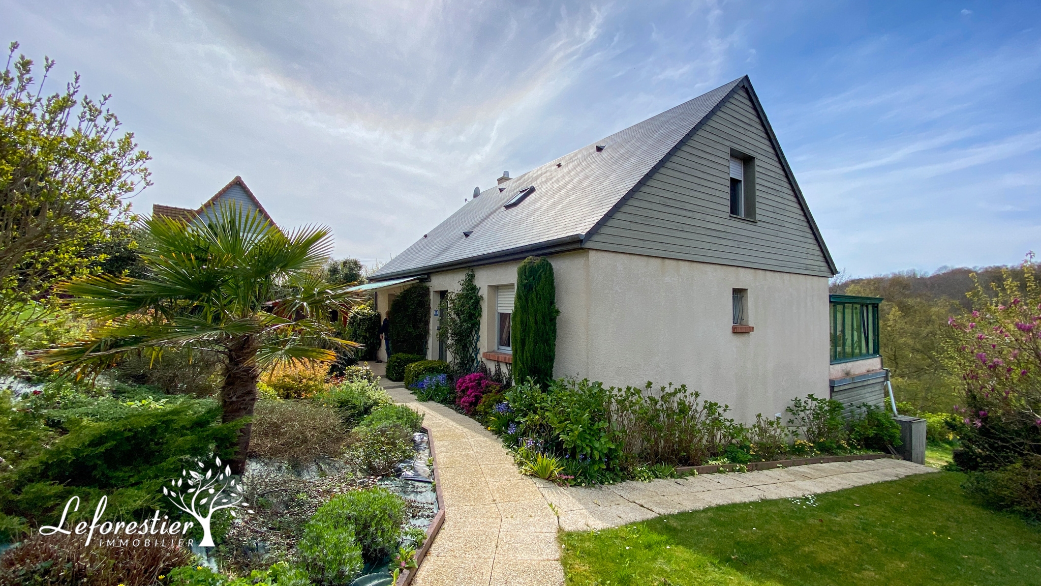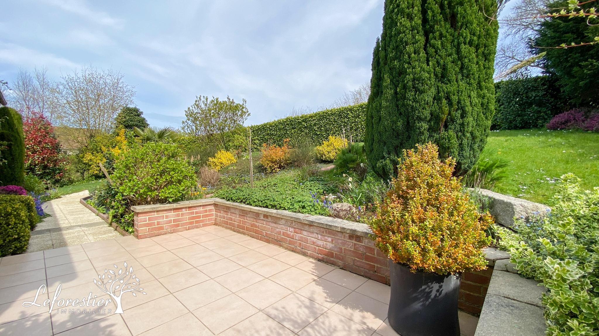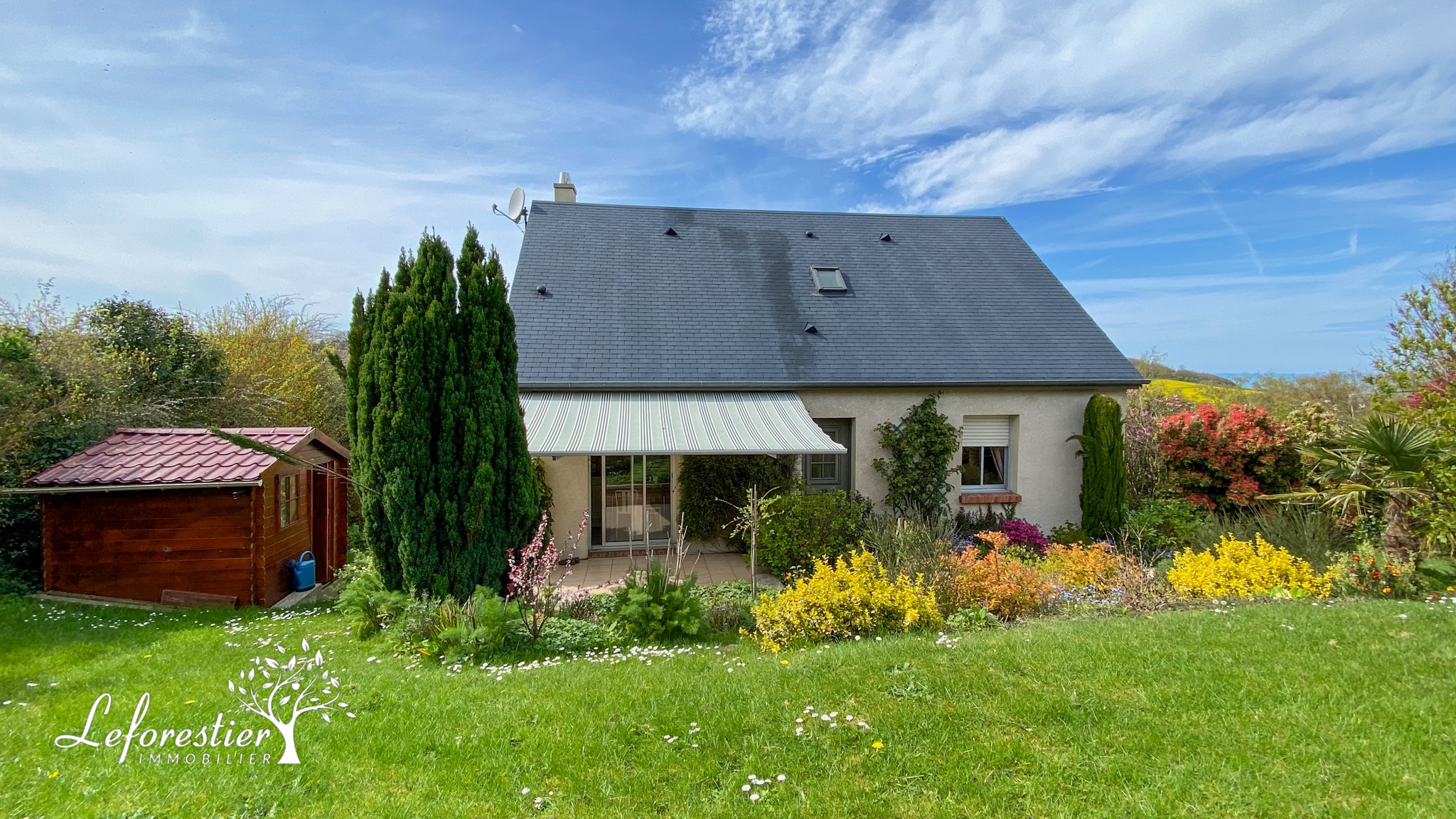 Le jardin est fleuri et soigné et sans vis à vis. Au bout de la valleuse, la vue mer est apaisante au creux de la végétation printanière.