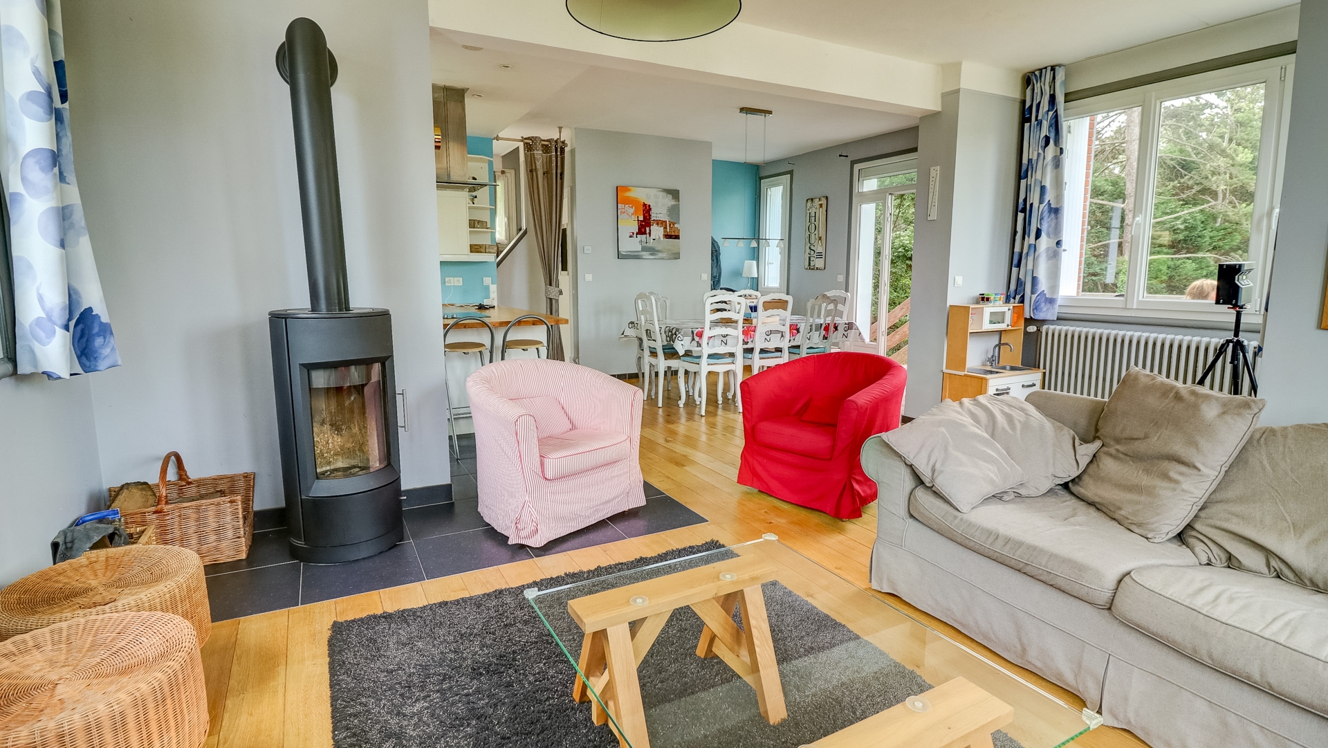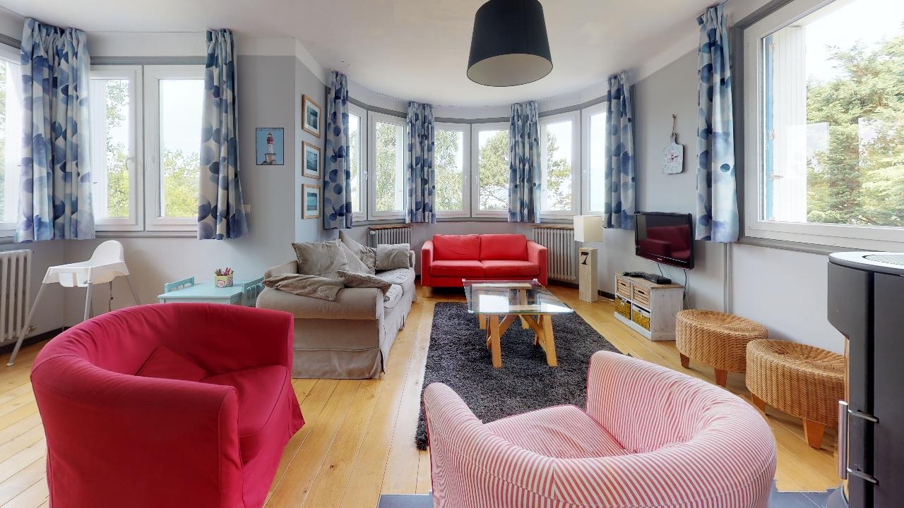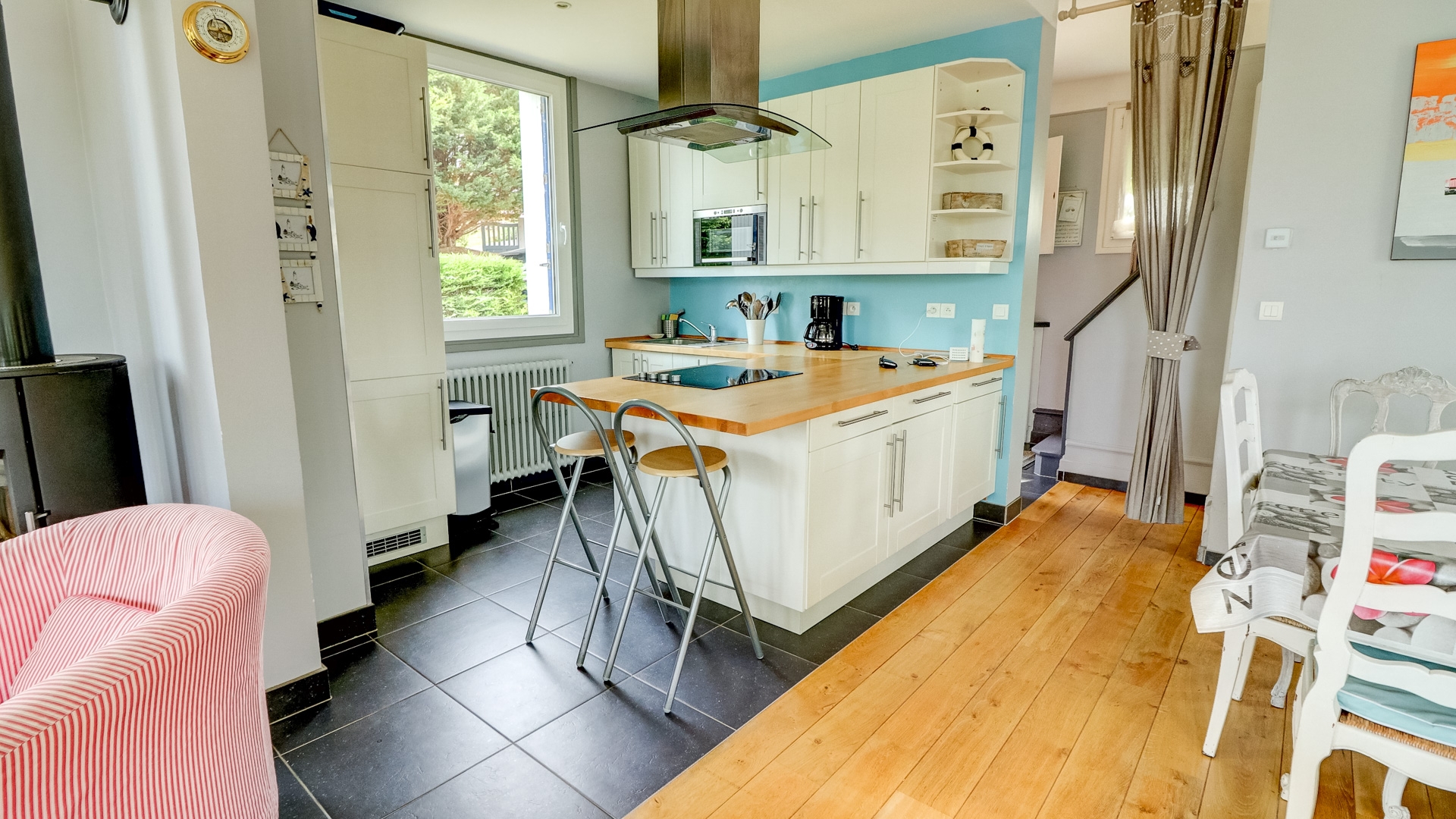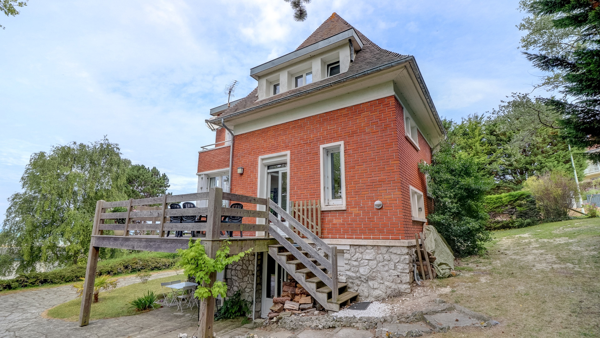 Proche de Dieppe, Mers et EU - Le Tréport, la vue panoramique par bow window est exceptionnelle. Vous pouvez aller à la plage à pied en 2min. Le rez-de-chaussée est lumineux avec sa grande pièce lumineuse et sa cuisine ouverte. La terrasse en bois à vue sur la mer. A l'étage les trois chambres ont chacune une pièce d'eau. Au rez-de -jardin vous trouverez la quatrième chambre avec la possibilité de faire une salle de bain en plus. Les équipements, le chauffage et l'assainissement, tout à été bien entretenu par ses propriétaires. Cette maison originale est très confortable à vivre !