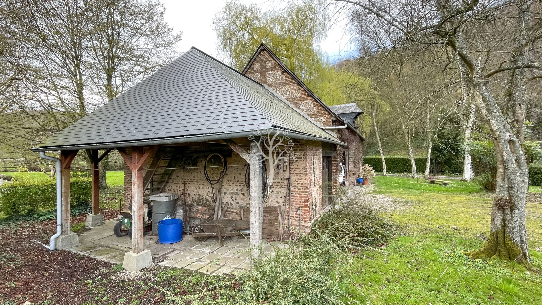 Un garage fermé, un double garage ouvert, un box et un grenier aménageable, cette dépendance construite dans le style authentique des constructions du Pays de Caux, riche et prospère région de Normandie, offre un potentiel énorme pour un amoureux de la mécanique, des arts plastiques ou musicaux sans gêner personne. Cette ancienne grange peut également devenir l’appartement particulier d’animaux domestiques.