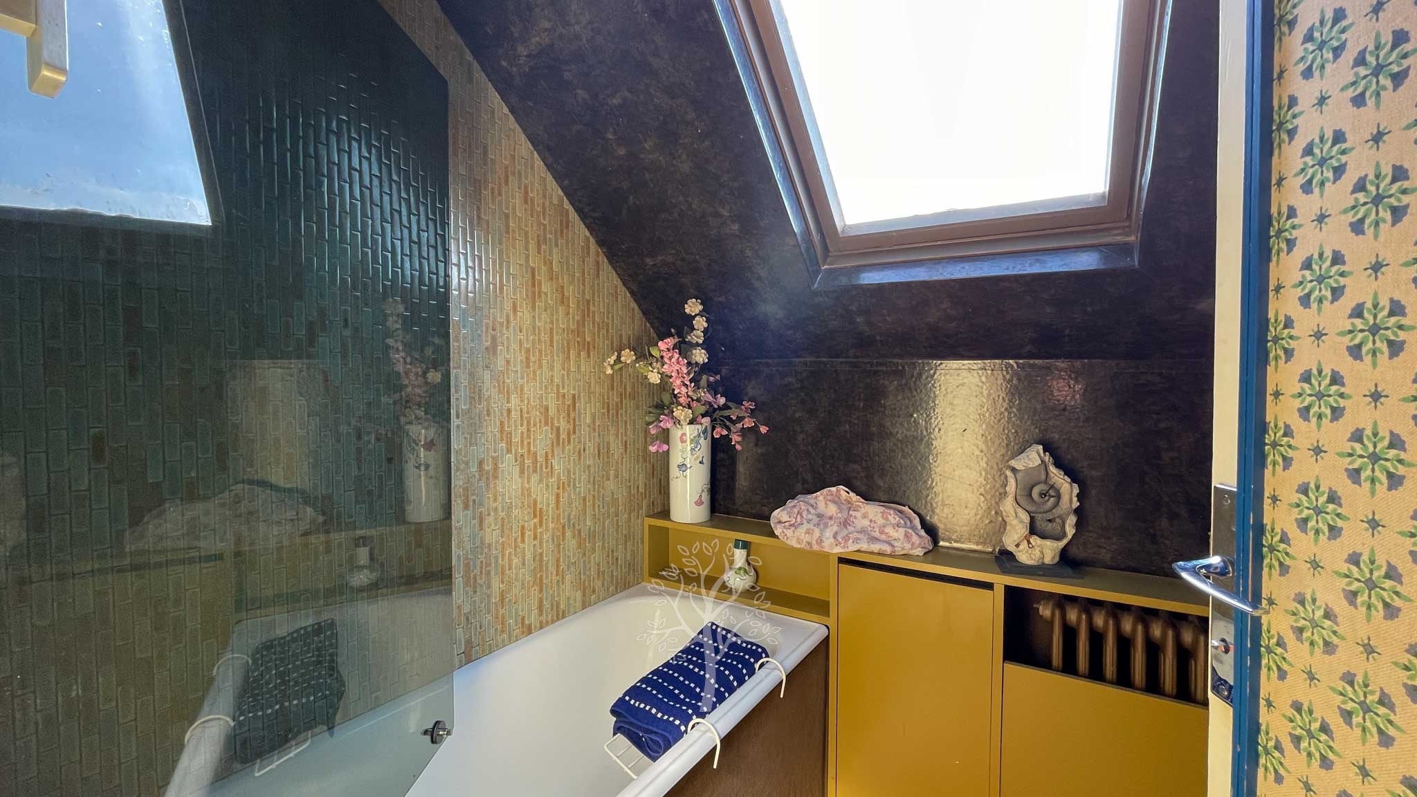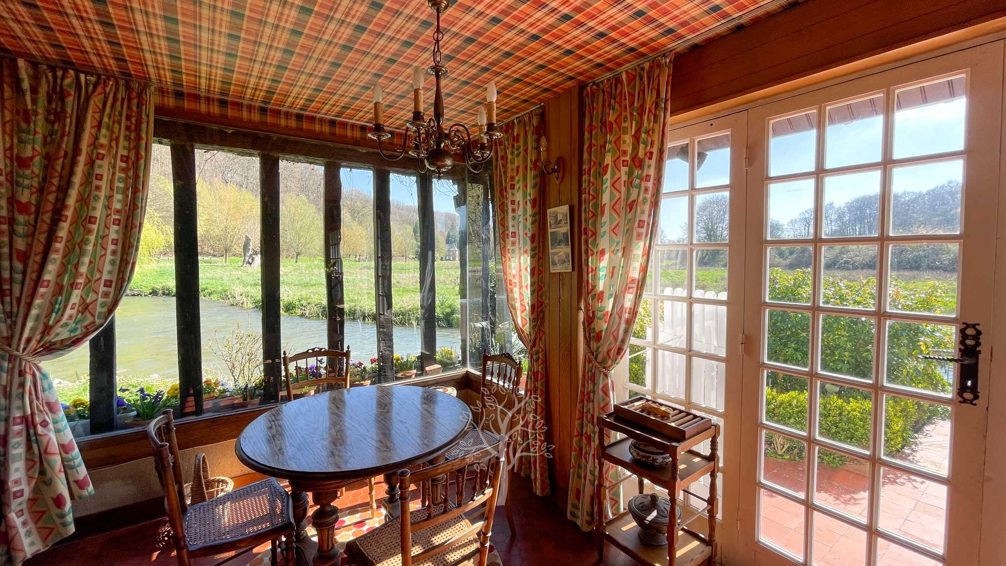 La maison, probablement du 19ème dans sa partie principale, est devenue une maison de famille. Dotée entre autres d’un salon-salle à manger et d’une pièce de musique, elle peut accueillir de nombreux convives au bord de l’eau. Rénovée dans la modernité des années 70, elle dégage un charme suranné. Le nouveau propriétaire fera son affaire de préserver ce décor quelque peu démodé ou de lui donner un style résolument contemporain. Avec 4 chambres à l’étage, une chambre de plain-pied peut aisément prendre sa place.