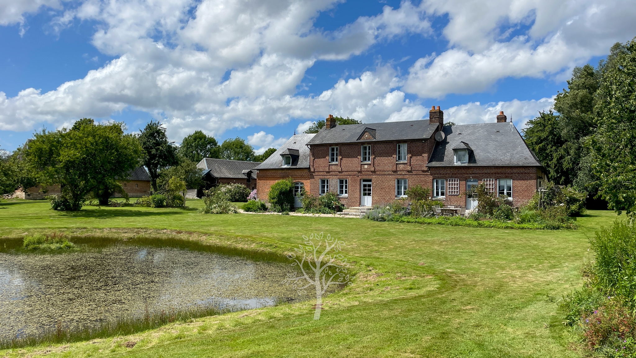 Passé le portail, l’environnement bucolique et préservé interpelle le visiteur. Les deux grandes mares participent au maintien de la biodiversité des lieux. Sur le principe du clos masure, particularité du Pays de Caux, la propriété est entourée de hauts talus plantés de Hêtres bicentenaires qui préservent des vents et maintiennent une sorte de microclimat au sein du site.