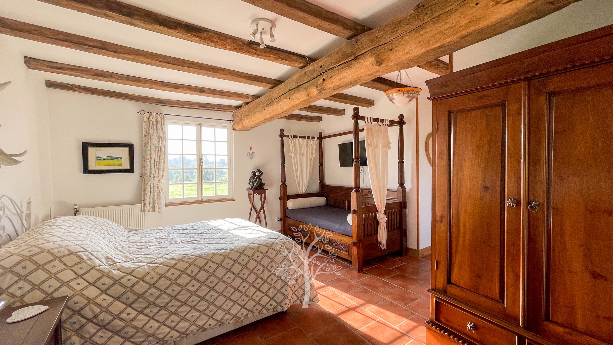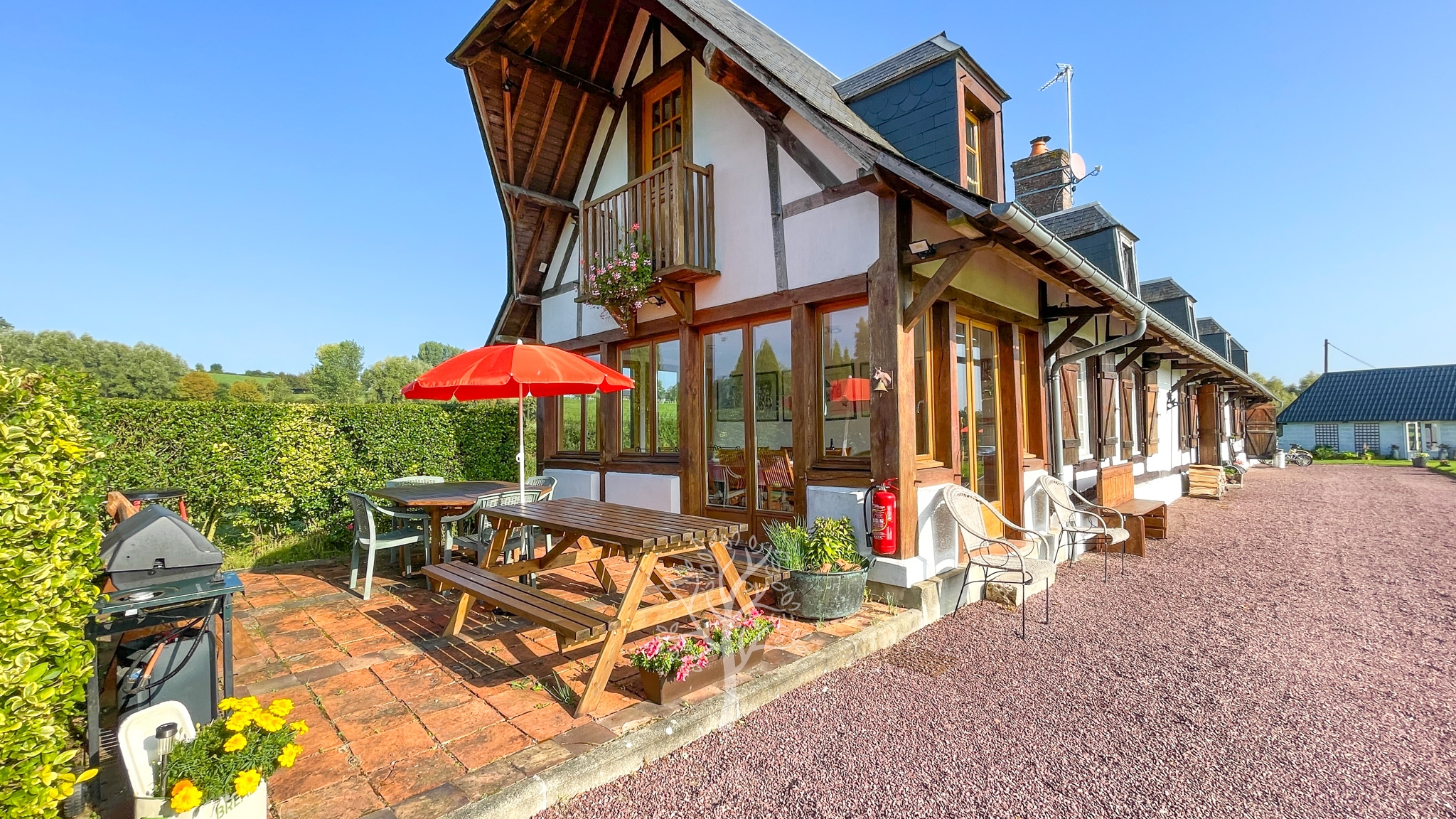 Située dans un village du Pays de Bray cette maison se fond dans un paysage tranquille du bocage normand. Elle a bénéficié d’une rénovation de grande qualité et son confort actuel n’a nullement altéré son charme. Ses murs à pans de bois et sa toiture en ardoises naturelle sont typiques de cette campagne autour de Neufchâtel-En-Bray, Saint-Saëns et Forges-Les-Eaux. L’isolation thermique de la maison et l’installation d'un chauffage central au gaz et d’un poêle à bois Clearview procurent un chauffage facile au coût maitrisé.