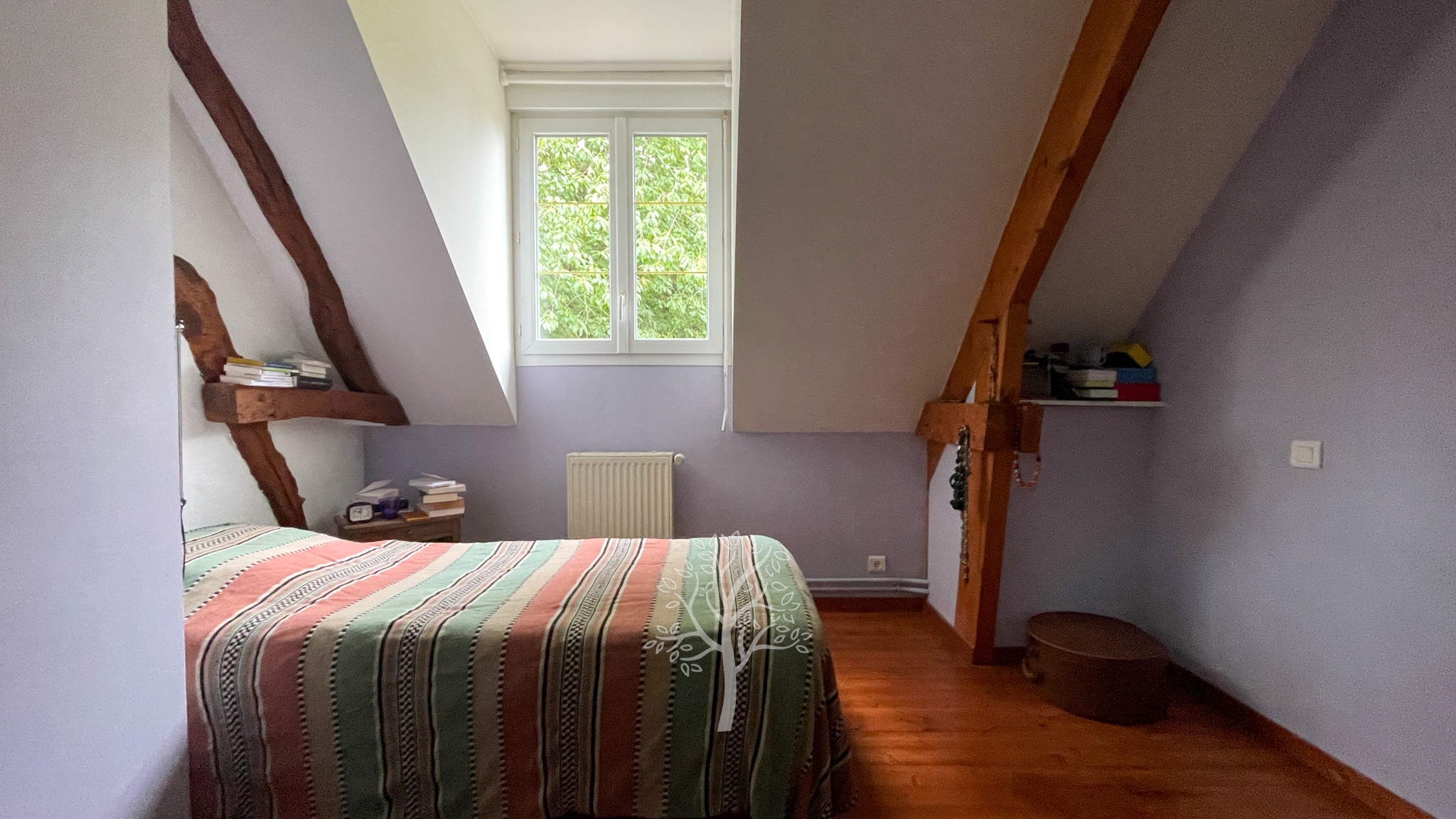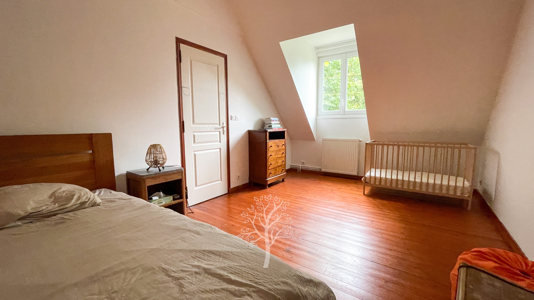 Sur deux niveaux, cette maison de campagne à la ville est parfaite pour accueillir une grande famille avec ses 4 chambres mansardées et ses 2 salles de bains.