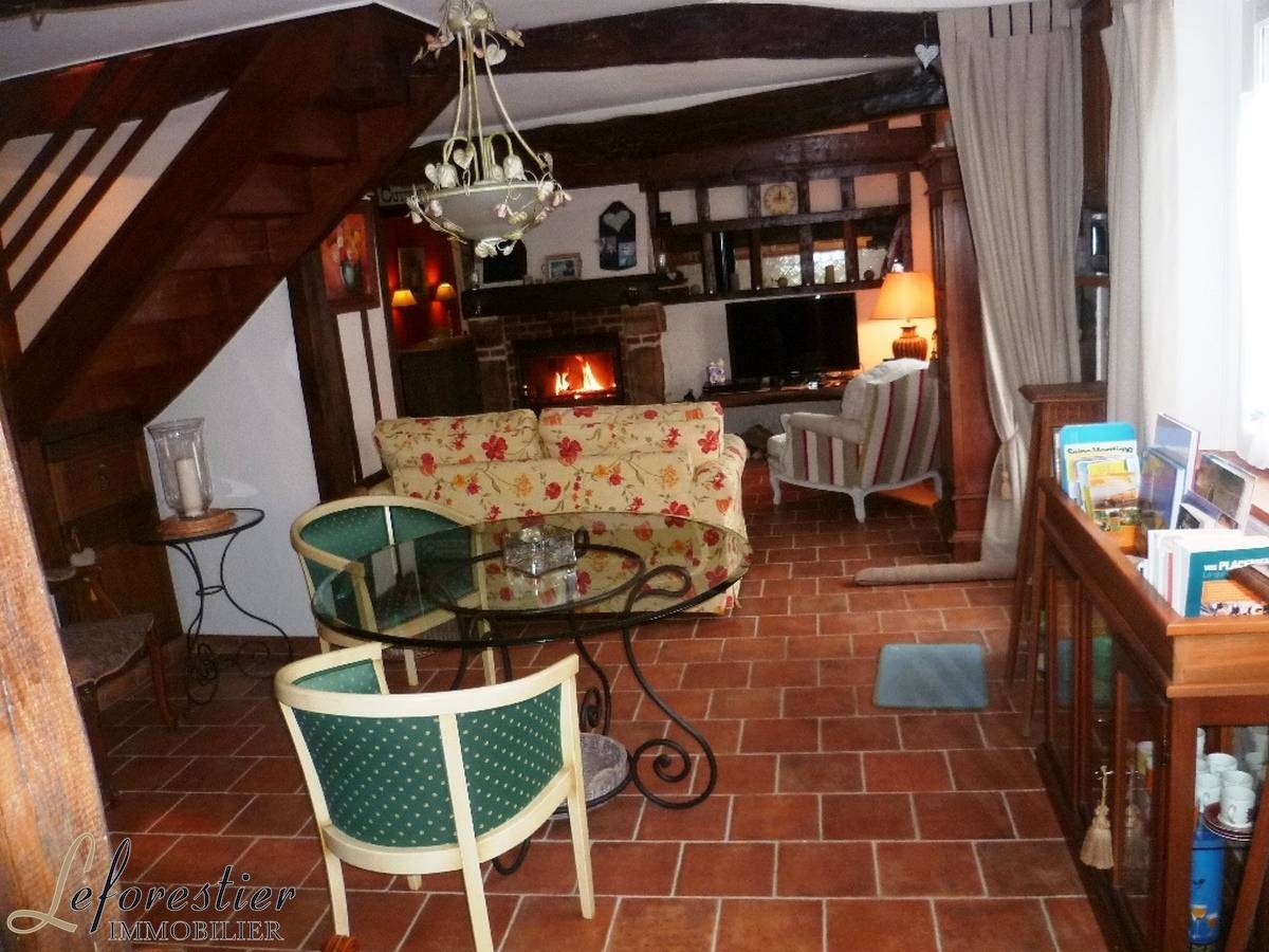 Cette maison normande à vendre, mise en beauté par son jardin magnifiquement arboré, semble bien destinée à devenir une maison de famille en villégiature. En résidence secondaire, les lieux sont propices pour se reposer et se détendre. Le salon séjour est spacieux pour recevoir autour de la jolie cheminée insert. La cuisine est charmante et bien équipée. Le petit déjeuner s’y prend en famille. Une chambre et une salle de bains de plain-pied sont parfaites pour les parents. Les enfants trouveront un domaine adapté à leur besoin dans les trois chambres de l’étage. Les dépendances attenantes conservent à cette petite propriété normande un potentiel d’extension intéressant, notamment dans la salle de jeux et la véranda.