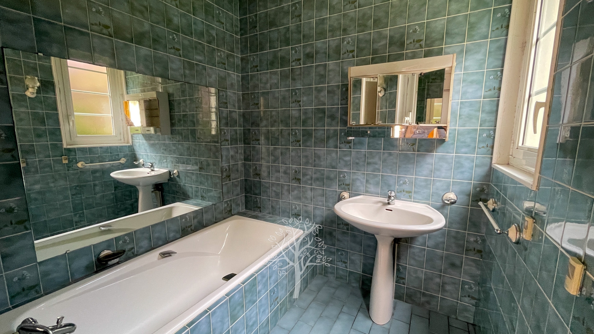 Cette maison est une solide construction datant des années 1950. Avec deux chambres au rez-de-chaussée, un salon avec cheminée et de nombreuses ouvertures qui laissent entrer la lumière et le soleil tout au long de la journée, le potentiel est grand. La vue mer est aujourd’hui masquée par la végétation mais l’on pourrait aisément la retrouver après un travail d’élagage.