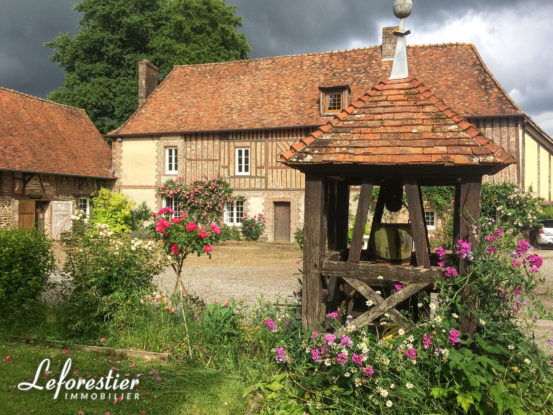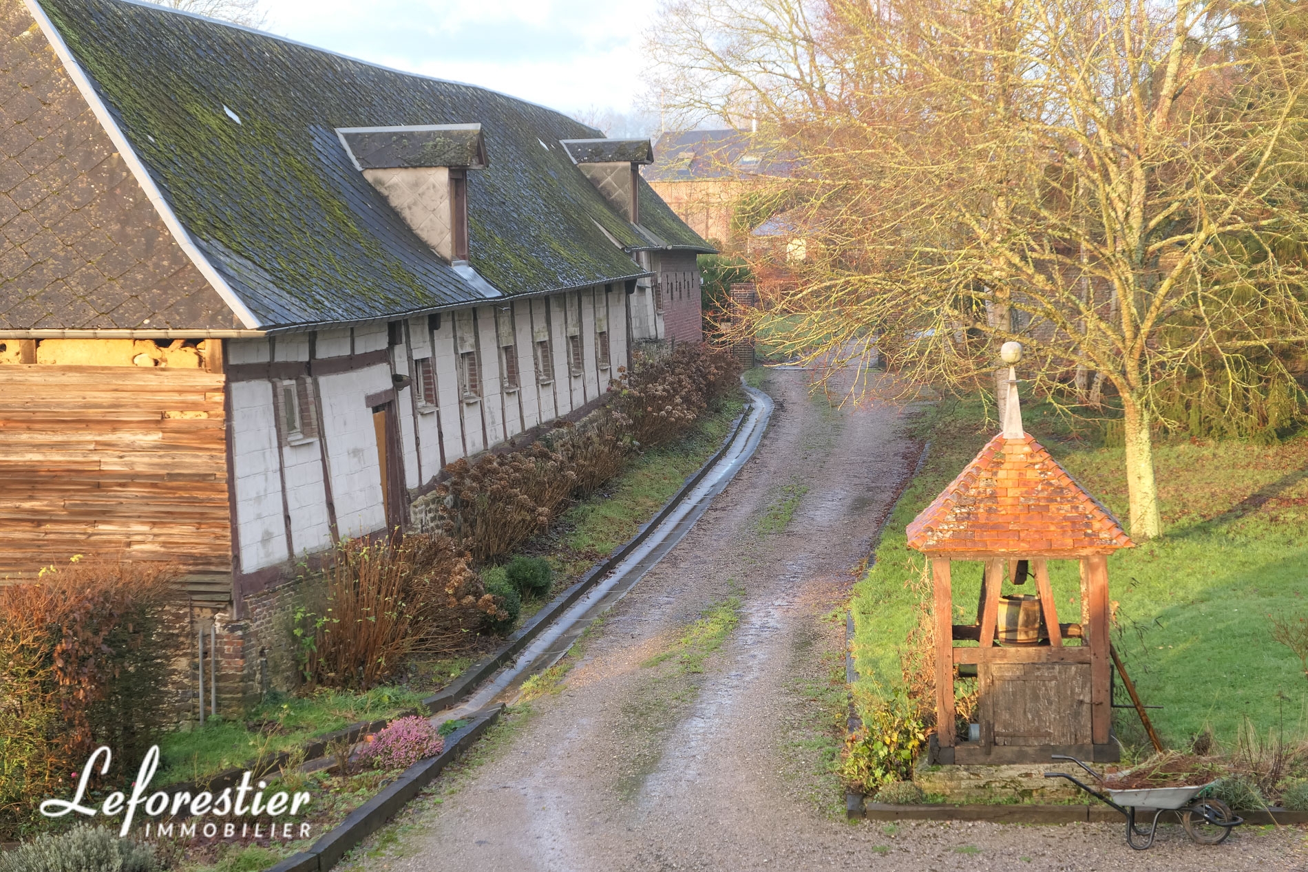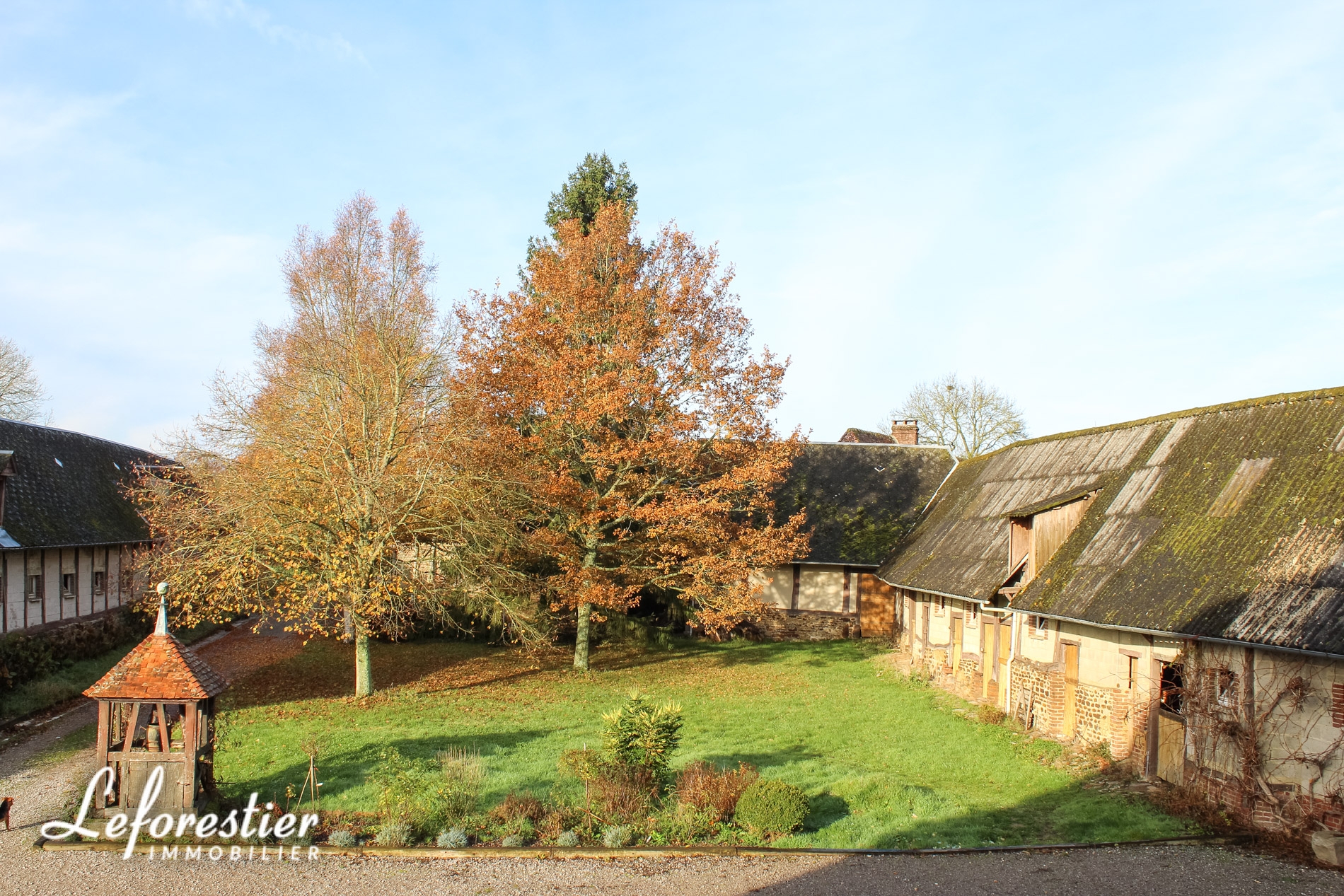 Au bout d’une petite route traversant les champs de la campagne Normande, le portail de cette propriété apparait. On entre alors dans ce lieu à l’abri du monde extérieur. La charreterie, la cidrerie, l’écurie et l’étable forment le corps de ferme autour de la bâtisse principale.