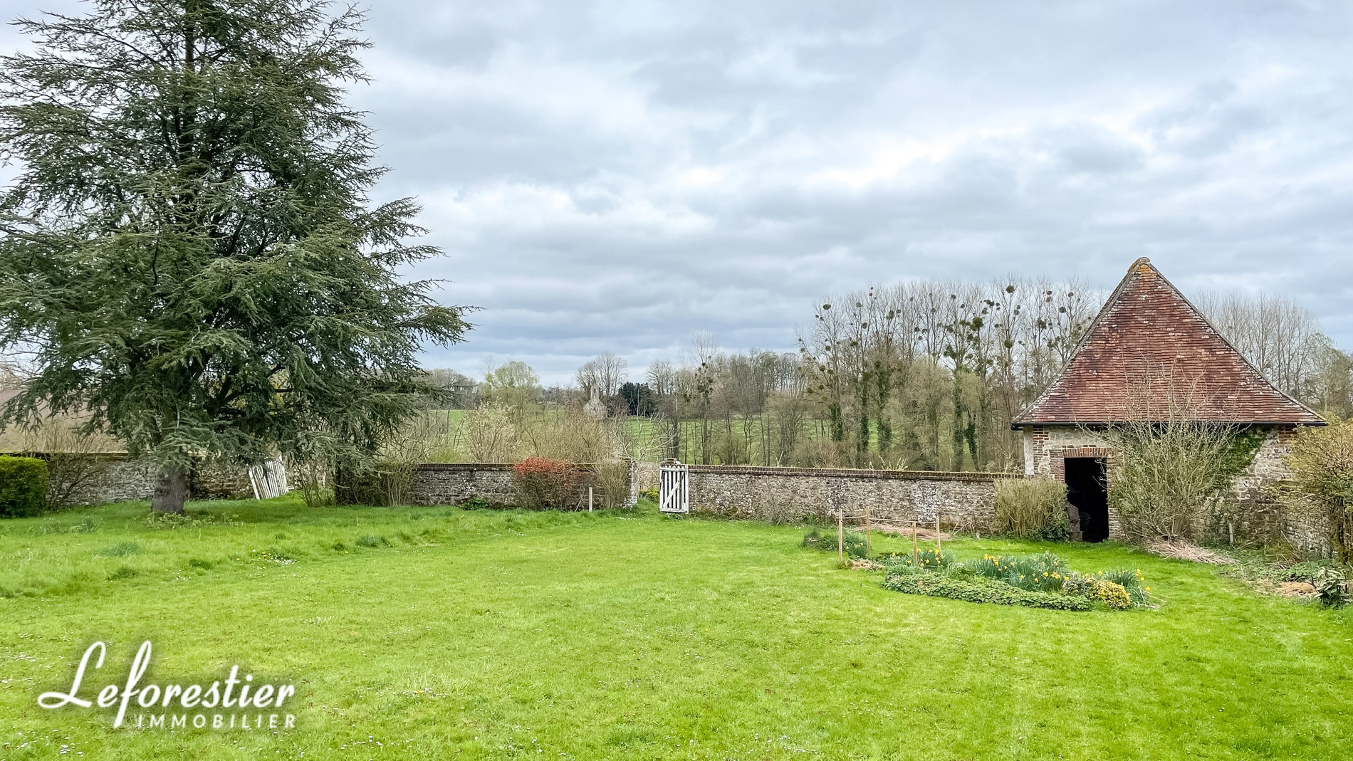 De l’autre côté, le jardin est clos d’un beau muret en pierre. Au-delà, le portillon mène au potager. La vue sur la campagne est préservée. Seul voisinage à l’horizon, la petite chapelle du village. Le cadre est tout à fait privilégié !