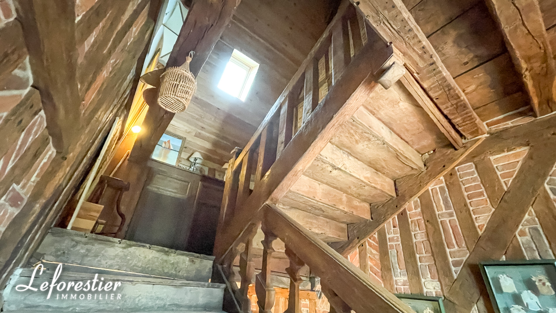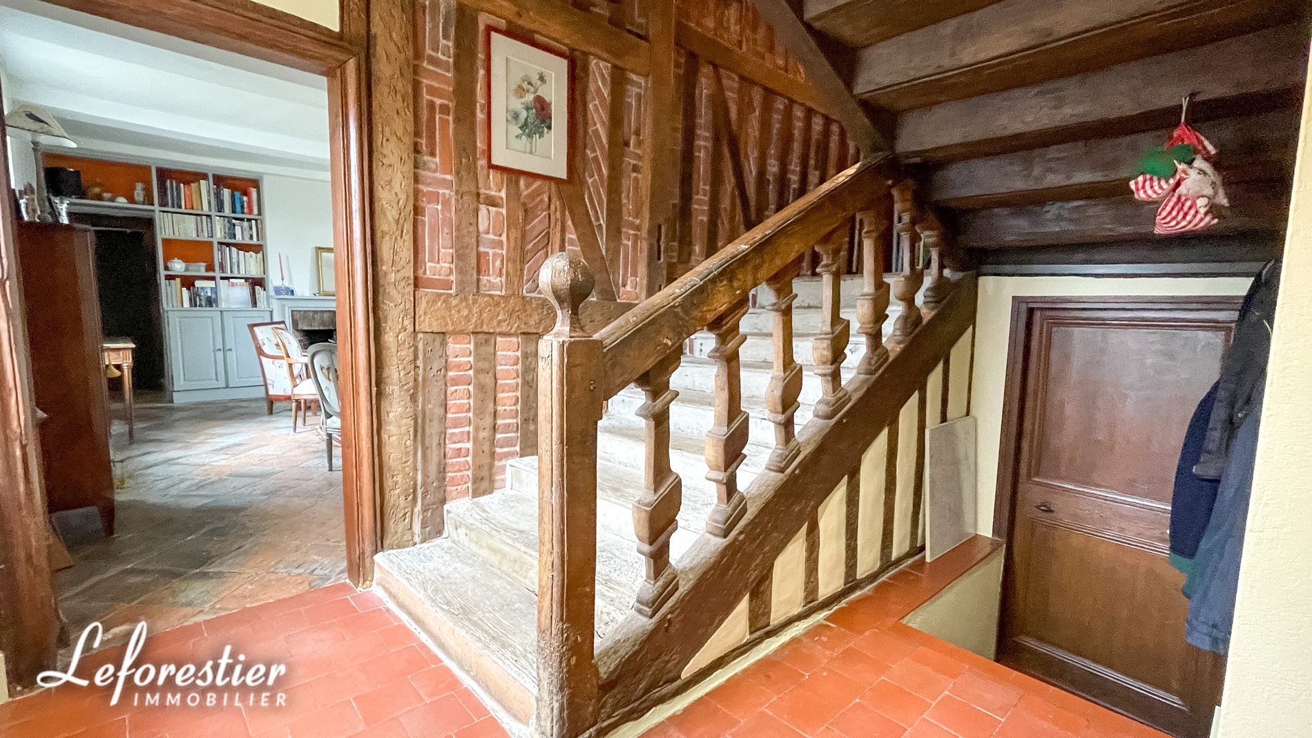 On entre dans cette demeure par la partie la plus ancienne datant environ de 1650. Immédiatement on remarque le magnifique escalier style Louis XIII (Escalier en chêne à balustres chantournés).