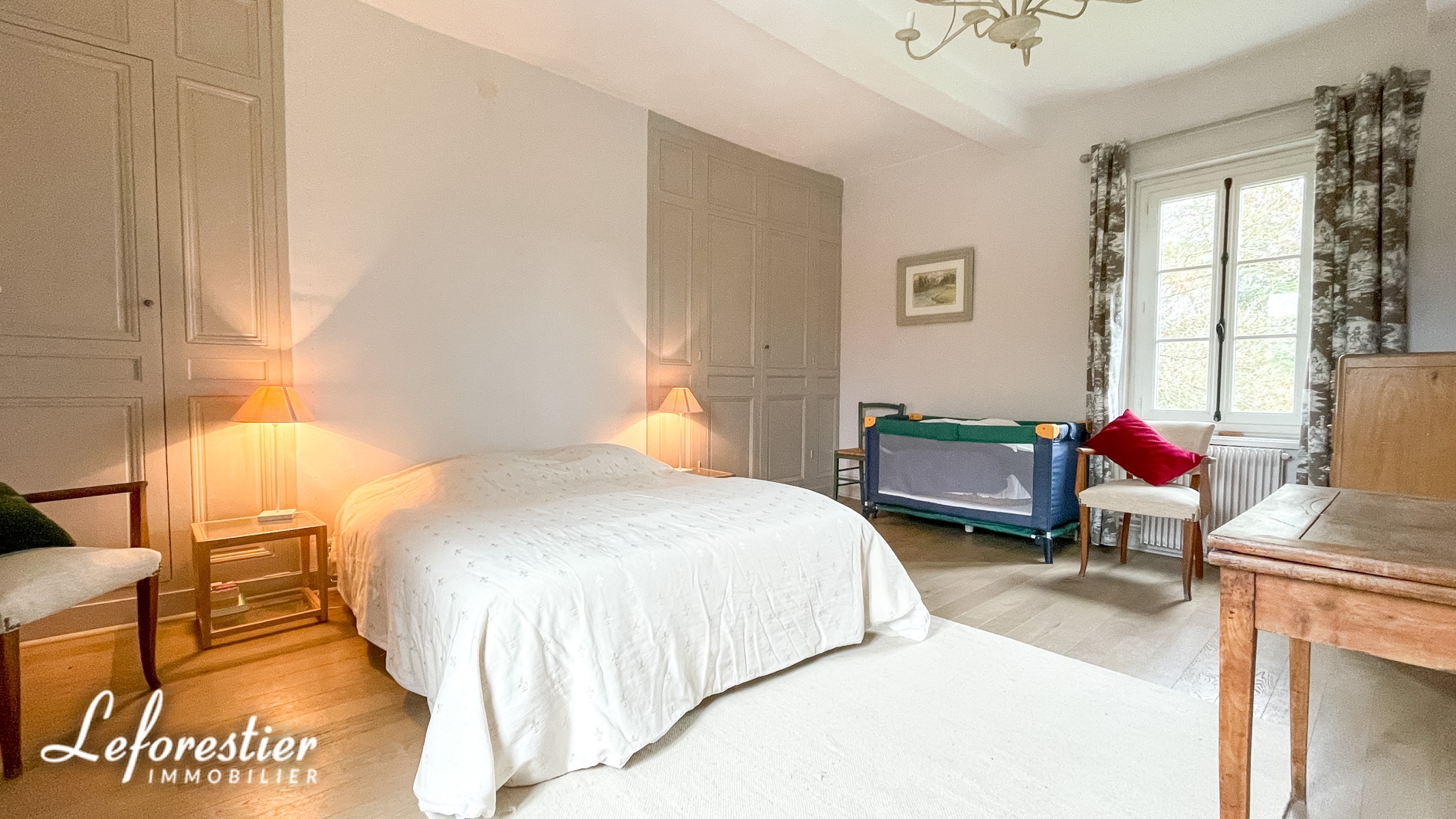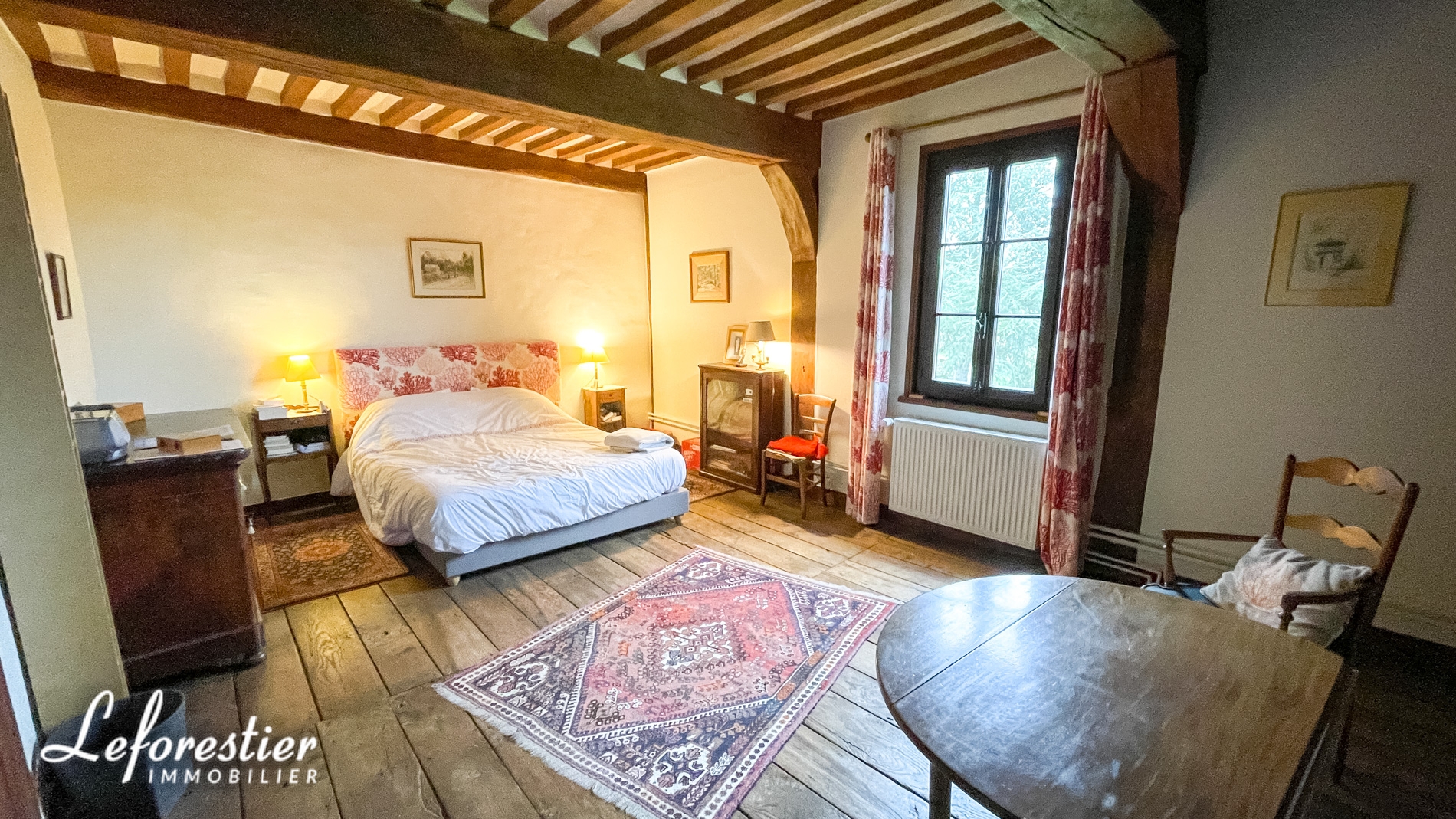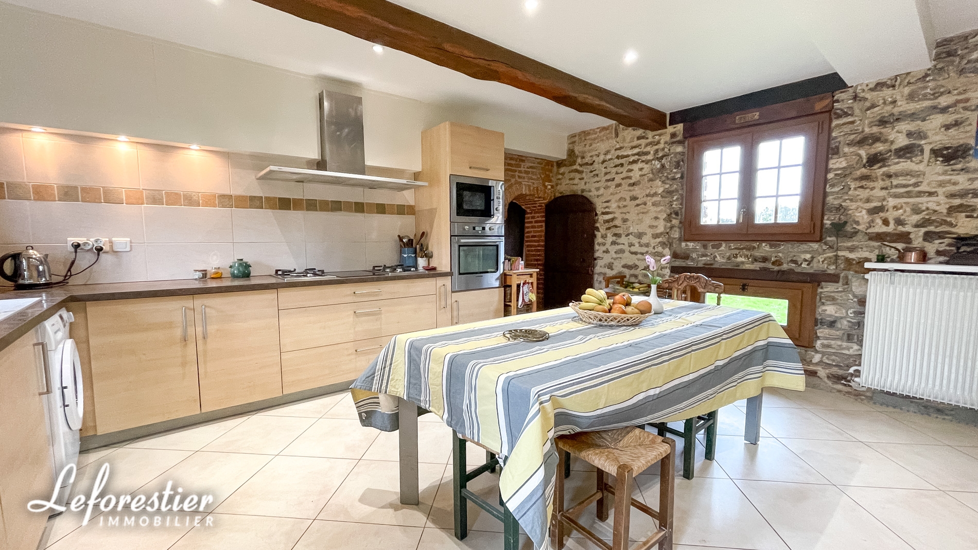 Au rez-de-chaussée on trouve un salon, pièce de vie agréable avec ses jolis carreaux de fossé, le bureau peut être utilisé tel quel ou transformé en chambre ou agrandi pour en faire une salle de réception. De l’autre côté la cuisine et la salle à manger permettent d’accueillir famille et convives. Toutes ces pièces ont été restaurées (électricité, plomberie, isolation…) pour que la vie y soit agréable et confortable. Dans les étages, les chambres sont spacieuses et permettent de loger une grande famille.
