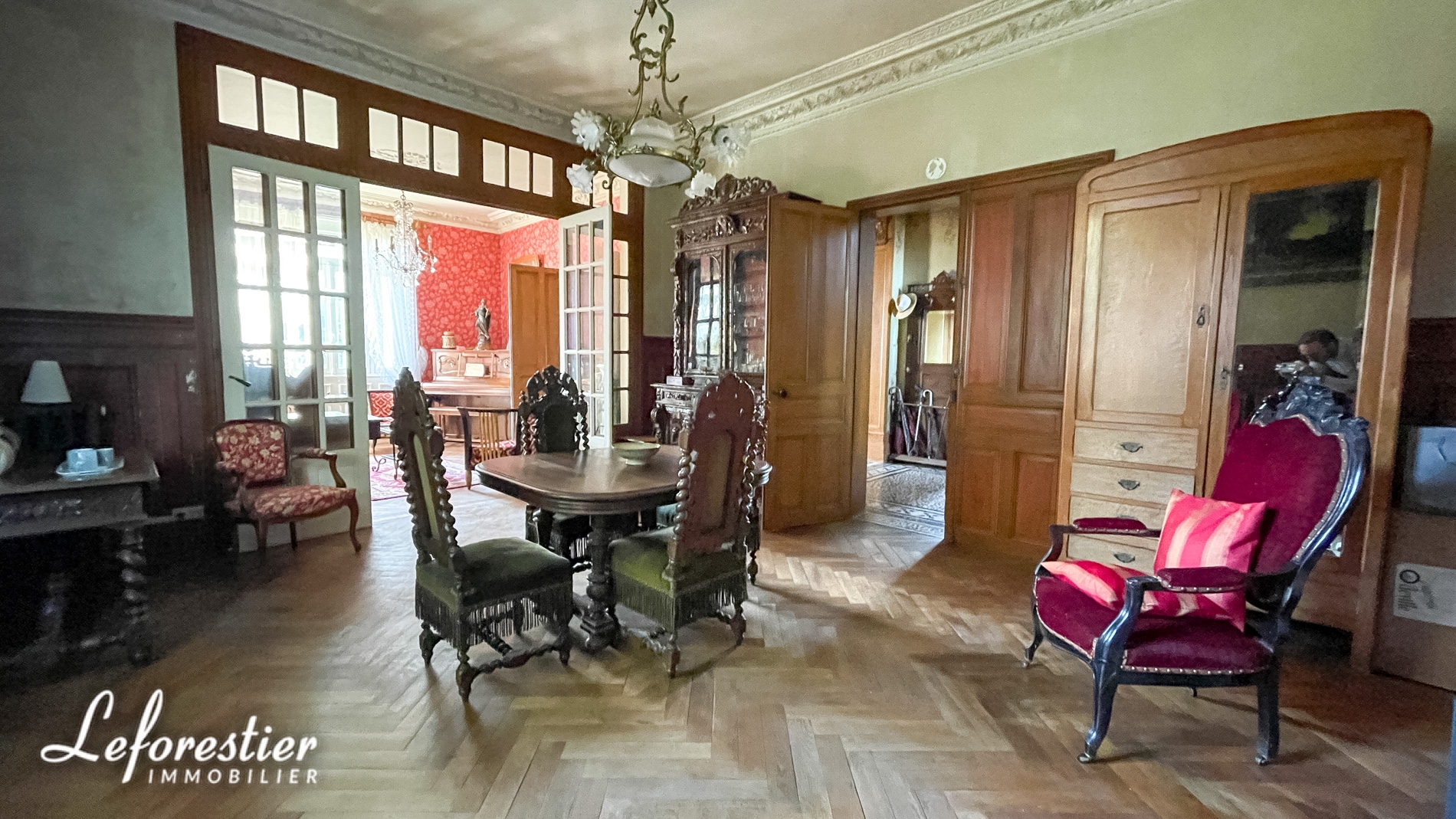 Depuis l’origine de sa construction, la famille a su préserver l’authenticité des matériaux d’époque : les sols et boiseries du rez-de-chaussée, les parquets et cheminées des étages, le majestueux escalier qui vous emmène jusqu’au second… Le potentiel reste intact sur les trois niveaux. Même le sous-sol complet peut aisément devenir des pièces ludiques : bibliothèque, auditorium, vidéothèque, salle de billard, atelier d’artiste… L’état structurel du bien est excellent : toiture, chauffage, assainissement. Le nouveau propriétaire n’aura qu’à y insérer sa touche personnelle pour allier le charme de l’ancien avec le confort de notre époque contemporaine.