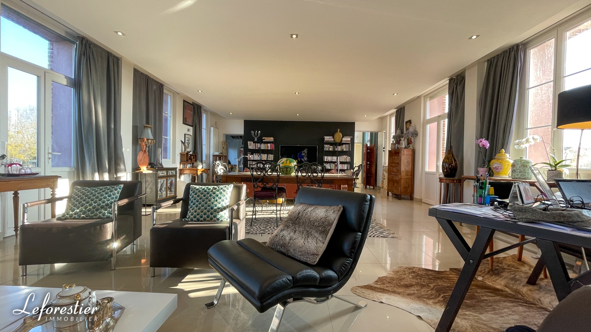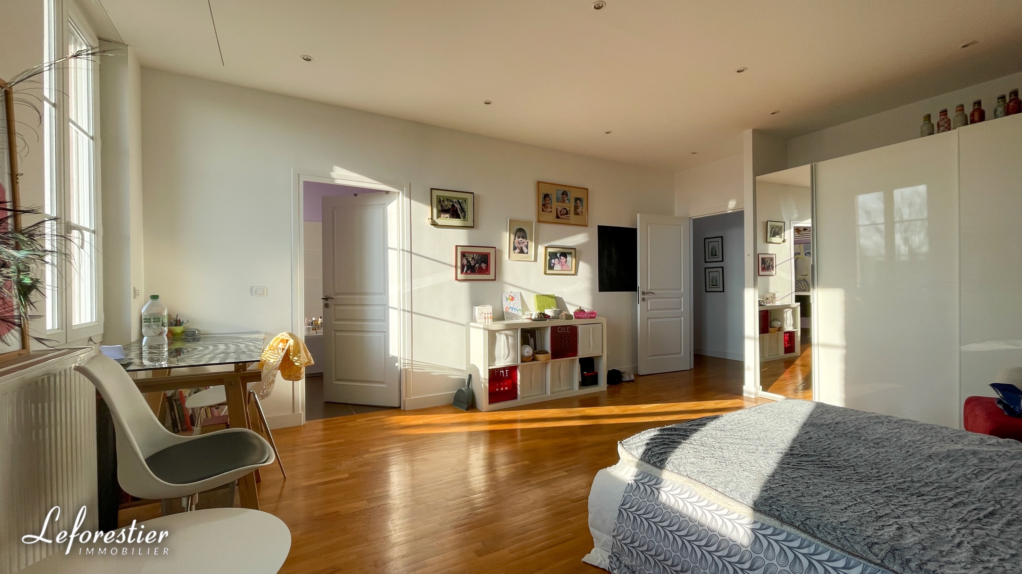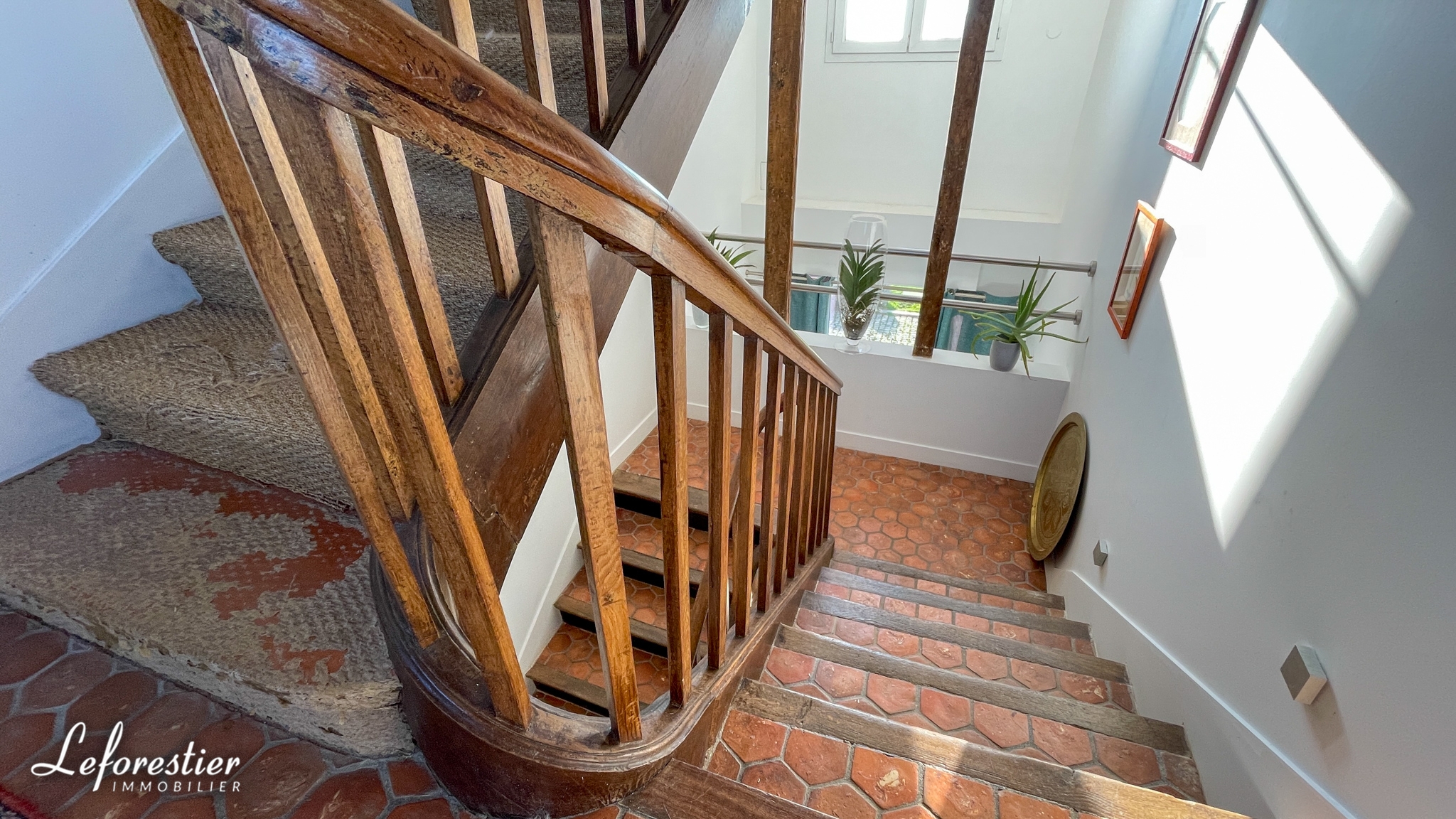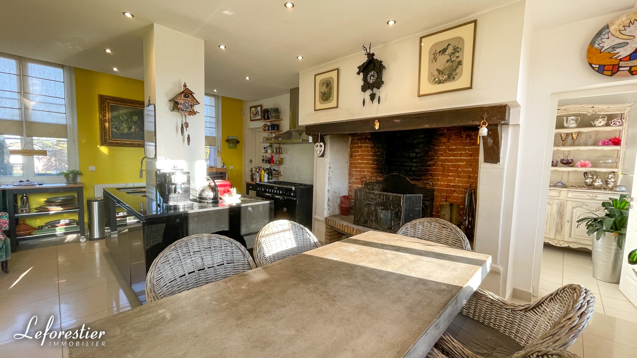 De nombreux travaux ont été entrepris dans cette grande maison de famille. Le confort y est optimal. Le très bon classement du DPE pour une maison ancienne en témoigne. Les pièces de vie que sont la cuisine et le séjour/salon offrent de larges volumes avec des ouvertures laissant entrer la lumière.