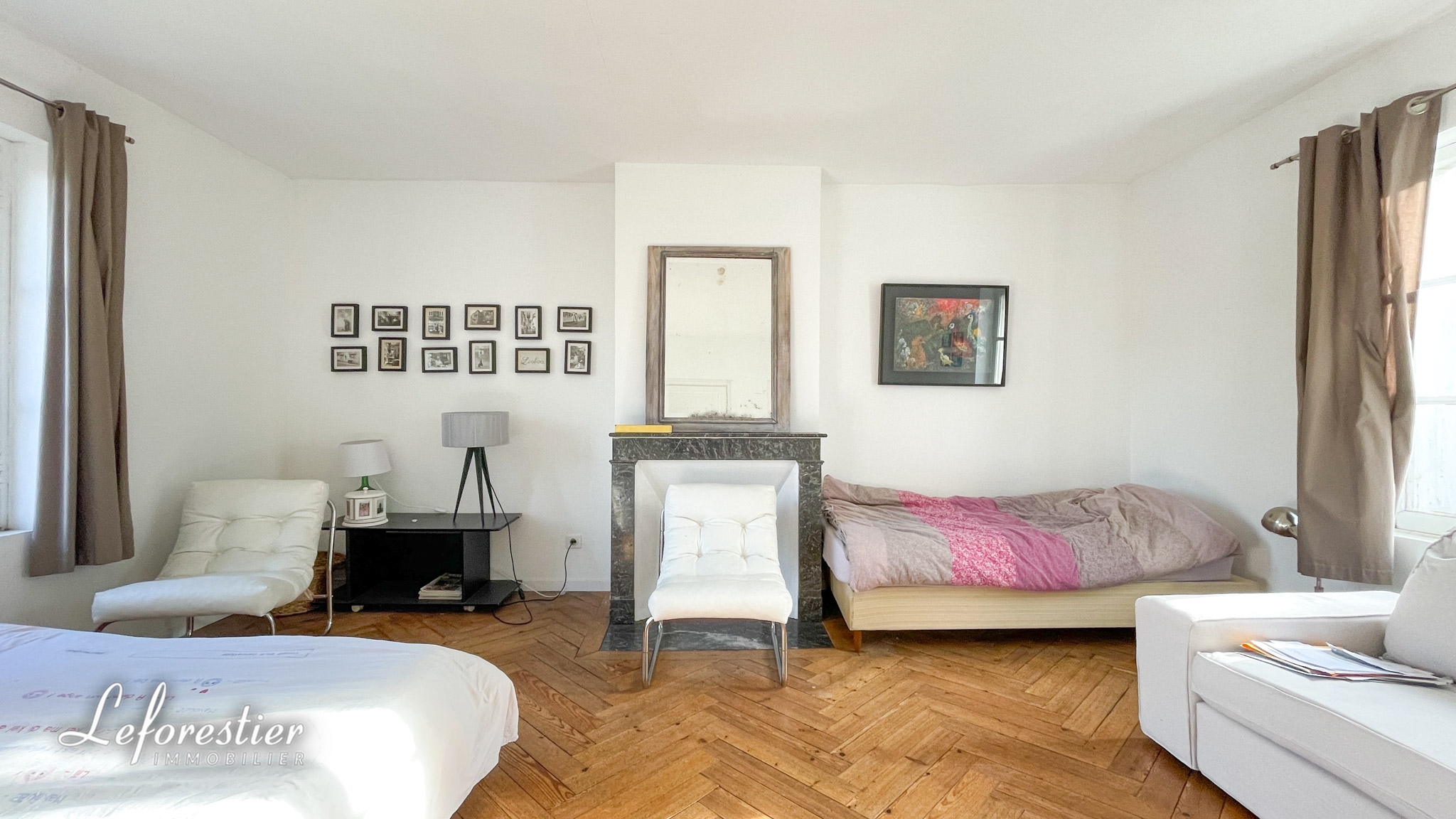 A l’étage, un palier-couloir distribue quatre chambres, une salle de douche et une salle de bain. Sous les combles, avec quelques travaux, la chambre d’amis du vaste grenier pourrait aisément être complétée par une salle de bain et d’autres pièces à vivre, atelier d’artiste, bibliothèque ou vidéothèque.