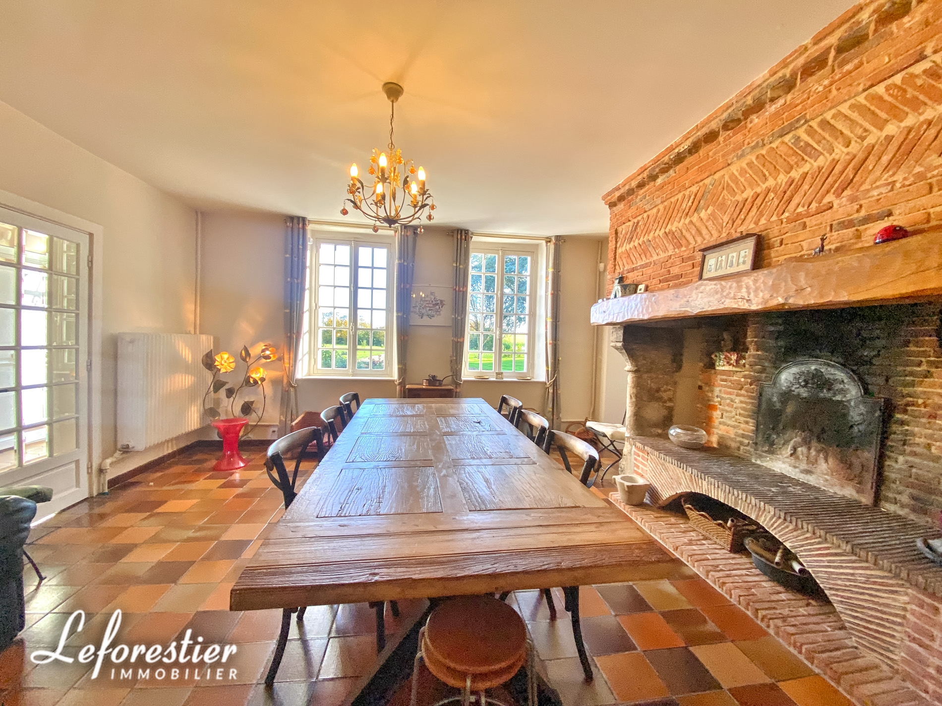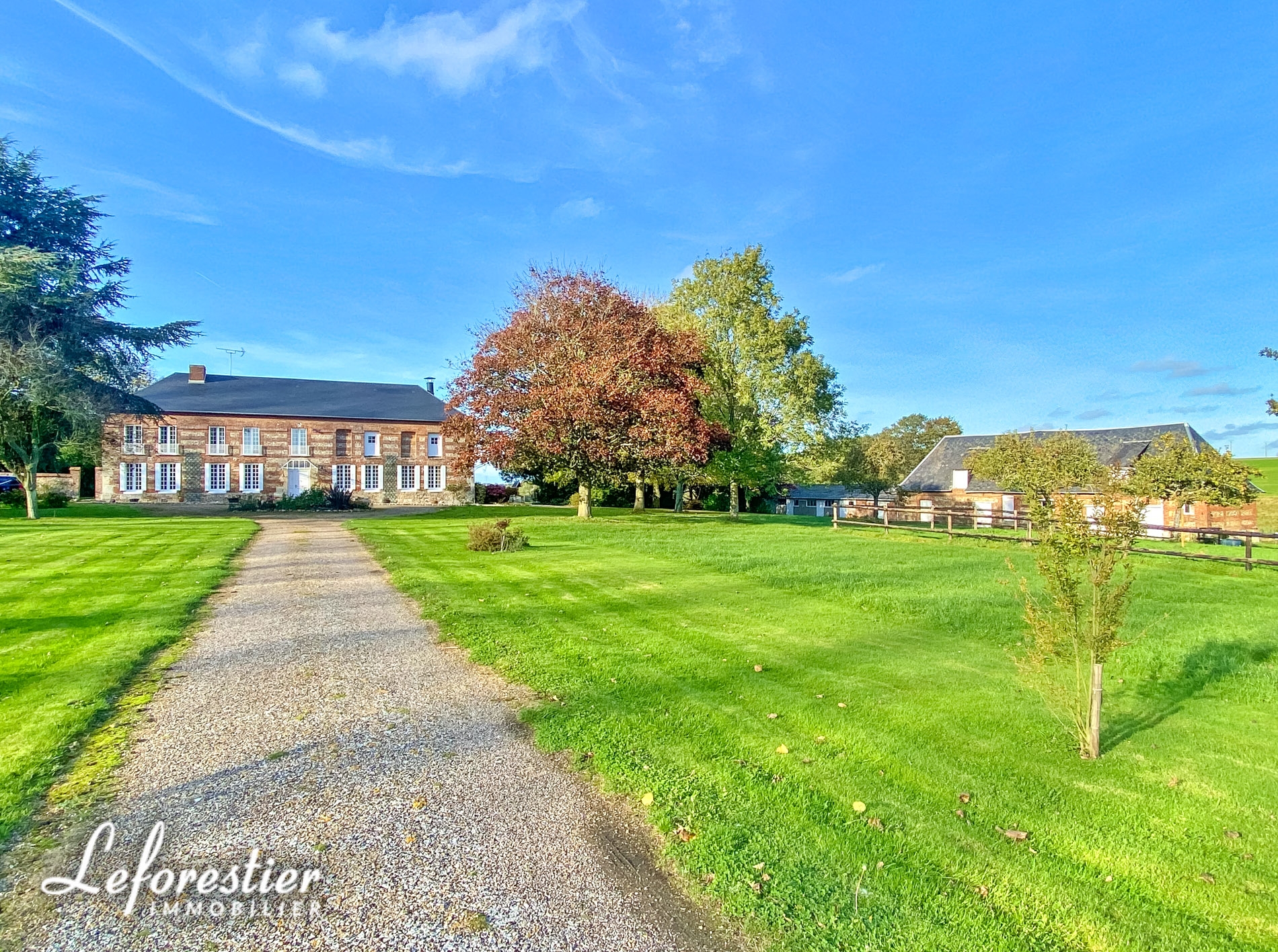 La bâtisse principale a été entièrement repensée, une grande entrée vous accueille avec l’escalier menant aux étages. De part et d’autre se trouve un grand salon et sa magnifique cheminée, idéal pour passer des soirées d’hiver au coin du feu ou pour recevoir de nombreux amis. A L’opposé, la grande salle à manger où trône aussi une très belle cheminée typique des constructions cauchoises avec ces assemblages de briques. Une cuisine aménagée et fonctionnelle, contigüe à l’espace repas s’ouvre sur une adorable véranda où l’on prend les petits déjeuners avec une vue sur les vallons et les bois qui se jettent dans la mer. Le rez-de-chaussée se termine par une suite parentale, ce qui est des plus agréables à ce niveau.