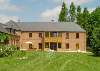 A l’est de Rouen, notre propriété se découvre par un long chemin qui longeait autrefois la ligne du tortillard. En avançant, à travers les arbres, la haute et grande maison de caractère apparait. Pendant plus de vingt ans, elle accueillait confortablement en chambres et tables d’hôtes de nombreux amateurs de calme et de nature. L’endroit inspire le ressourcement par le caractère apaisant de la végétation, de la pièce d’eau ou croassent quelques amphibiens, des rives de la petite rivière, l’Andelle, qui finit son périple dans la Seine.