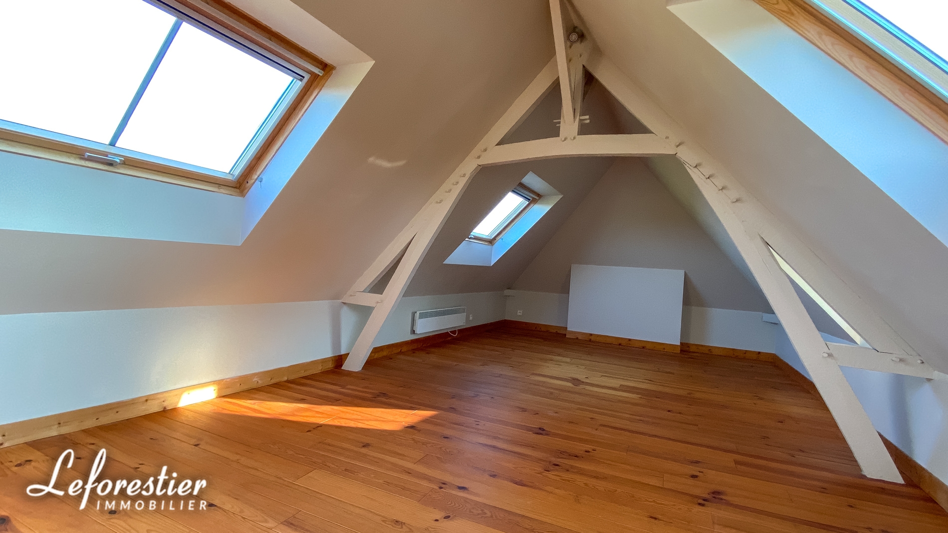 L’escalier mène au palier vers une grande et belle salle de bain lumineuse ainsi que deux chambres avec vue sur l’Abbaye de Jumièges. Au second étage, les combles aménagées offrent la possibilité d’une 3ème grande chambre ou d’une salle de jeu pour le plus grand plaisir des enfants.