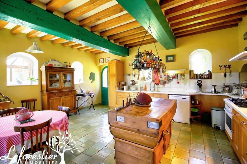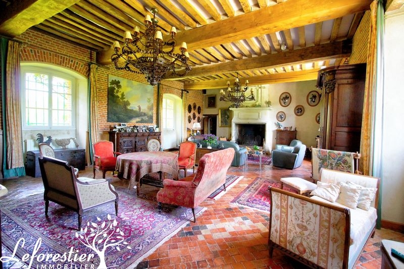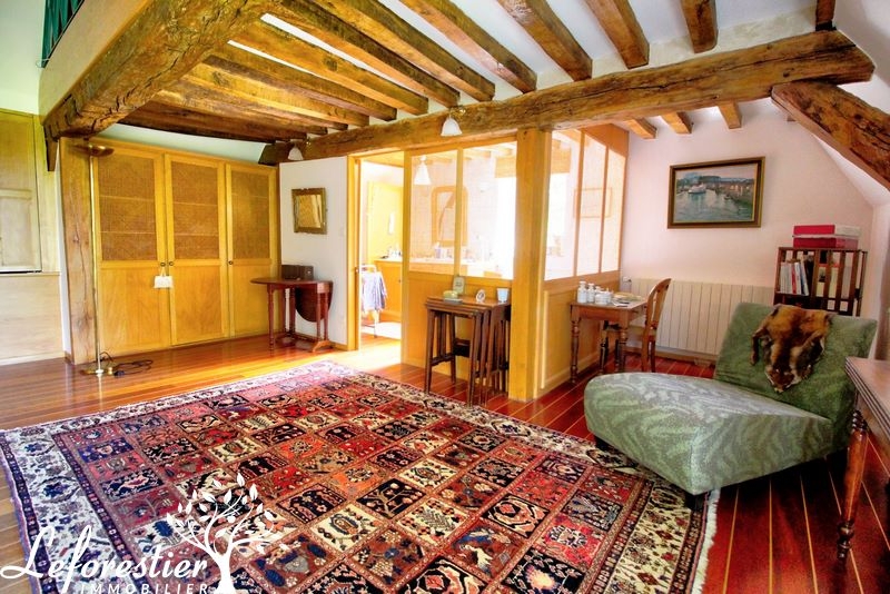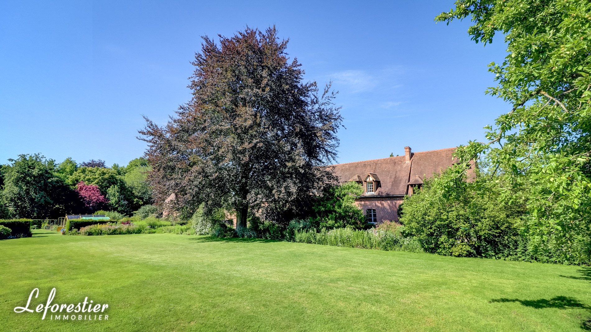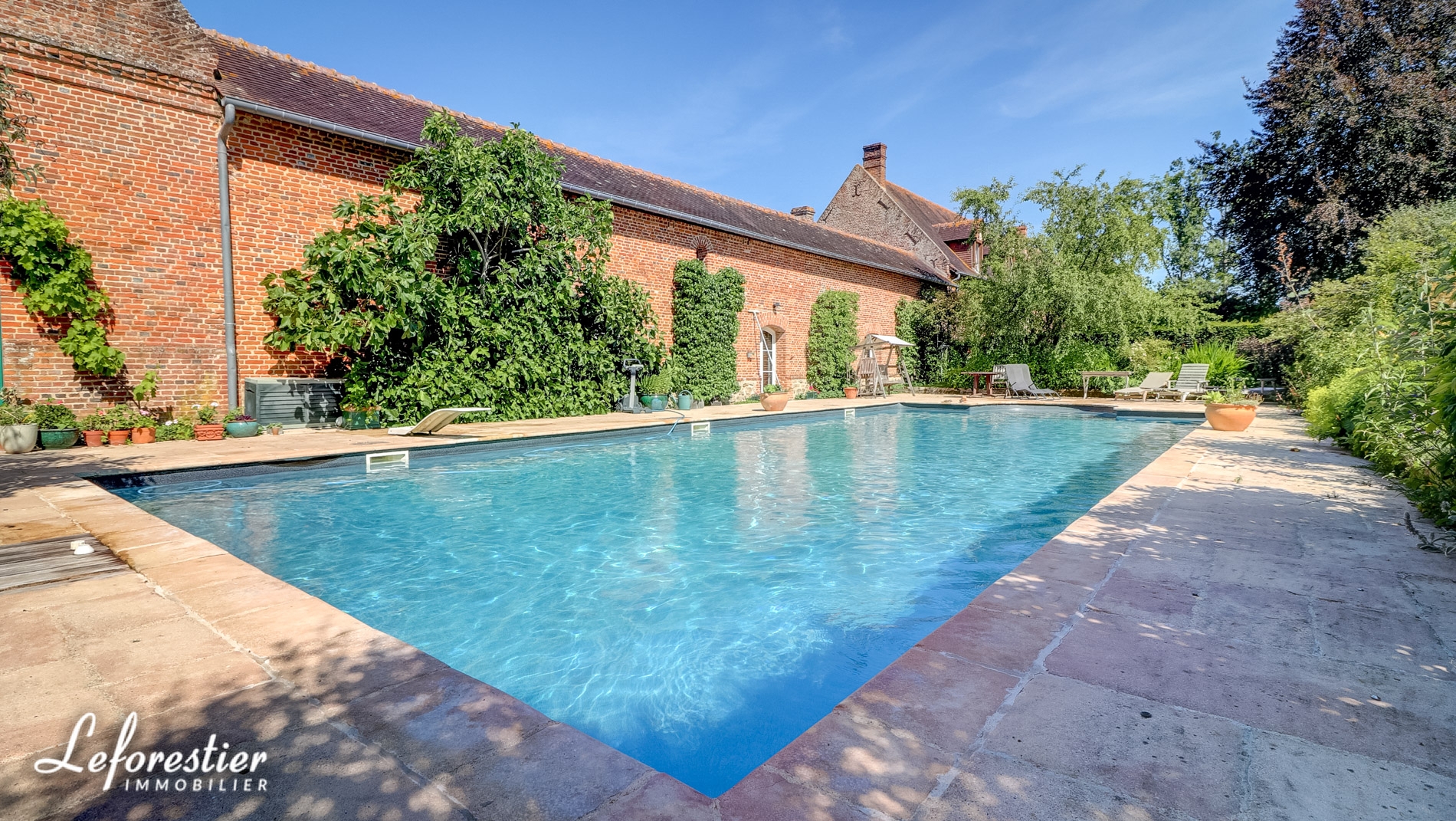 Au bout du chemin d’accès bordé d’herbages ou pâturent des vaches normandes, cette propriété s’ouvre sur une un ensemble de dépendances au centre desquelles une belle mare paysager recueille les eaux de pluie. La bâtisse principale domine cet espace et vous accueille par un hall doté d’un large escalier Louis 13 d’époque, décoré de tomettes de pays. A droite de ce hall, le vaste salon de 75 m2 avec la cheminée monumentale dans laquelle crépite un doux feu de bois est idéale pour organiser de belles réceptions. A l’opposé, une grande salle à manger elle aussi dotée de tomettes anciennes, d’une cheminée du Pays de Bray et d’une importante hauteur sous plafond confirme le standing et l’authenticité de cette demeure à vendre de Normandie. Le bureau joliment décoré de boiseries et bibliothèques s’ouvre sur la terrasse et la piscine abritée. Avec 6 chambres, de nombreuses salles de bains, une salle de jeux dans la cave voutée, voilà une maison pour y écrire une belle histoire de famille !