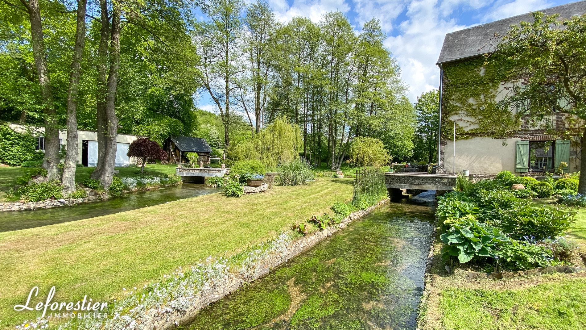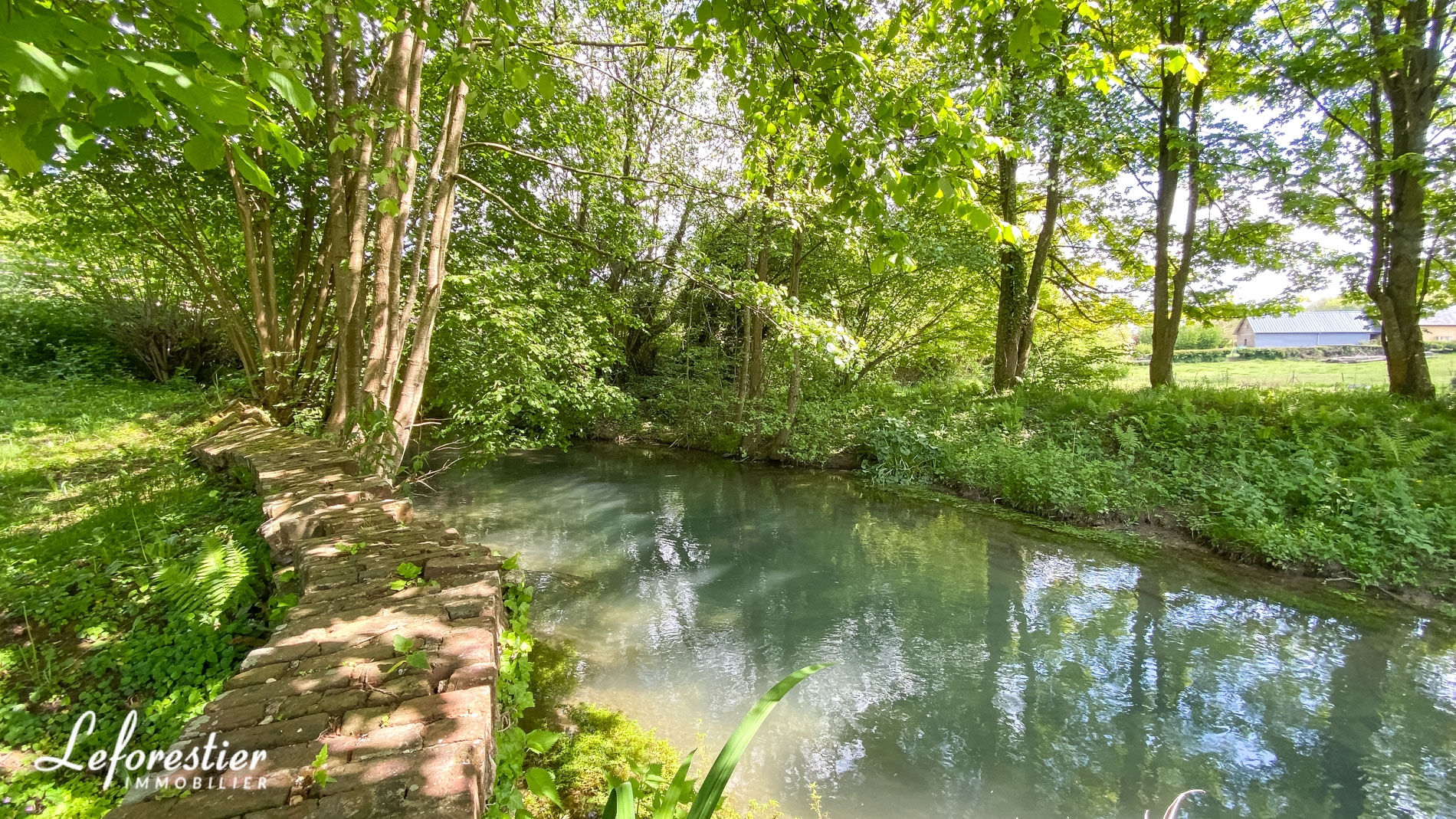 Située sur la Scie, notre moulin à vendre n’a pas conservé sa roue en bois mais son emplacement se devine très bien sur la façade coté rivière. L’eau de la Scie est parfaitement maitrisée par de solides mûrs de grès, sans aucun vannage et sans risque d’inondation pour le moulin lui-même.