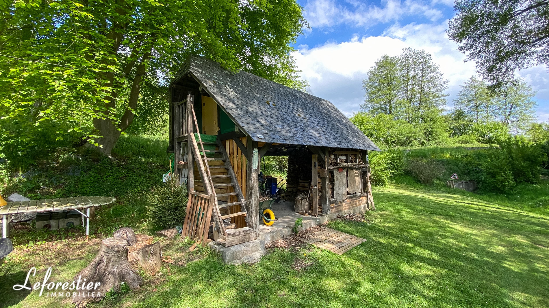 En traversant le pont de la propriété, un très grand garage atelier satisfera un bricoleur.