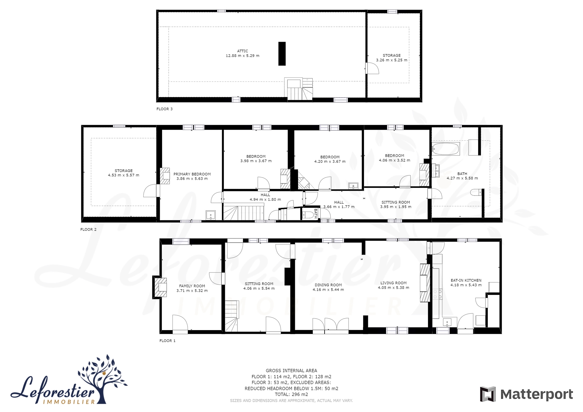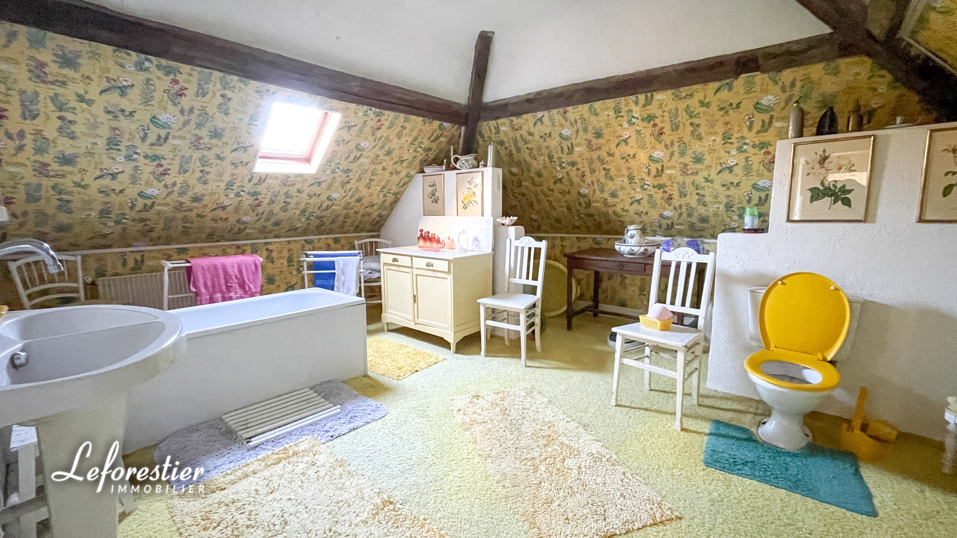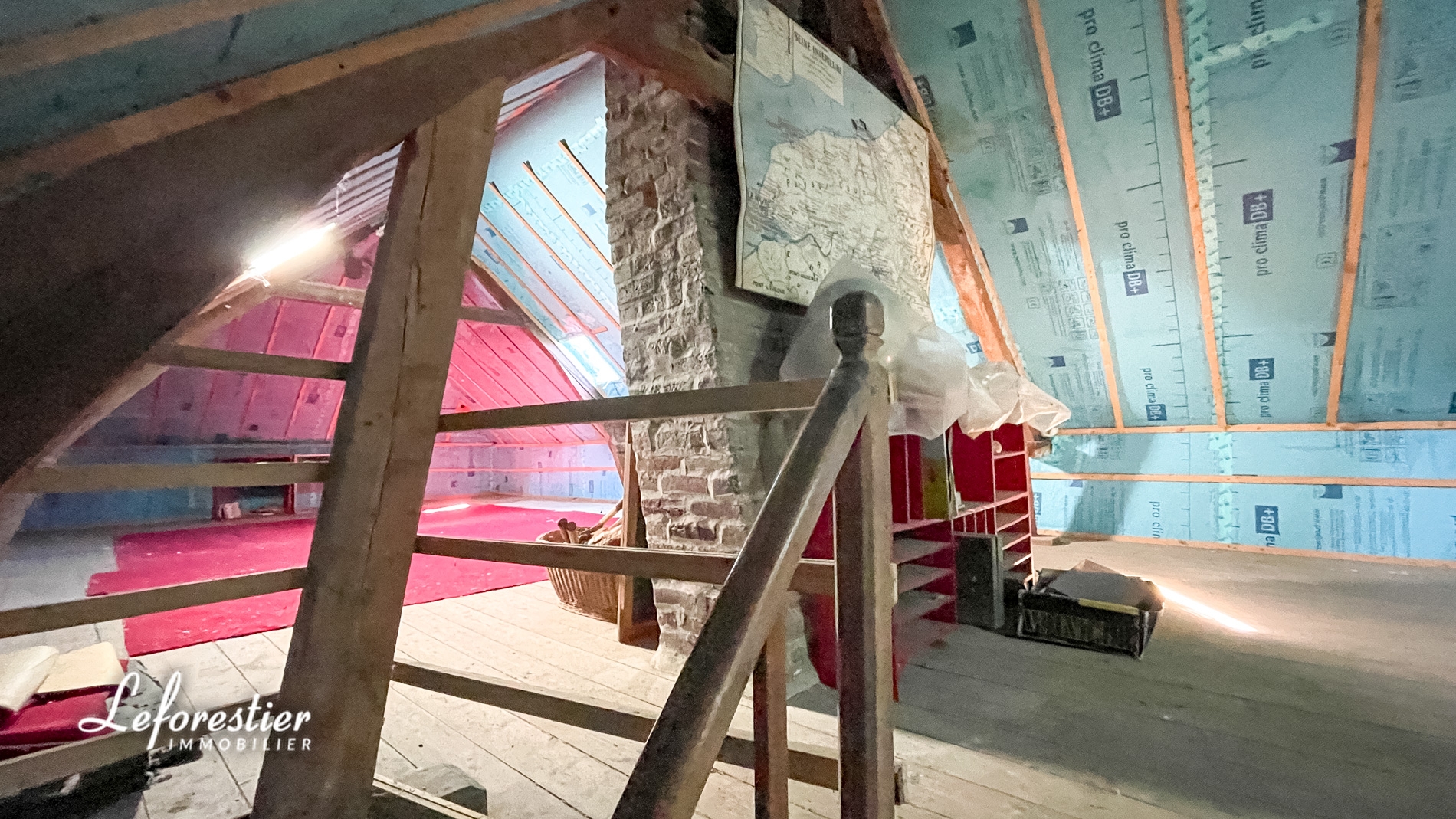 Sur 3 niveaux, cette grande demeure est parfaite pour accueillir famille et convives. Dans sa configuration actuelle, elle se compose d’un rez-de-chaussée avec un bureau, une entrée, un salon-séjour et une cuisine. A l’étage, quatre chambres, un WC et une salle de bain se déploient. Une potentielle salle de douche supplémentaire permettrait une chambre parentale. Deux chambres et une salle de bain sont facilement aménageables dans les combles.