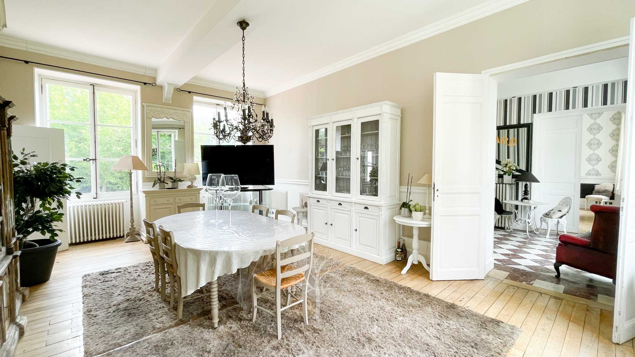 Le château a été rénové au cours des 10 dernières années en spacieuse maison de famille confortable sur 2 niveaux. Depuis le parking, une entrée de service dessert la grande cuisine de campagne chic et fonctionnelle, et l’arrière-cuisine. L’entrée officielle s’ouvre sur le majestueux escalier en bois. De part et d’autre, vaste salle à manger et salon avec cheminée. Parquets anciens en bon état d’usage à tous les niveaux. Au 1er étage desservi par l’escalier principal, grand palier, 1 pièce passante, 2 chambres et salle d’eau avec WC, couloir, 2éme palier, escalier de service, 2 chambres, salle de bains avec WC. Le 2éme niveau fait office de stockage, lingerie, buanderie. Sous-sol complet sous le château : cave voutée, chaufferie…