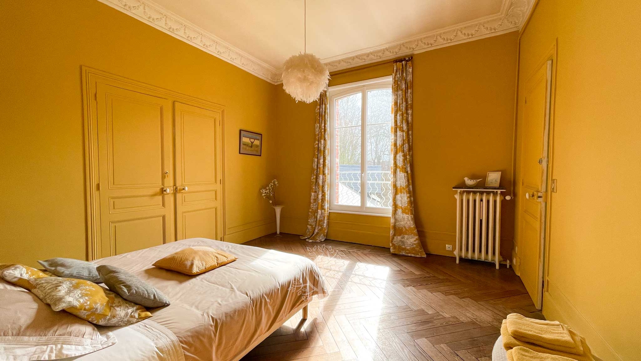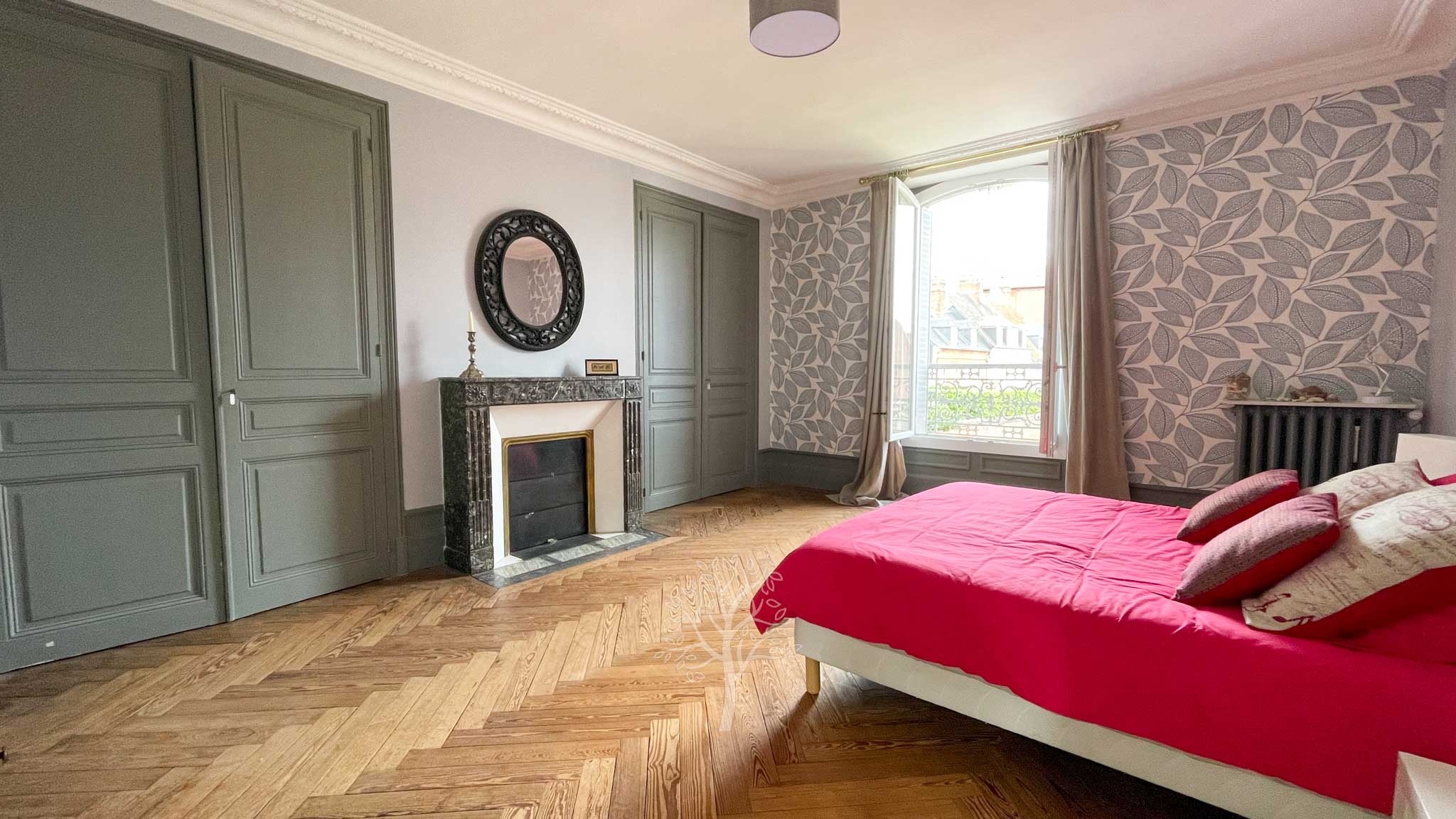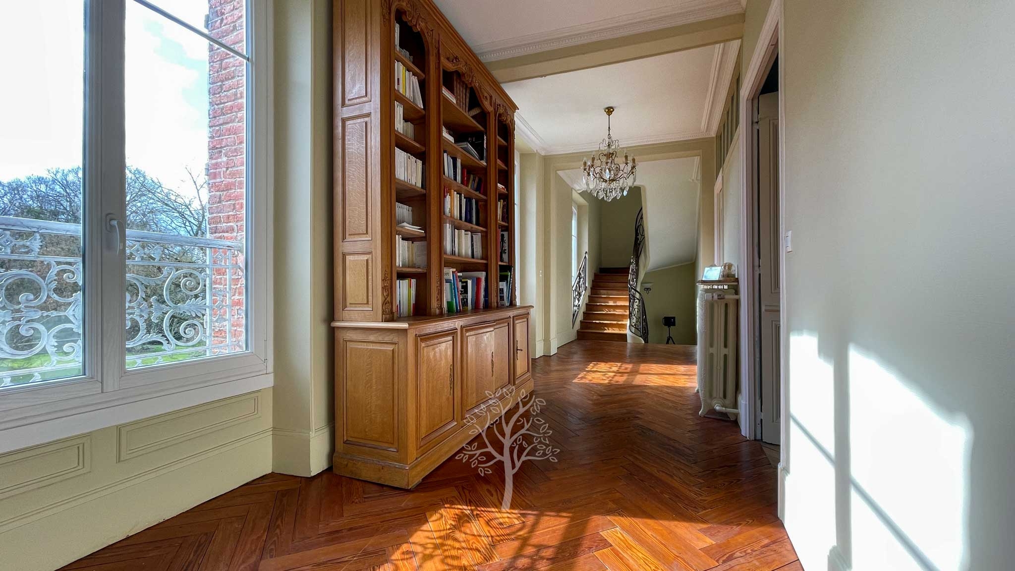 Les pièces du rez-de-chaussée, un salon intime et très cozy avec sa cheminée à l’âtre et une grande pièce de réception également avec une cheminée en marbre sont d’une élégante sobriété. Le parquet à bâton rompu sublime la lumière du soleil qui pénètre par les grandes ouvertures.