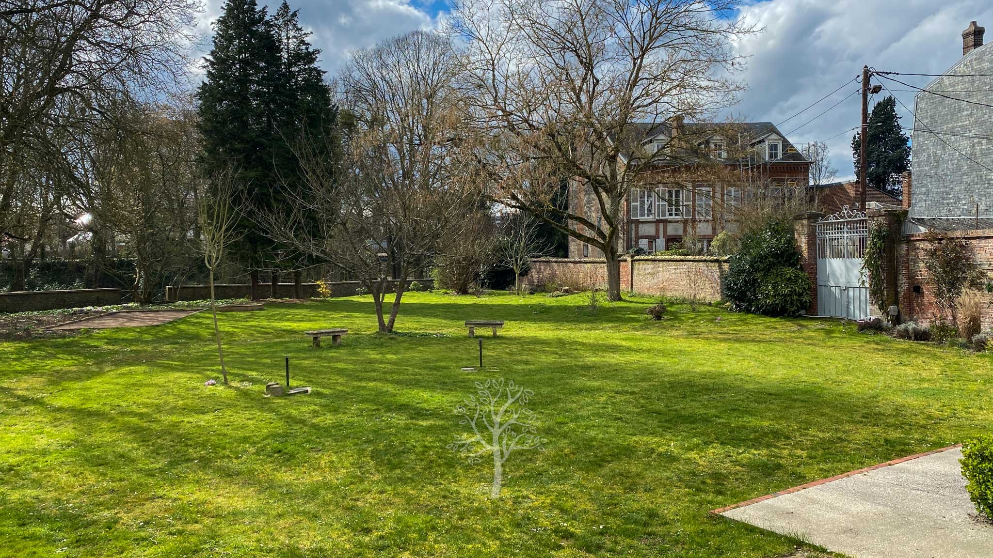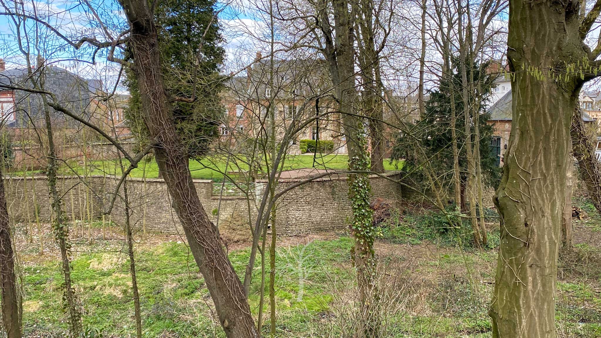 Côté Sud, un grand parc de plus de 5000m2 entouré de murs préserve l’intimité de cette belle propriété. Dans la partie jardin vous trouverez deux dépendances dont un garage pour abriter voitures, motos ou autre. En contre-bas, et à l’abri des regards, le jardin se prolonge en parc boisé dans les anciennes douves de la ville.